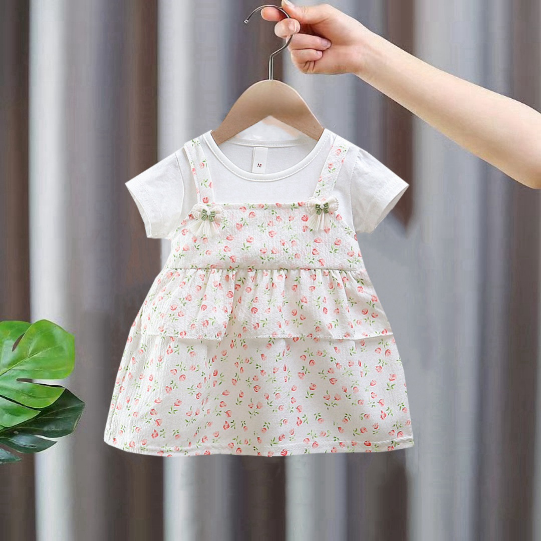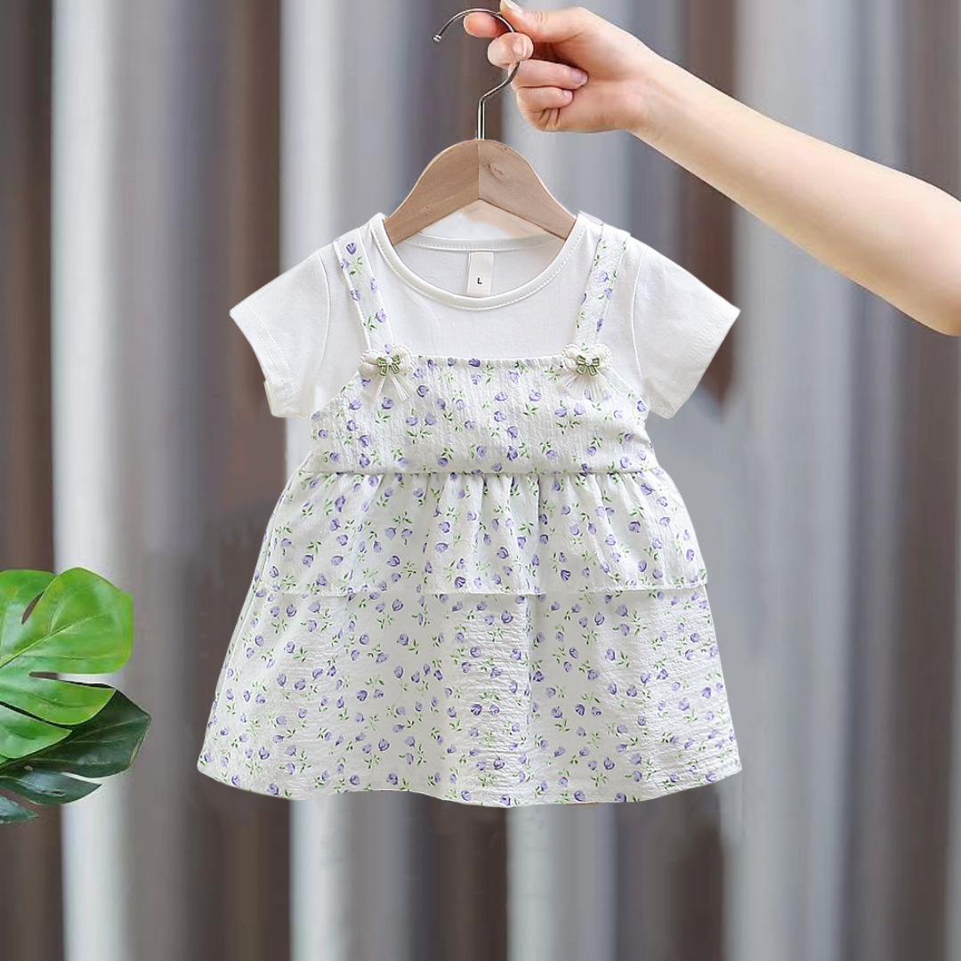 2025 여름 귀여운 아동복 아기 만화 원피스 가짜 두 소녀 새로운 올 매치 원피스스토어 가기