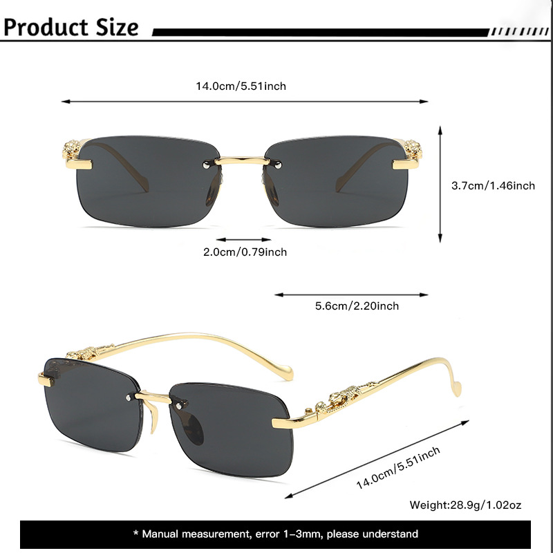 국경 간 새로운 고급 프레임리스 트림 선글라스 남성 패션 성격 작은 표범 거울 다리 선글라스 안경 도매스토어 가기