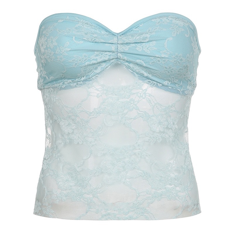 국경 간 스파이스 소녀 스타일 레이스 바느질 주름 가슴 랩 조끼 섹시한 관점 레이스 업 백리스 탑