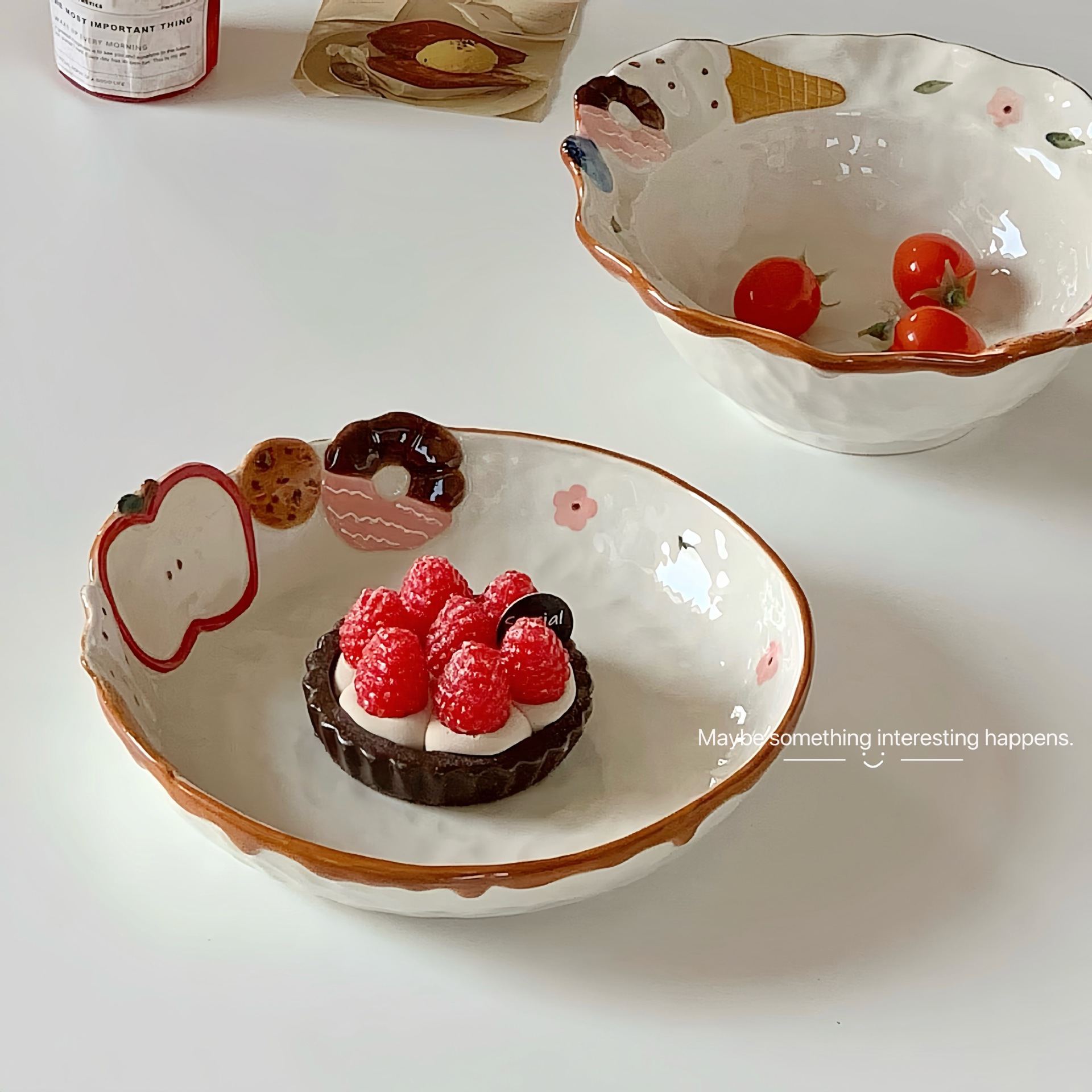 인터넷 유명 인사 Salah Bowl Ins 스타일 높은 색상 가치 손으로 그린 Underglaze 컬러 세라믹 수프 그릇 국수 그릇 창조적 인 고급 디저트 그릇스토어 가기