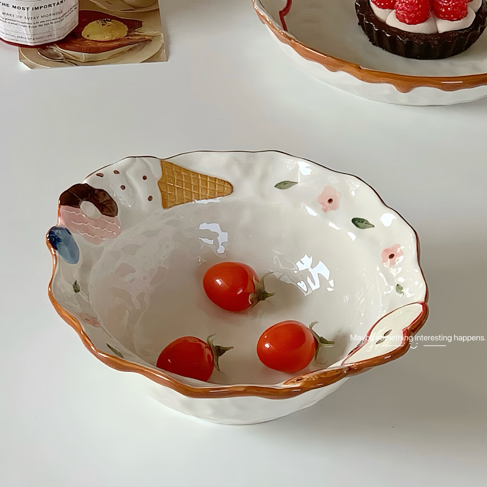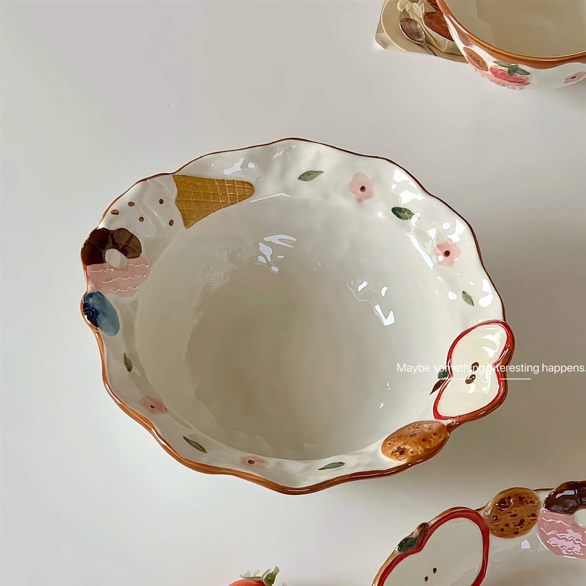 인터넷 유명 인사 Salah Bowl Ins 스타일 높은 색상 가치 손으로 그린 Underglaze 컬러 세라믹 수프 그릇 국수 그릇 창조적 인 고급 디저트 그릇