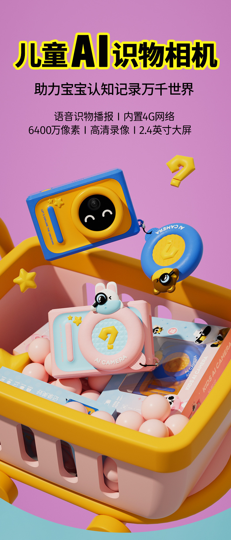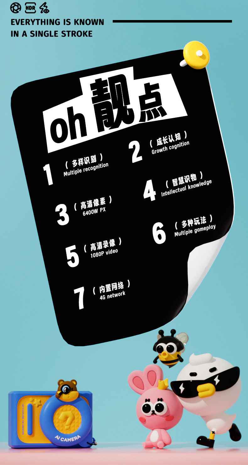 새로운 어린이 카메라 Ai 스마트 조기 교육 디지털 카메라 아기 6400 픽셀 SLR 어린이 장난감스토어 가기