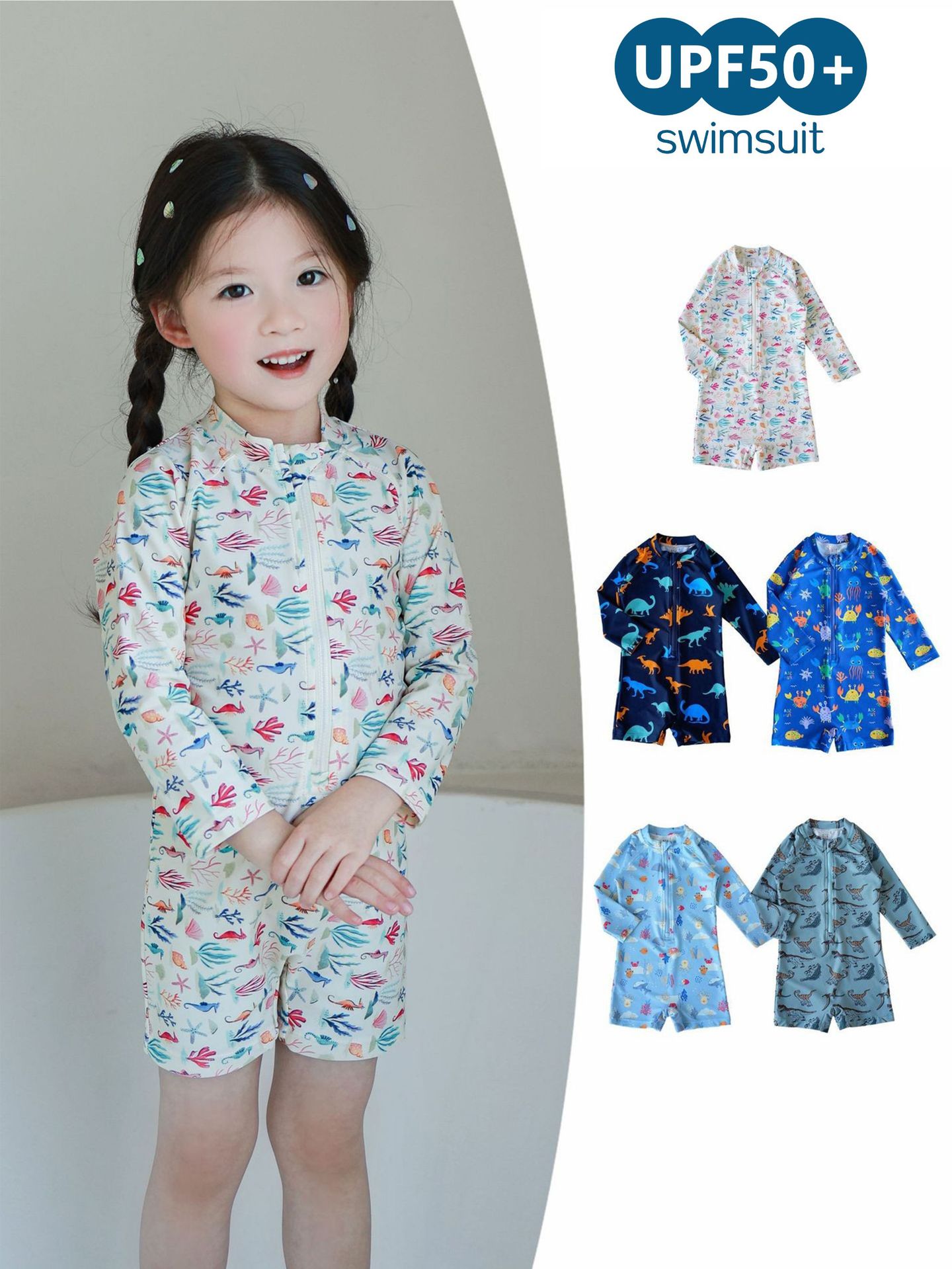 어린이용 항염소 자외선 차단 원피스 수영복, 새로운 스타일의 남녀 아기용 해변용 속건 수영복, ks 긴팔 유아용 수영복스토어 가기