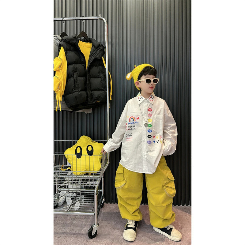 남아용 멋스러운 캐주얼 스포츠 셔츠 2026 봄 신상 중대형 어린이용 세련되고 다재다능한 흰색 글자 셔츠스토어 가기