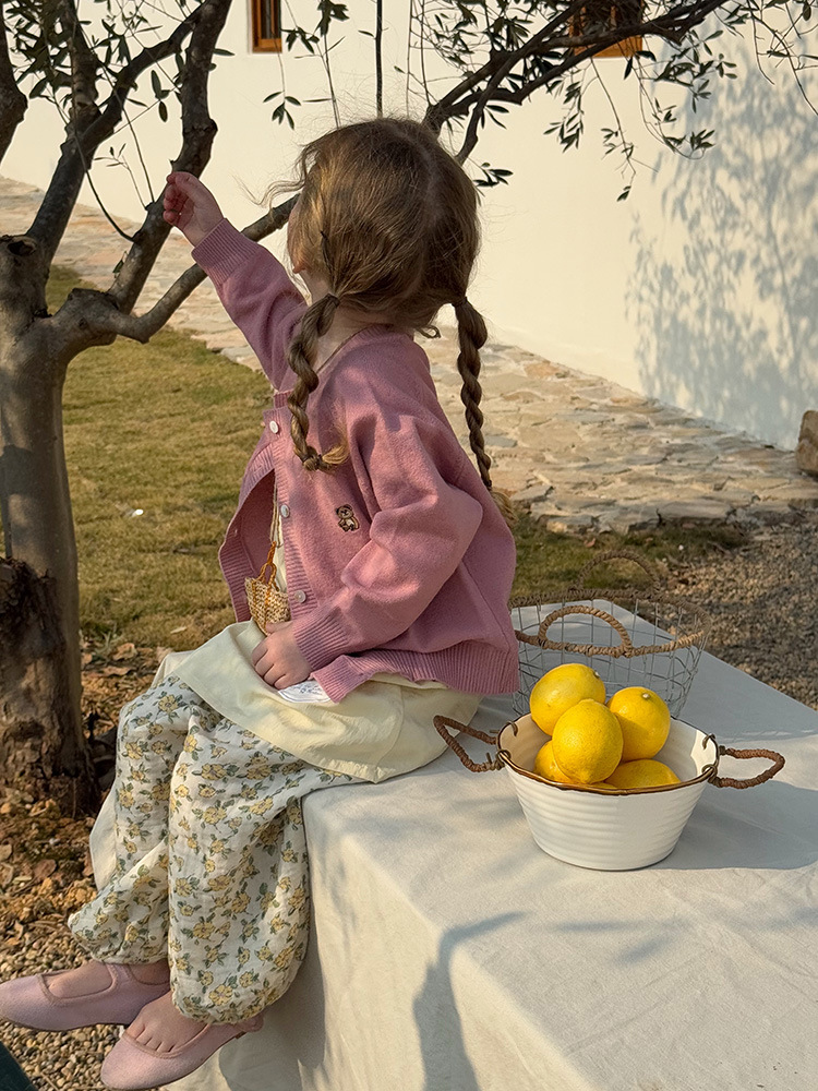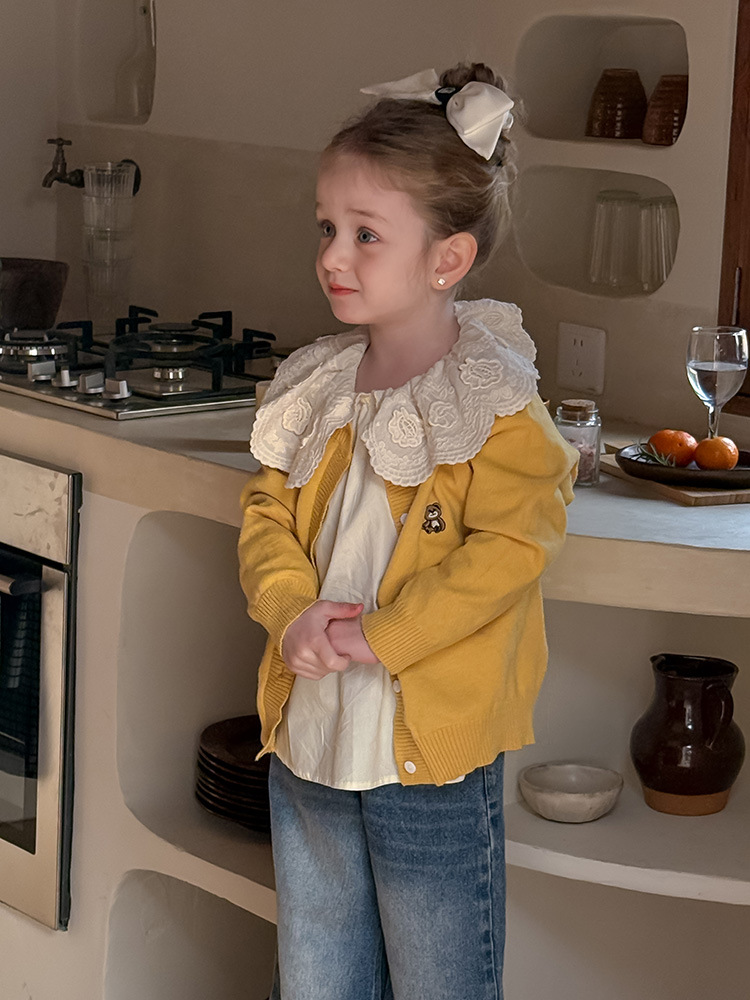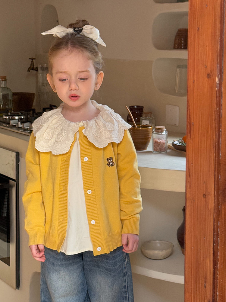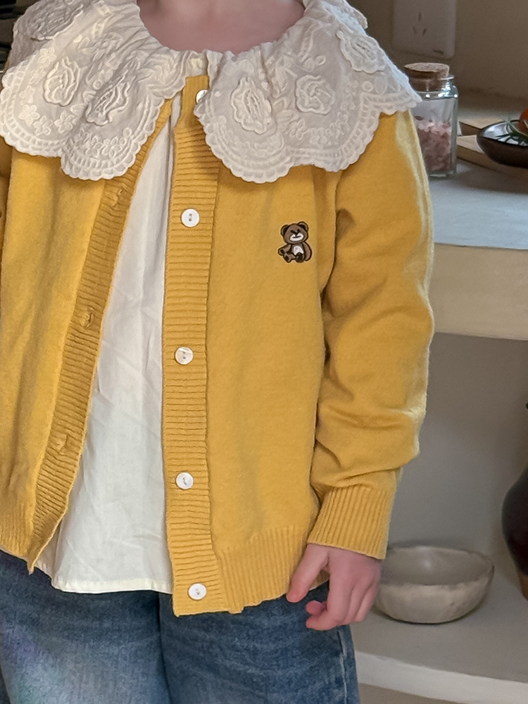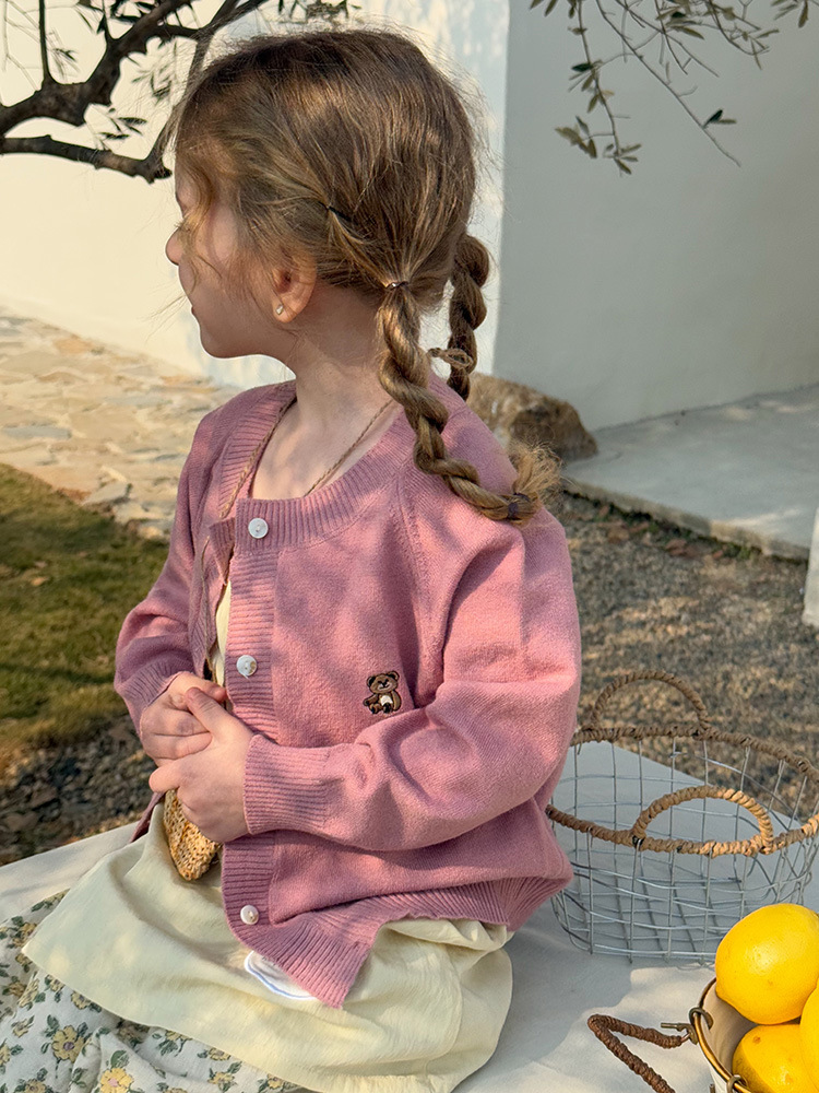 Huzhou Zhili 아동복 2025 봄 새로운 한국 여자 곰 자수 스웨터 카디건 어린이 긴팔 코트스토어 가기