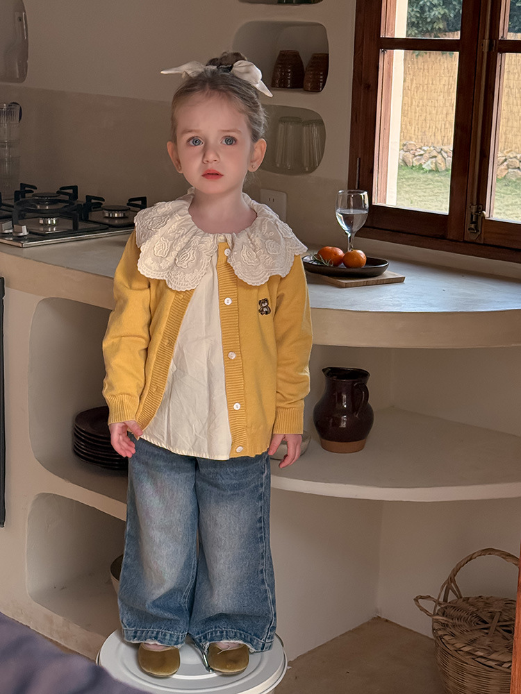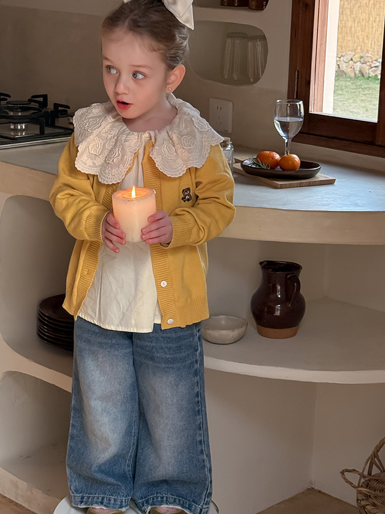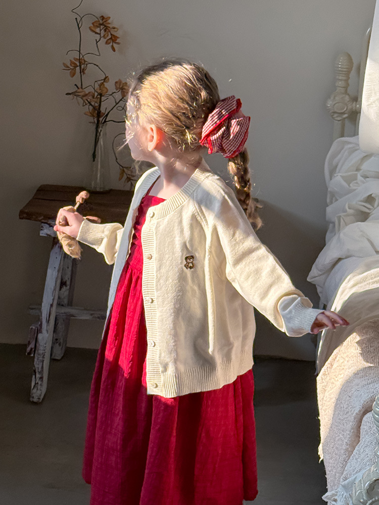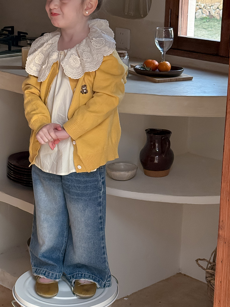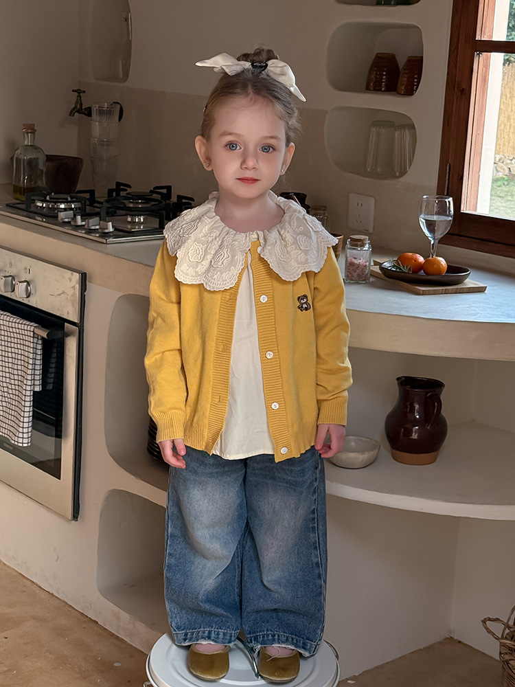 Huzhou Zhili 아동복 2025 봄 새로운 한국 여자 곰 자수 스웨터 카디건 어린이 긴팔 코트스토어 가기