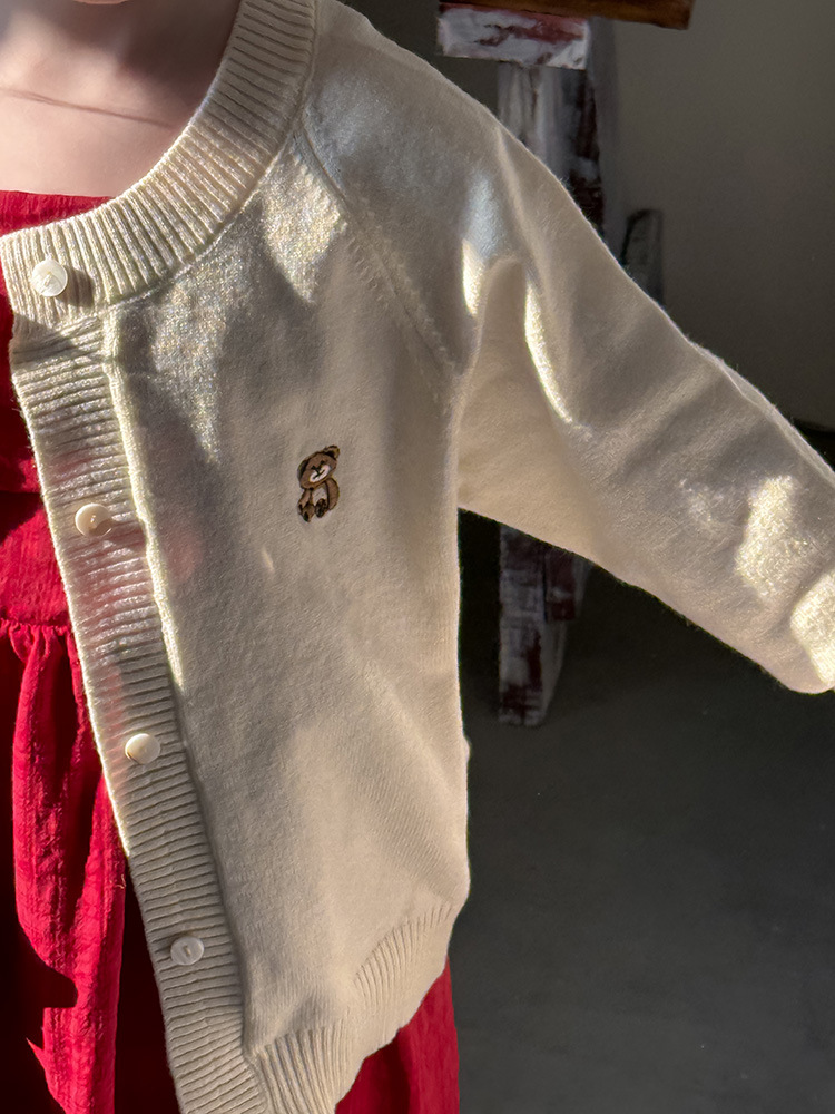 Huzhou Zhili 아동복 2025 봄 새로운 한국 여자 곰 자수 스웨터 카디건 어린이 긴팔 코트