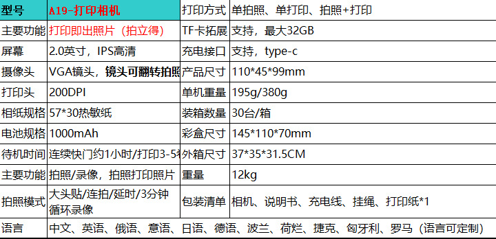 A19 새로운 유형의 클래퍼 만화 스마트 어린이 카메라 열 인스턴트 인쇄 디지털 작은 SLR 카메라 플레이