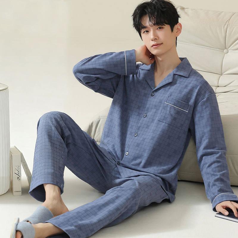 남자 잠옷 100% 면 남자 하이 엔드 캐주얼 코튼 봄 가을 홈 의류 세트스토어 가기