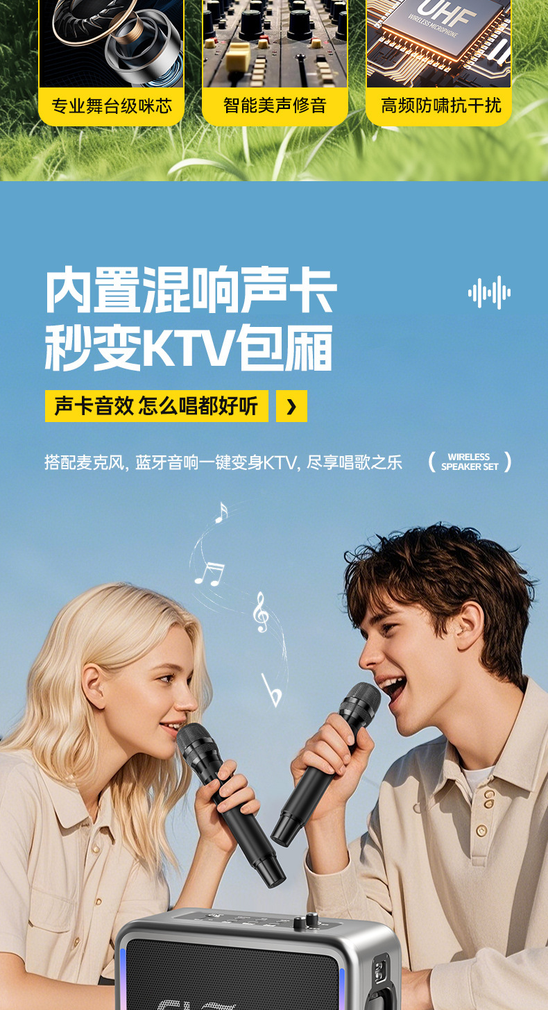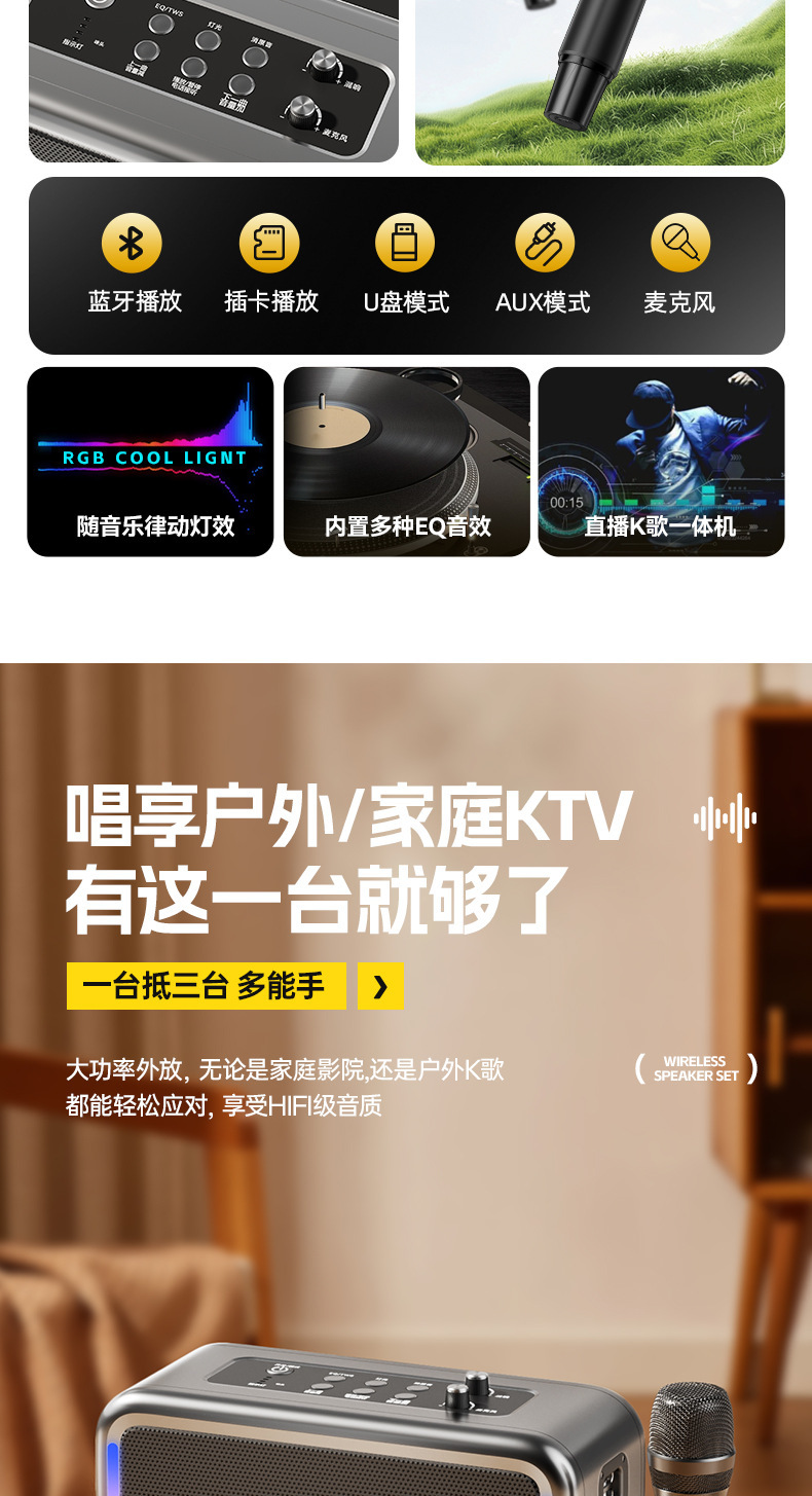 국경 간 야외 K-노래 블루투스 오디오 스퀘어 댄스 반주 서브 우퍼 스피커 LED 빛 긴 내구성 더블 밀 오디오스토어 가기