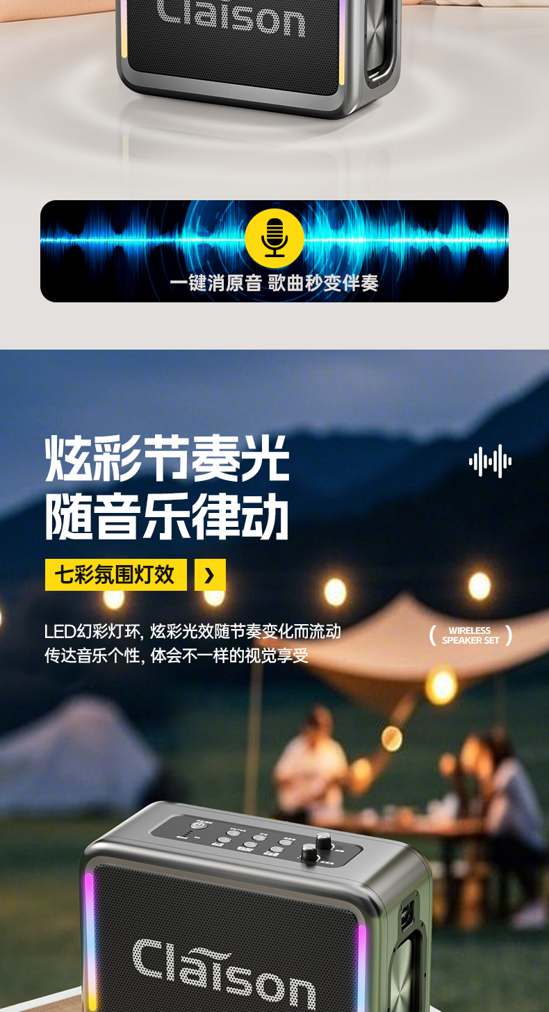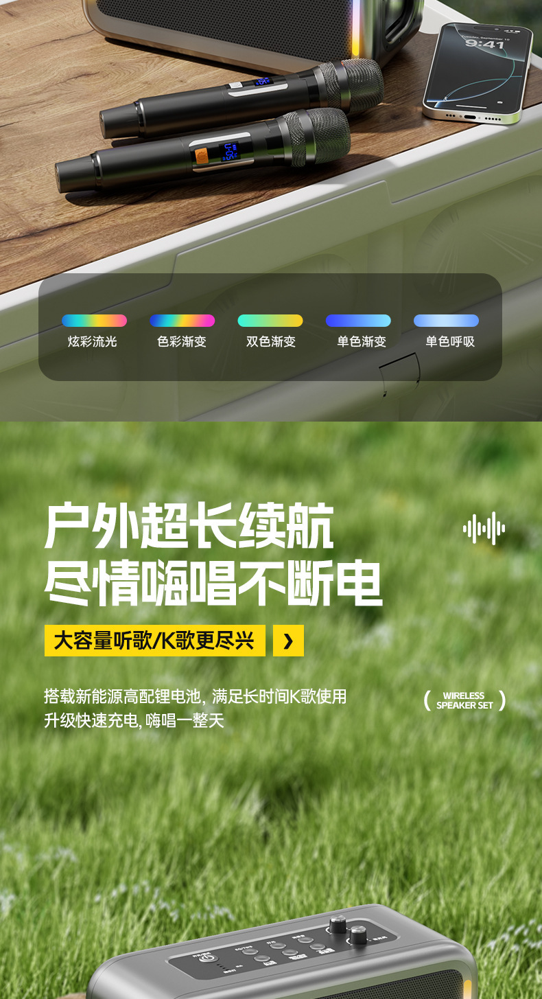 국경 간 야외 K-노래 블루투스 오디오 스퀘어 댄스 반주 서브 우퍼 스피커 LED 빛 긴 내구성 더블 밀 오디오