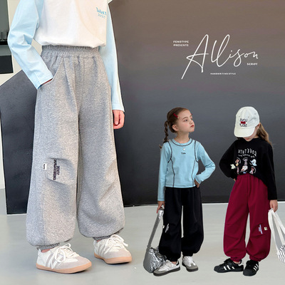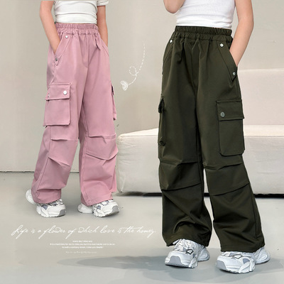 图图小象儿童工装裤女童裤子2025春秋款女生阔腿裤中大童爵士舞裤
