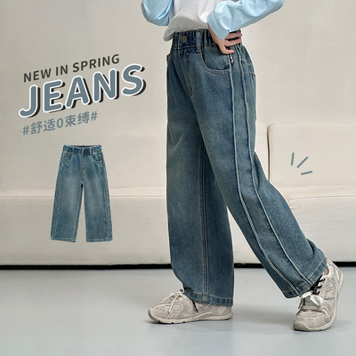 图图小象女童牛仔裤2025春秋款儿童百搭烟管裤窄版直筒休闲长裤