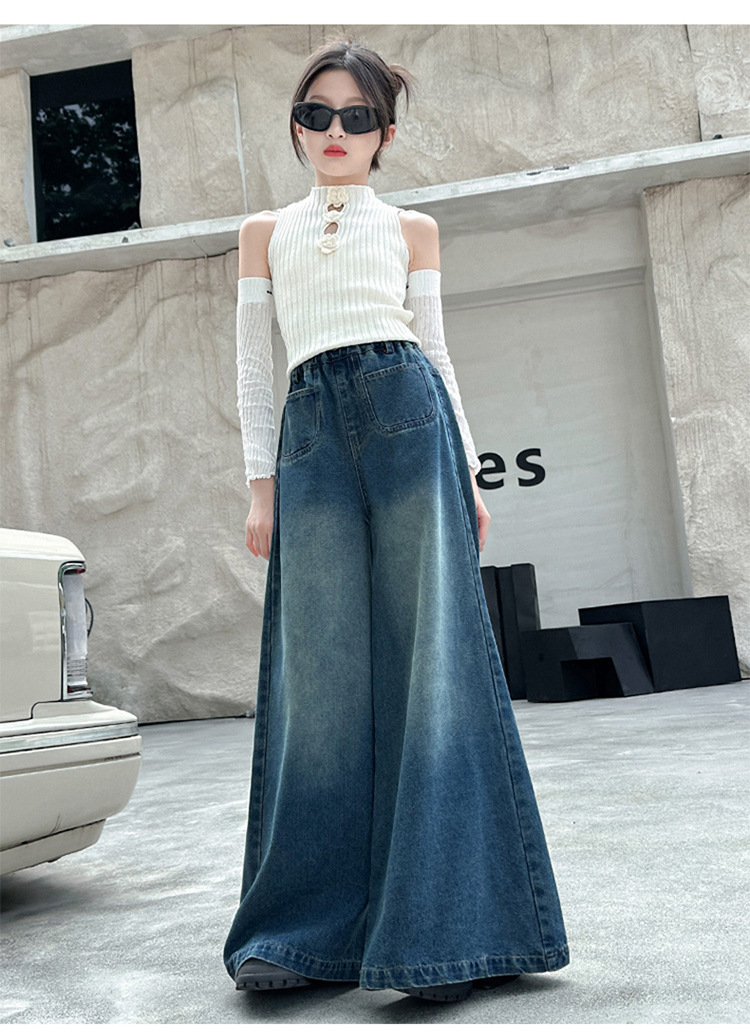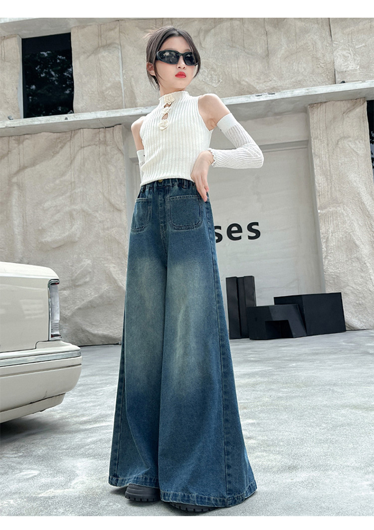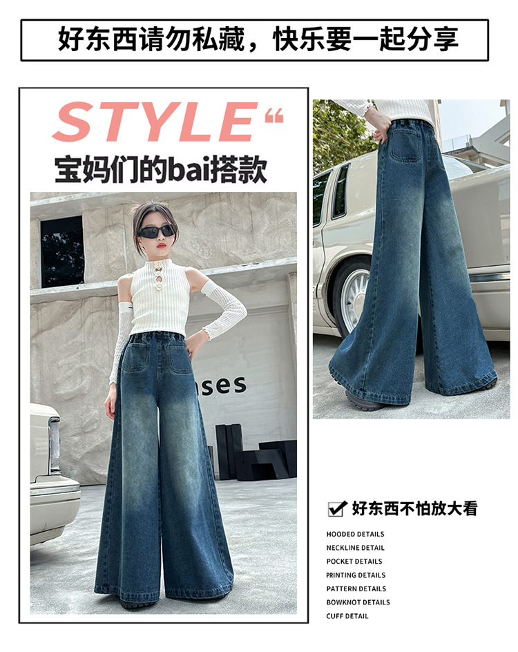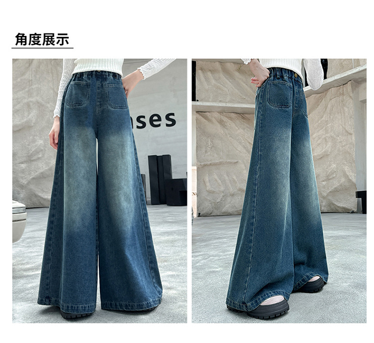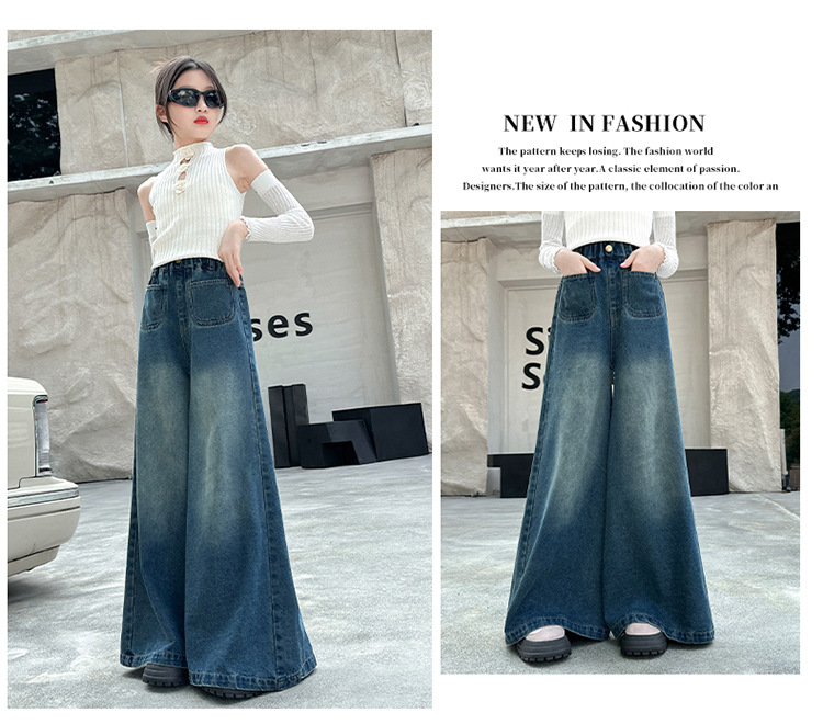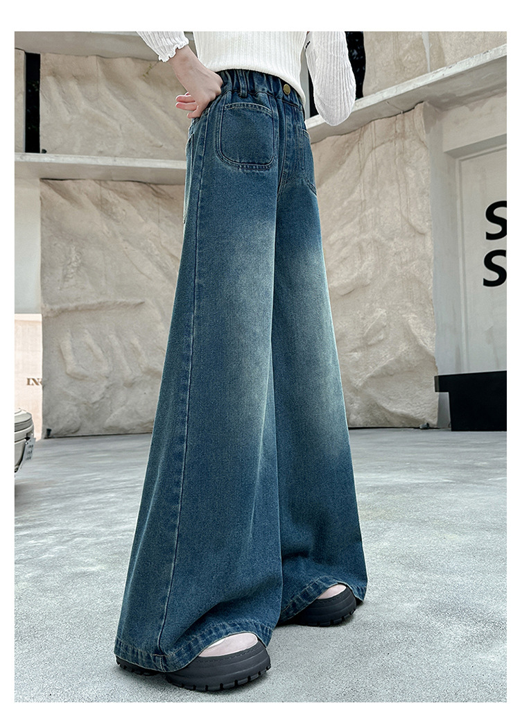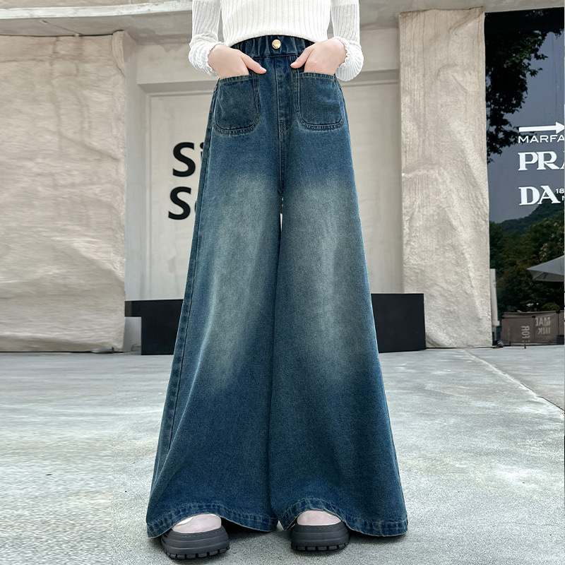 소녀의 봄 데님 넓은 다리 바지 중 큰 어린이의 새로운 스트레이트 다리 바지 느슨한 서양식 넓은 다리 바지스토어 가기