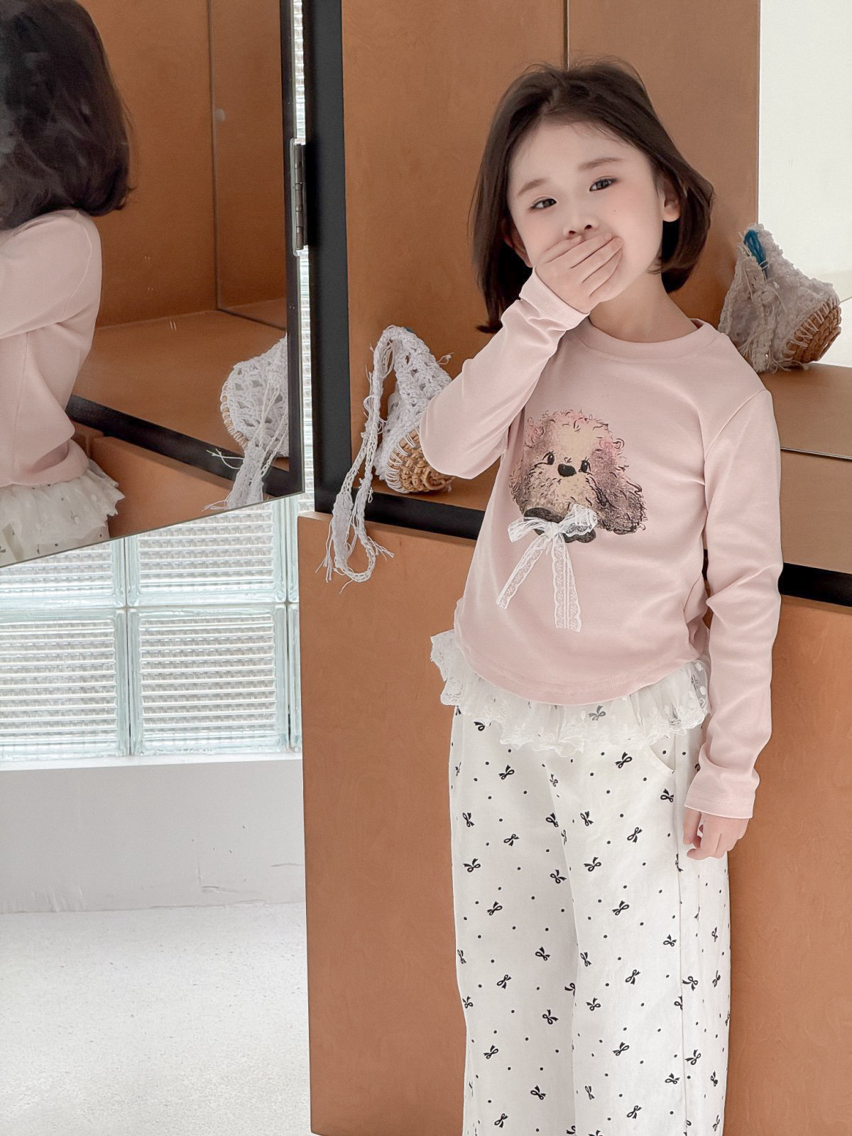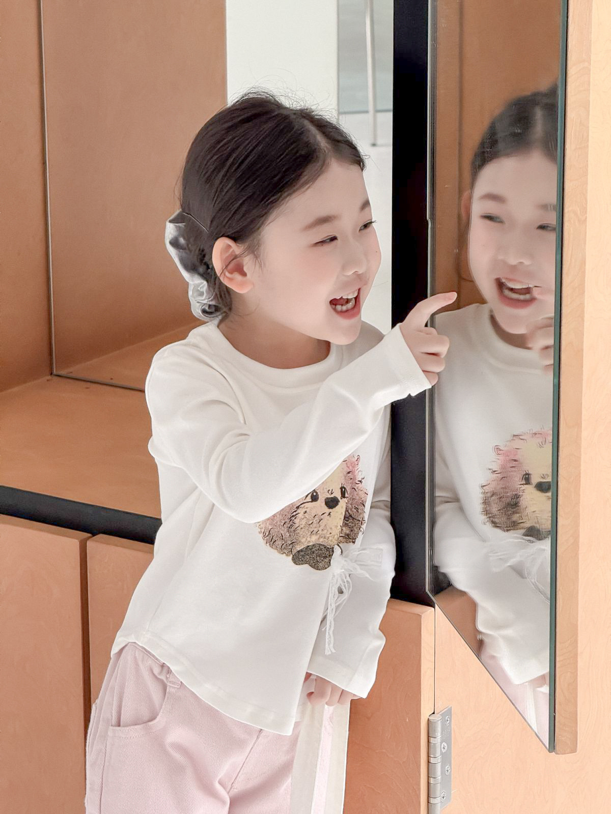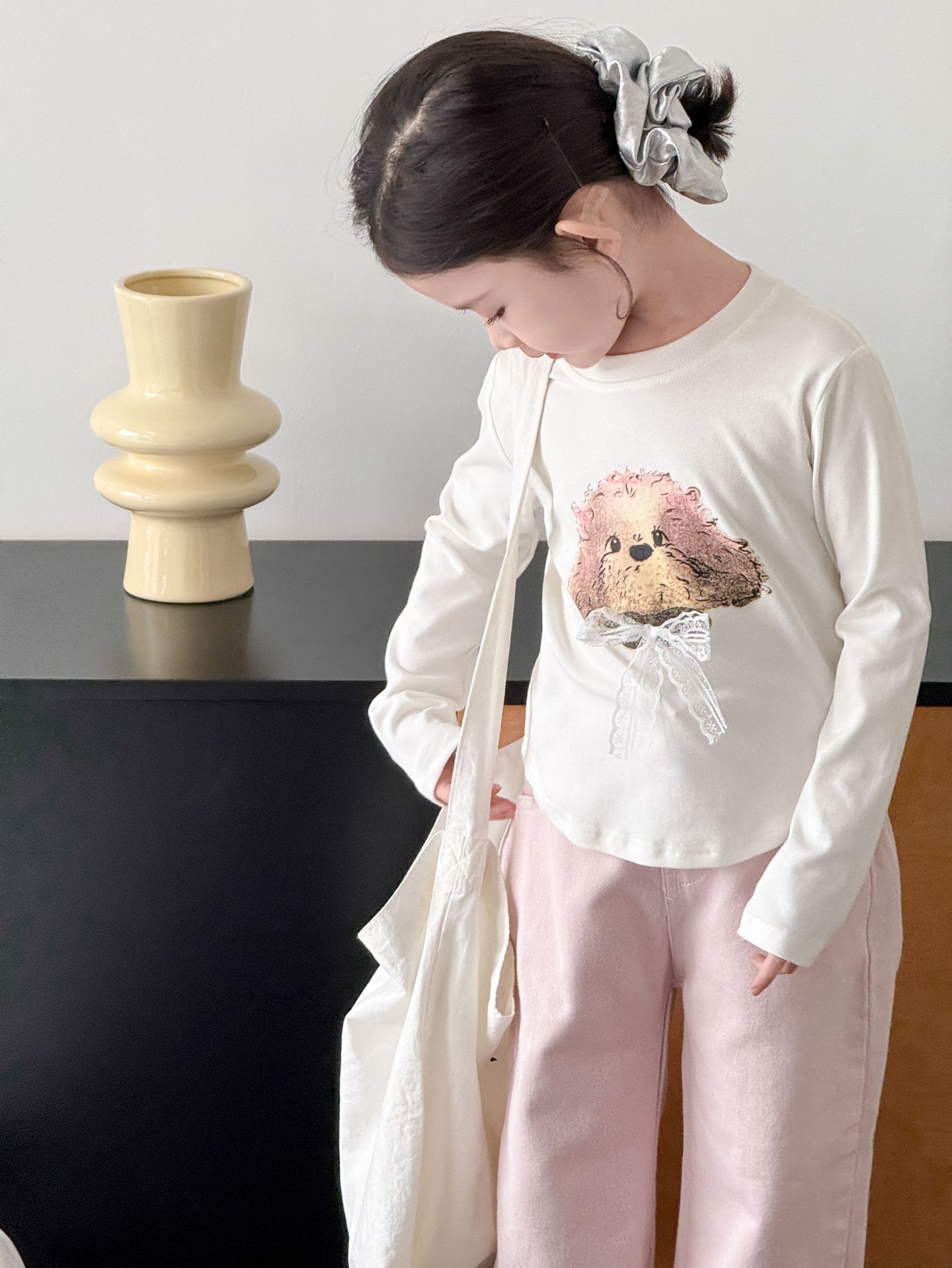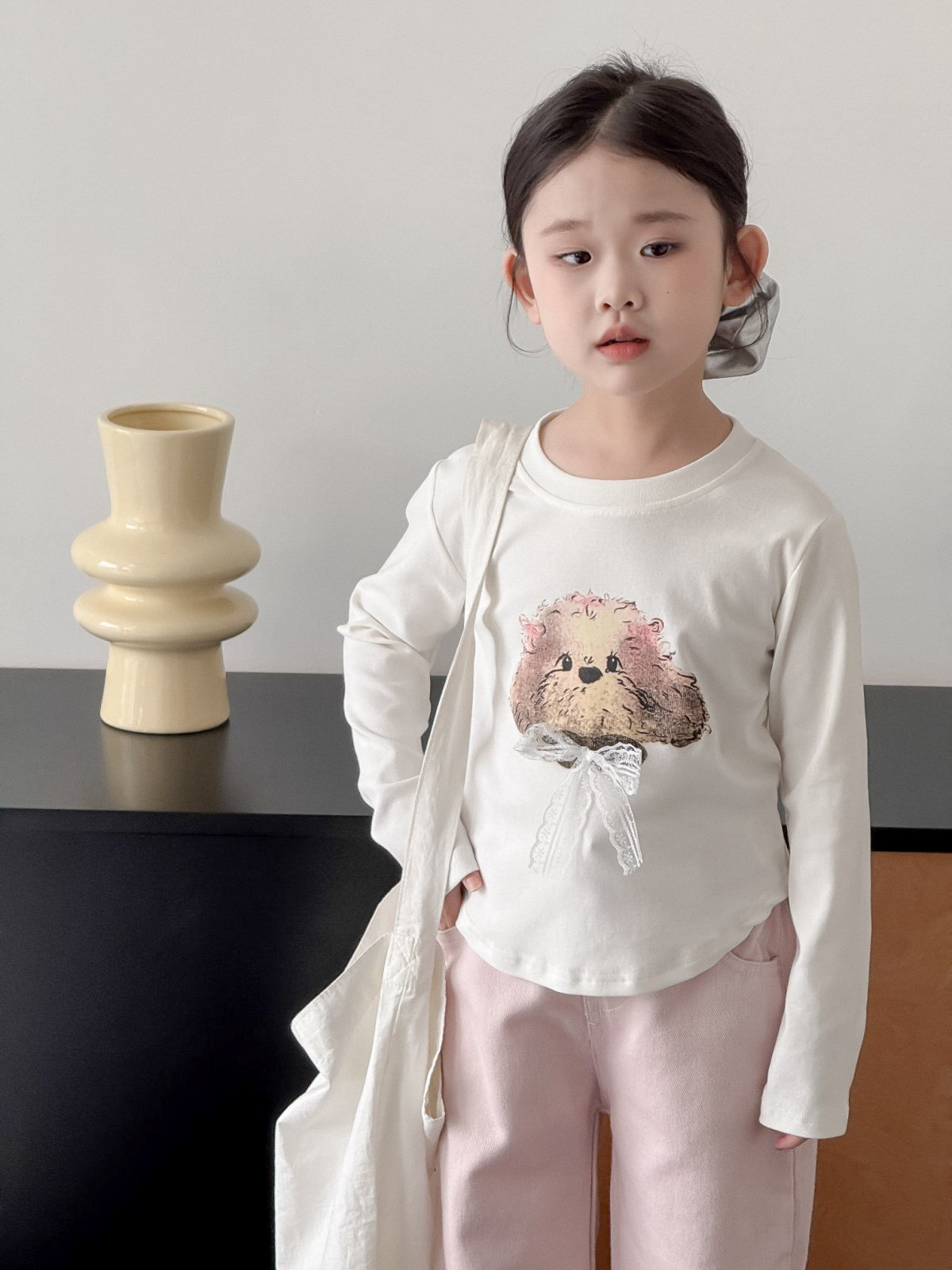아동 의류 소녀 봄 의류 2025 새로운상의 요크셔 강아지 프린트 보우 긴팔 아동 티셔츠 유행스토어 가기
