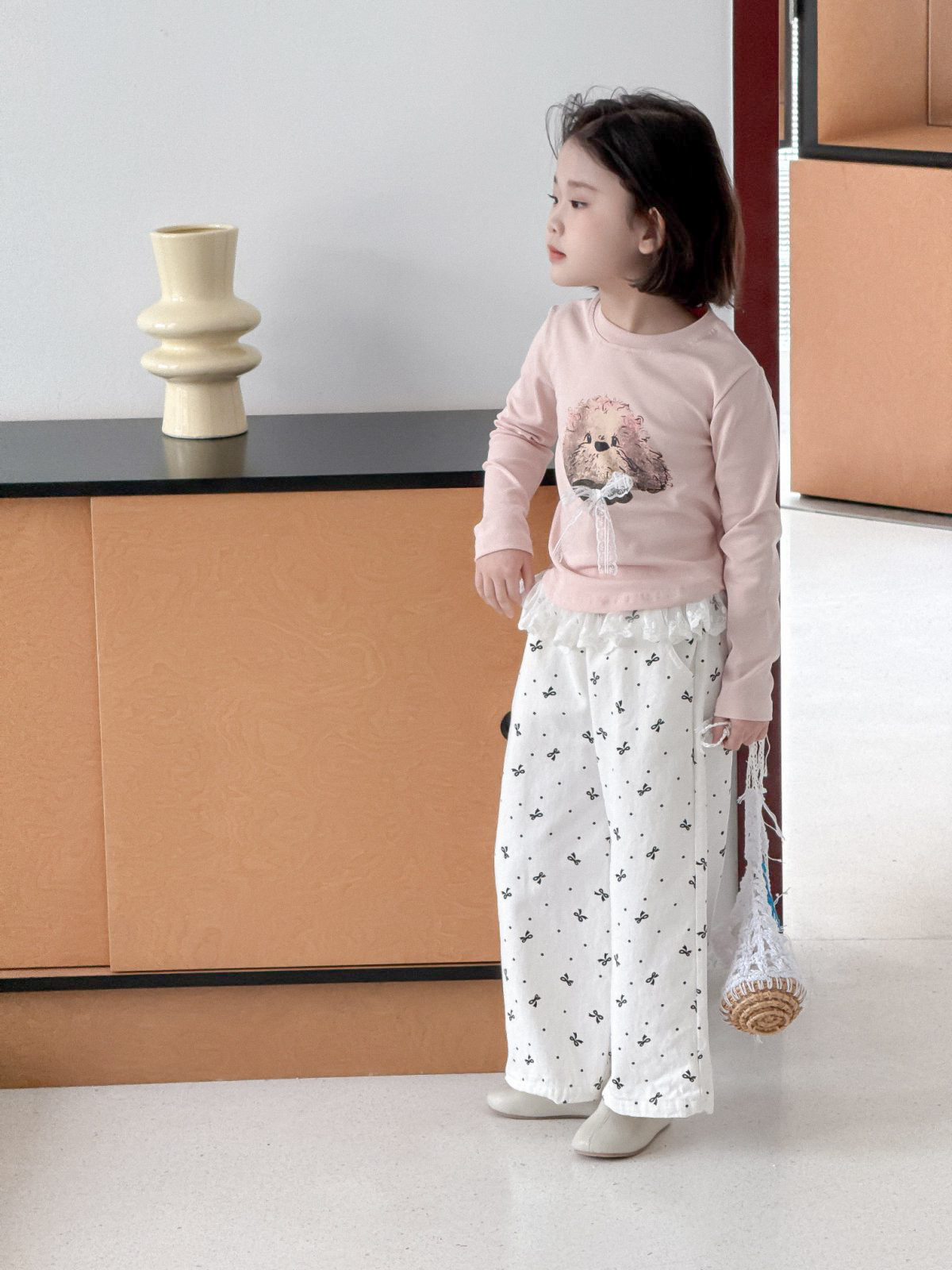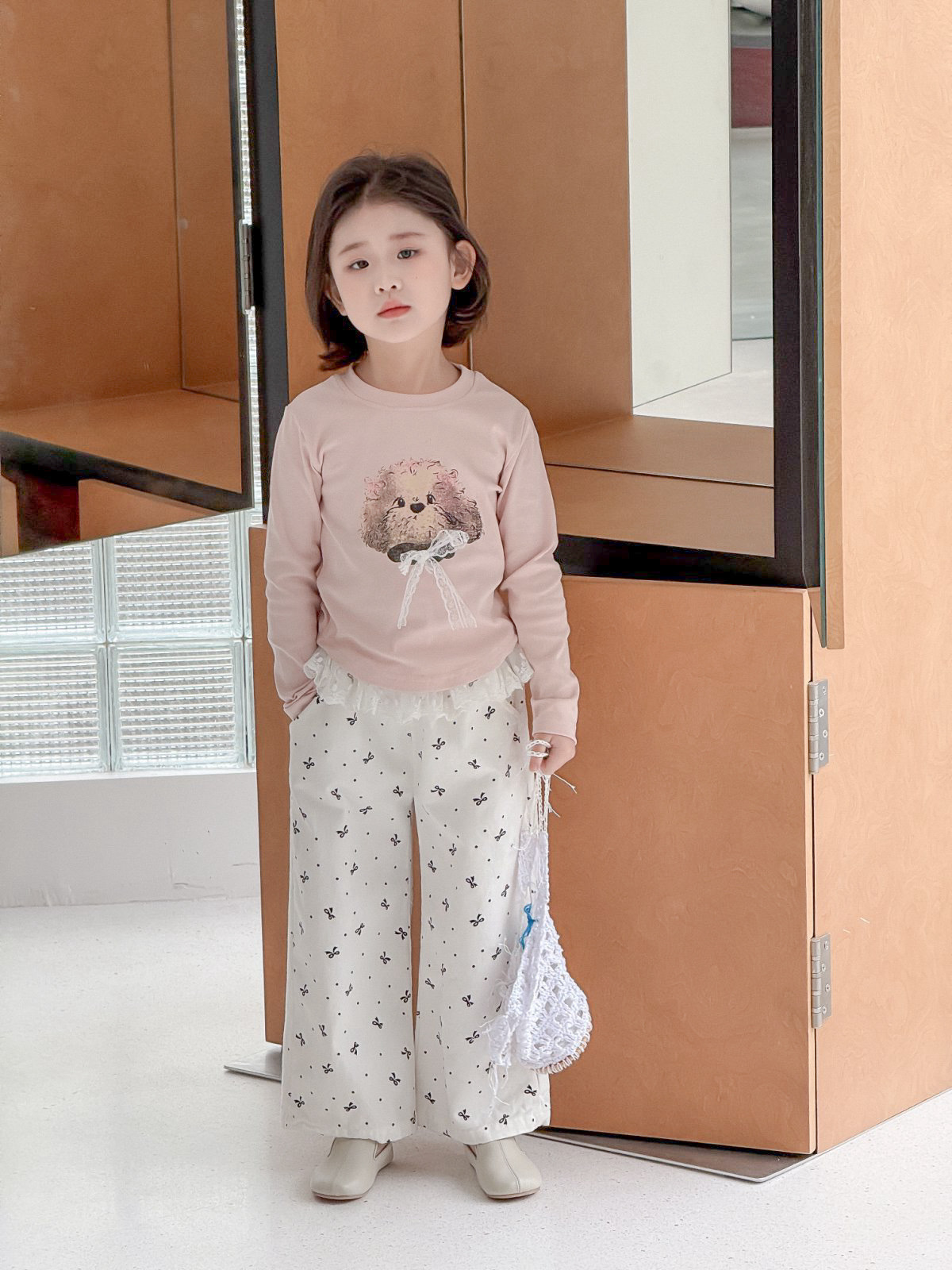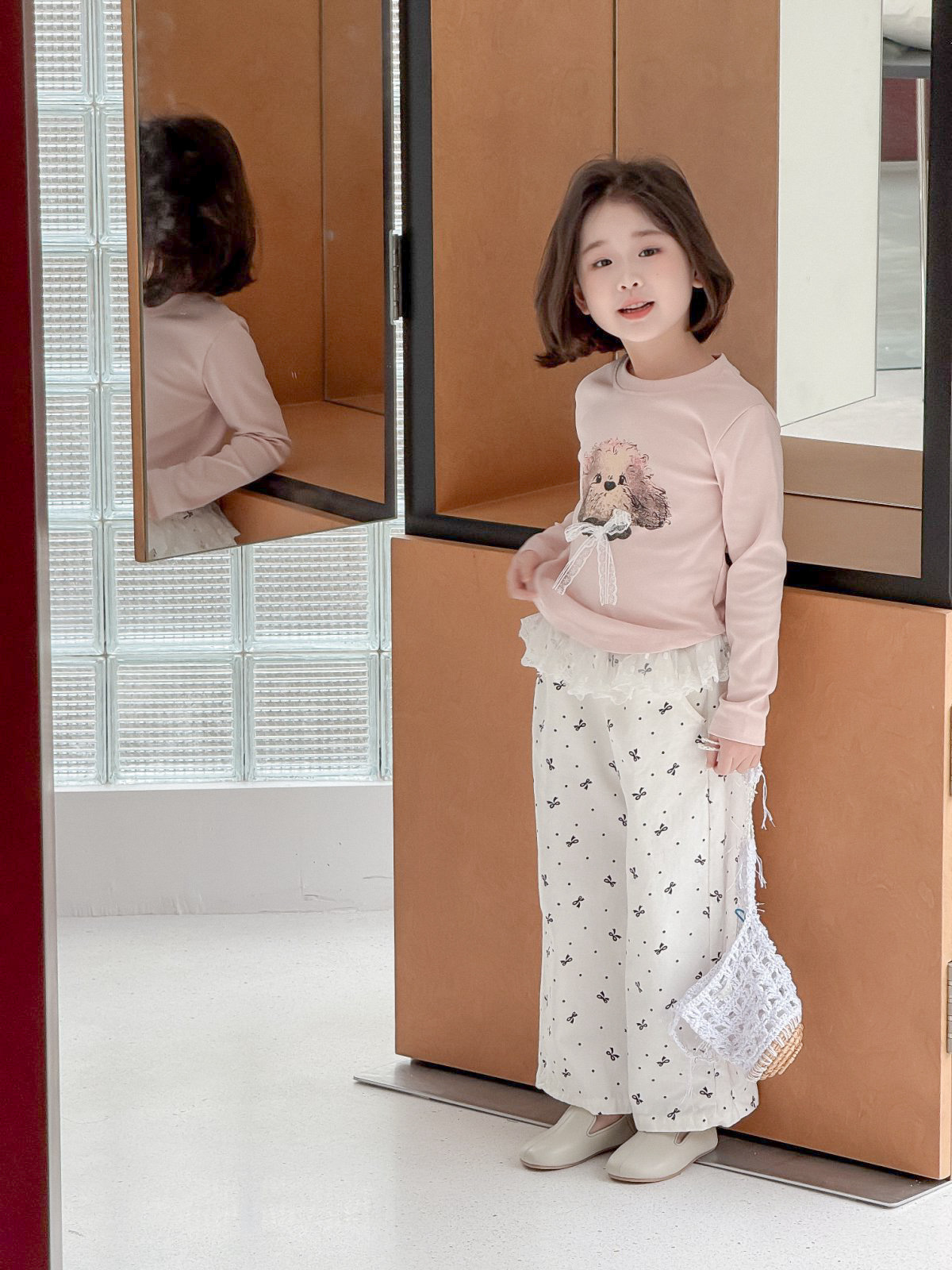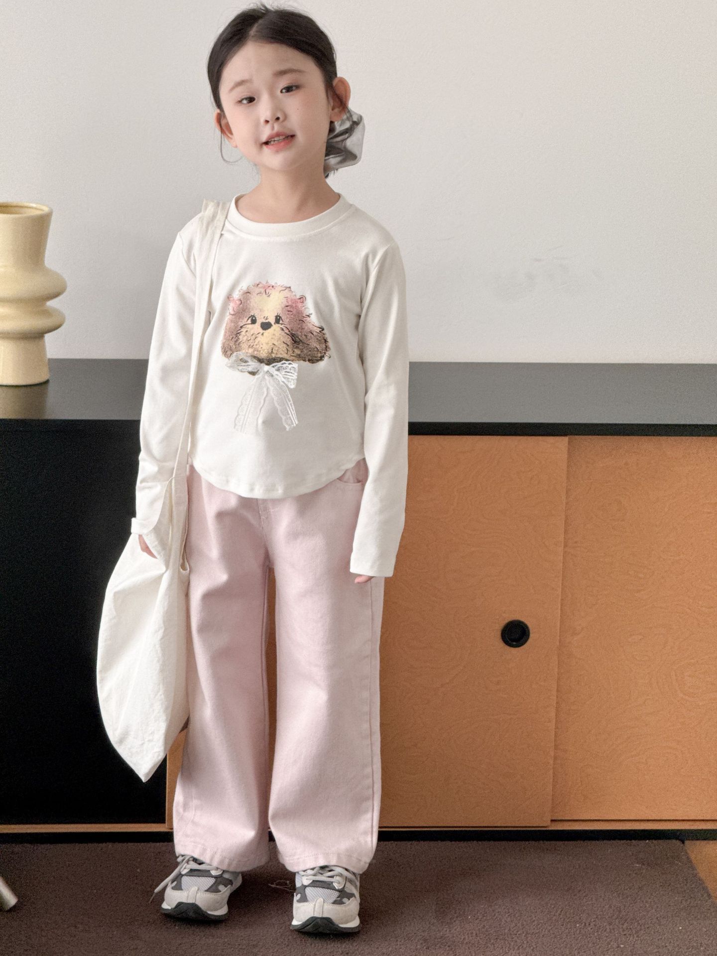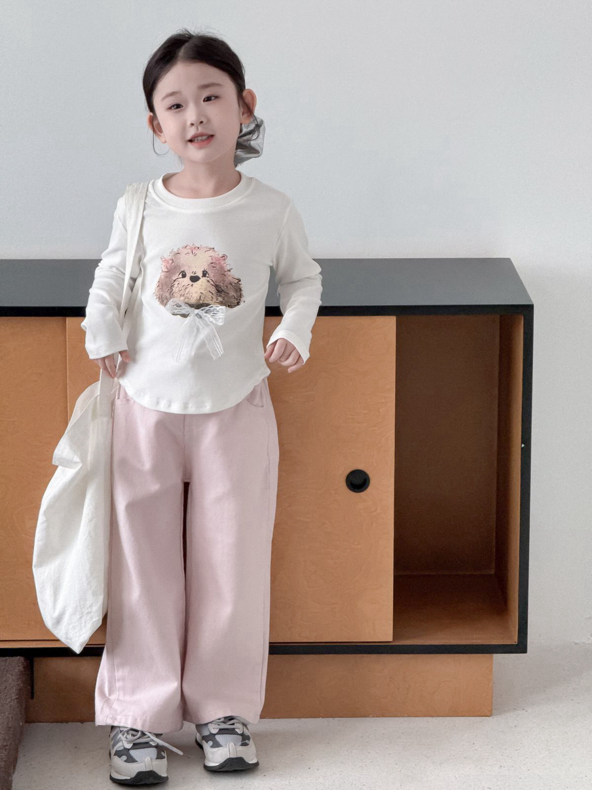 아동 의류 소녀 봄 의류 2025 새로운상의 요크셔 강아지 프린트 보우 긴팔 아동 티셔츠 유행스토어 가기