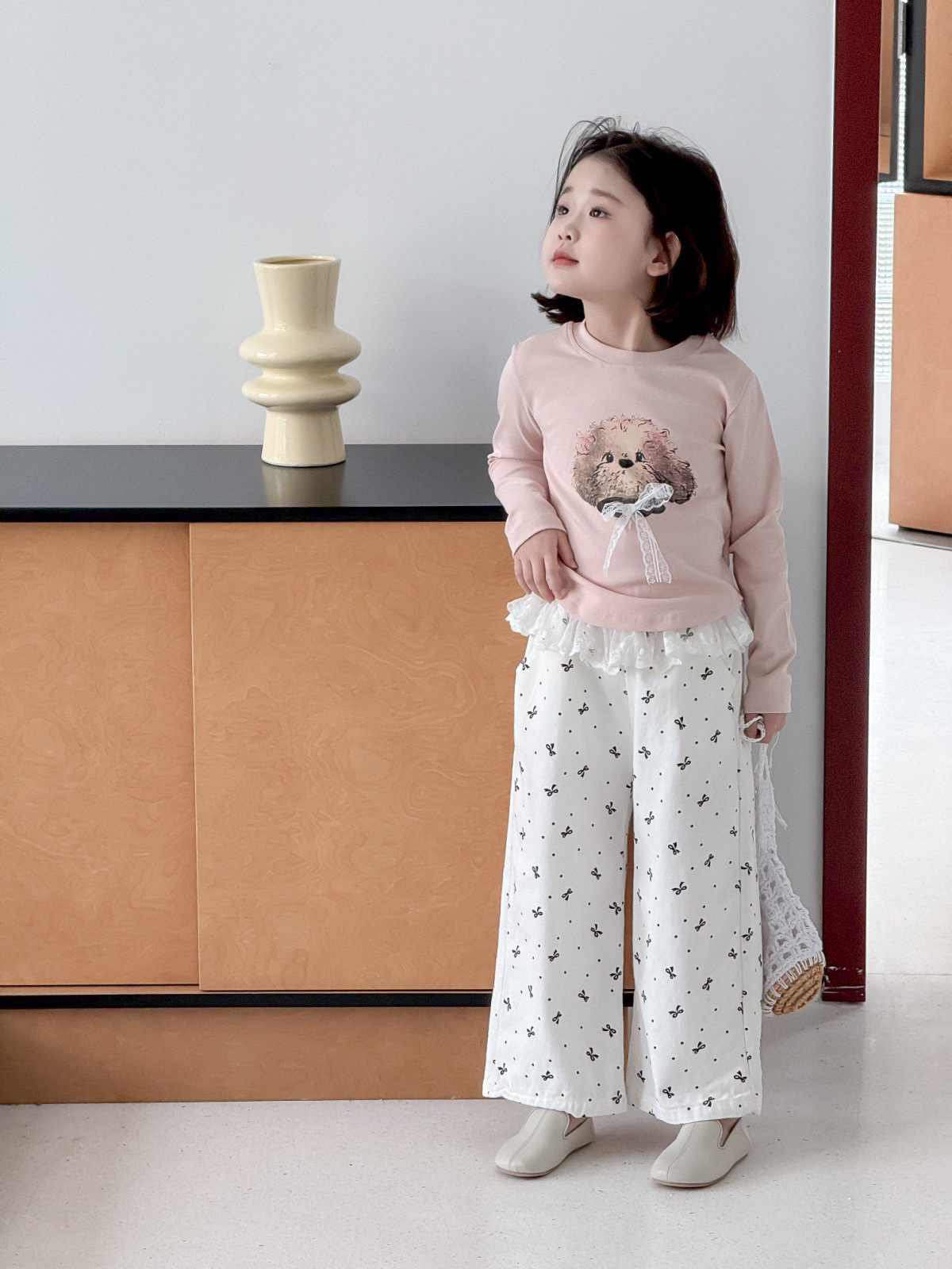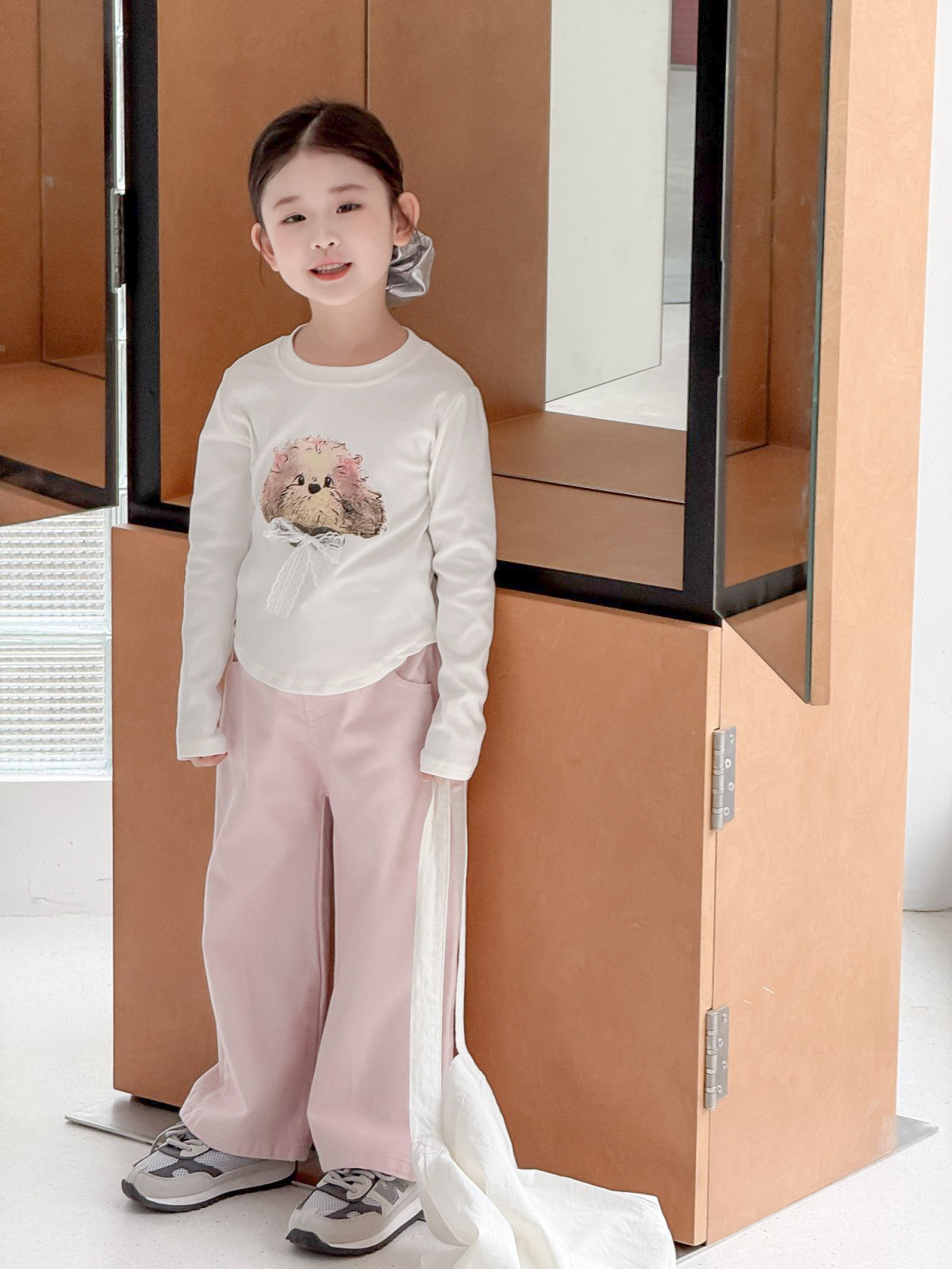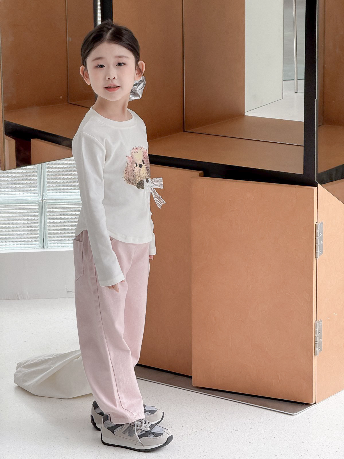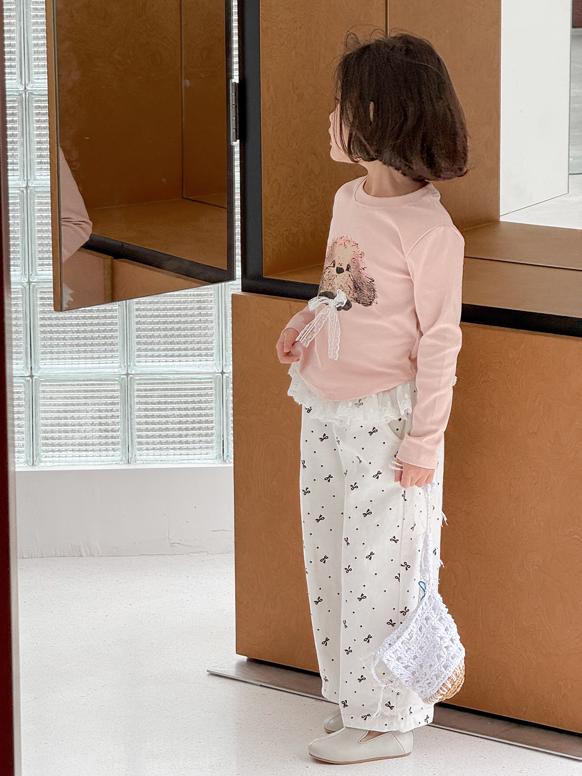 아동 의류 소녀 봄 의류 2025 새로운상의 요크셔 강아지 프린트 보우 긴팔 아동 티셔츠 유행스토어 가기