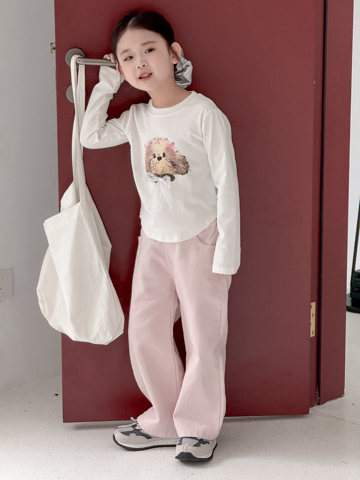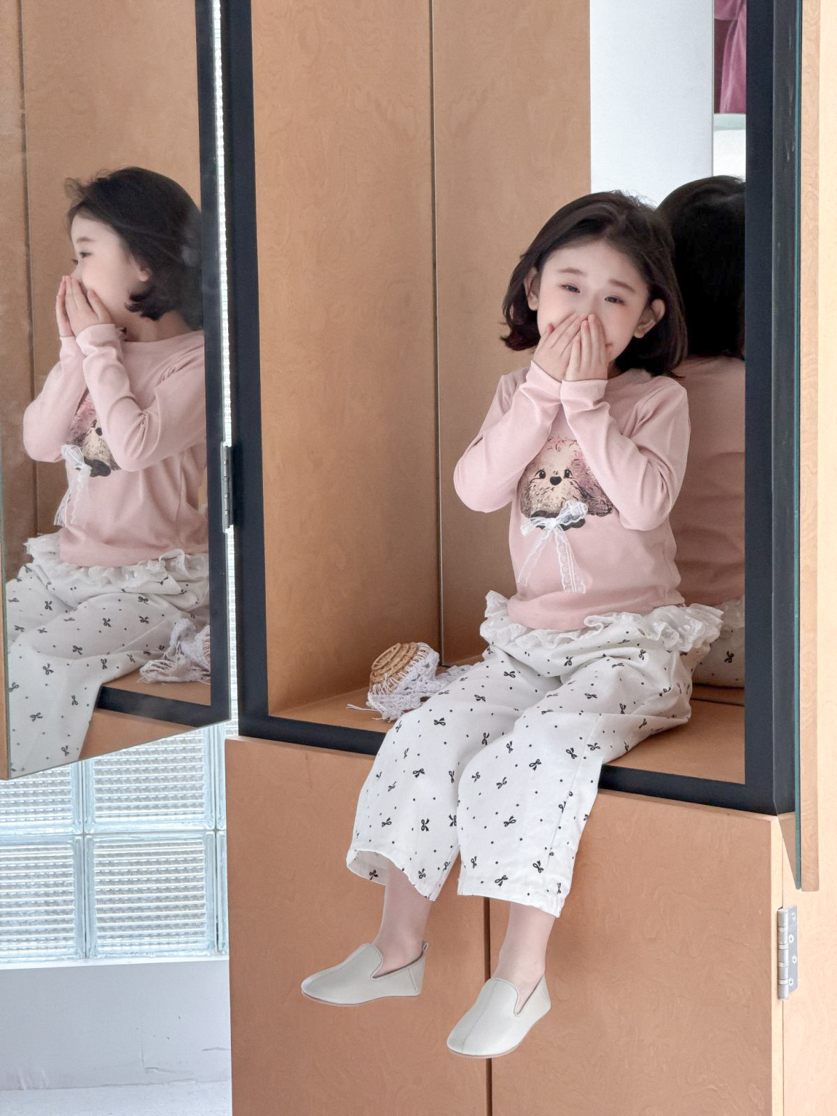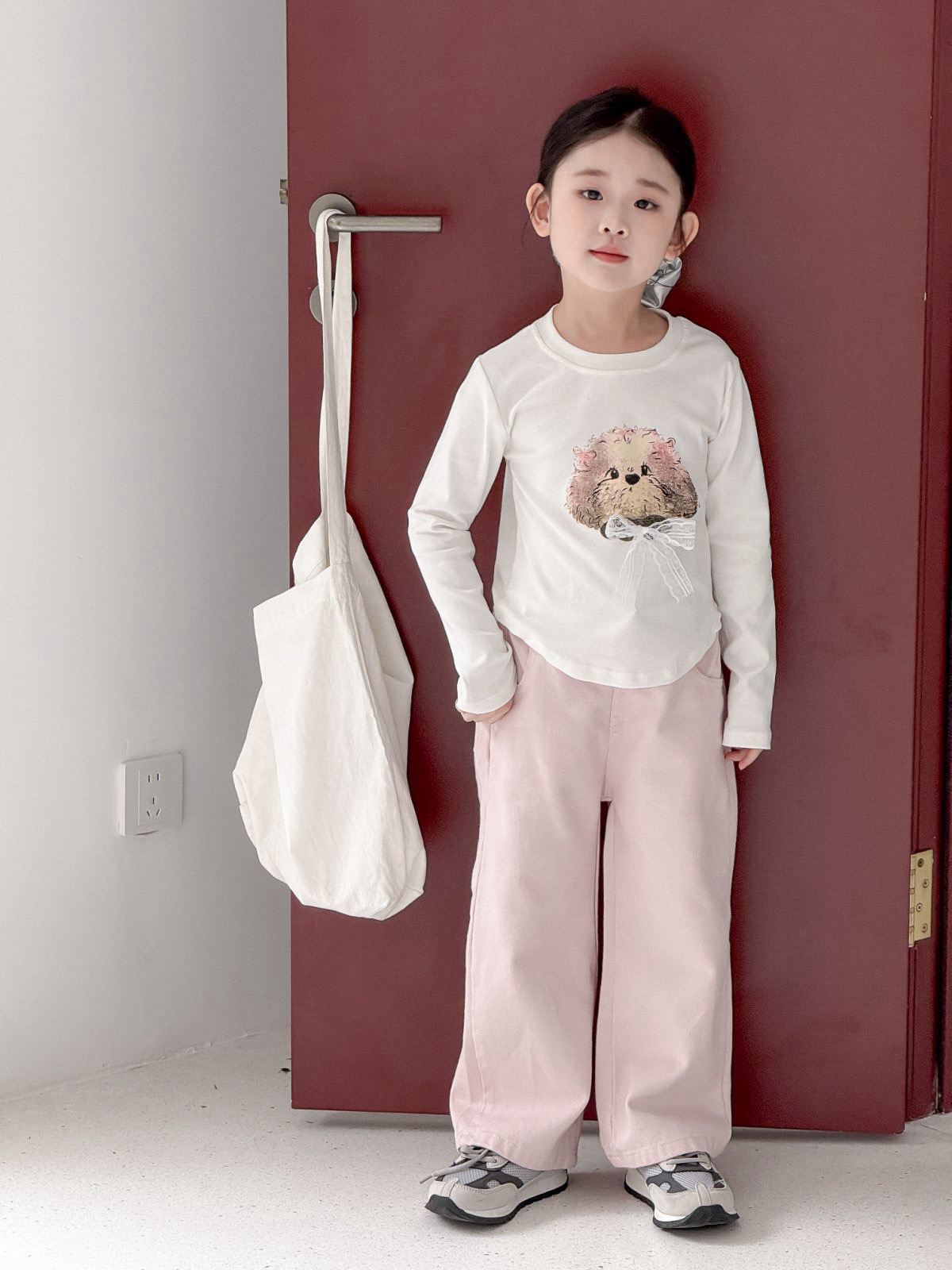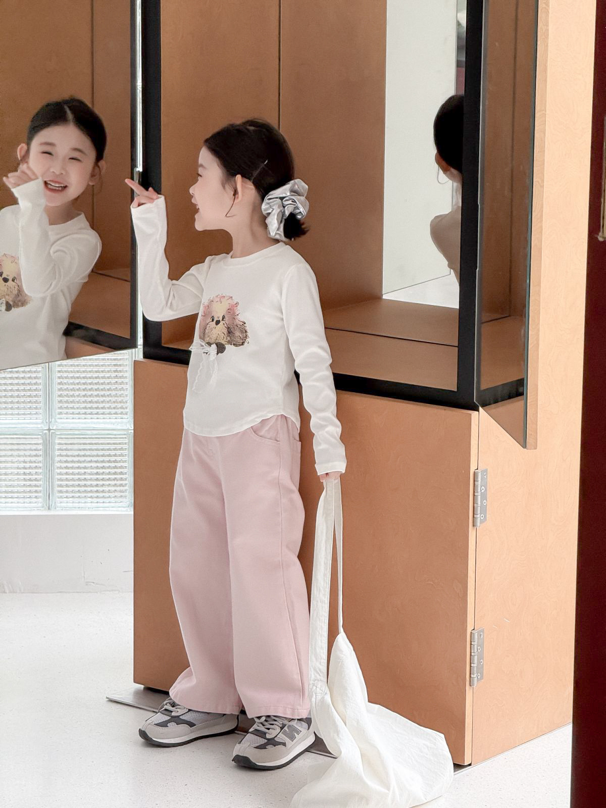 아동 의류 소녀 봄 의류 2025 새로운상의 요크셔 강아지 프린트 보우 긴팔 아동 티셔츠 유행스토어 가기