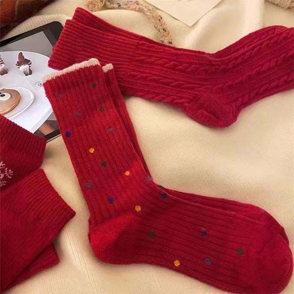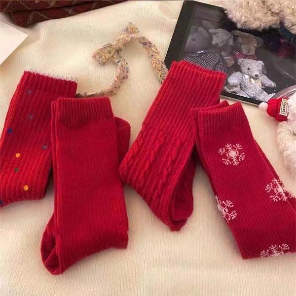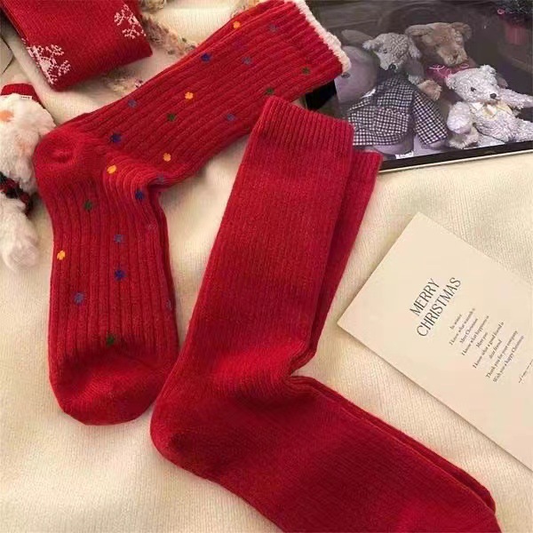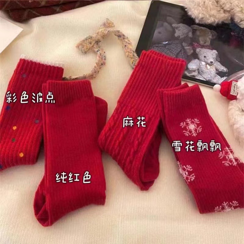가을 겨울 복고풍 말의 해 새해 빨간 양말 남성 커플의 탄생년 신부용 긴 양말 웨딩 양말 빨간 중간 길이 양말 여성용스토어 가기