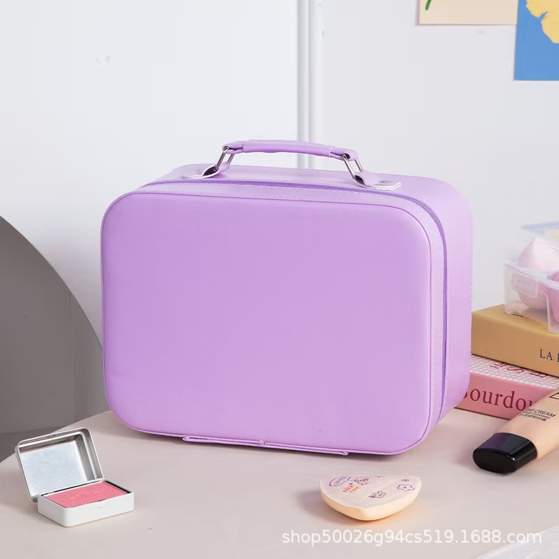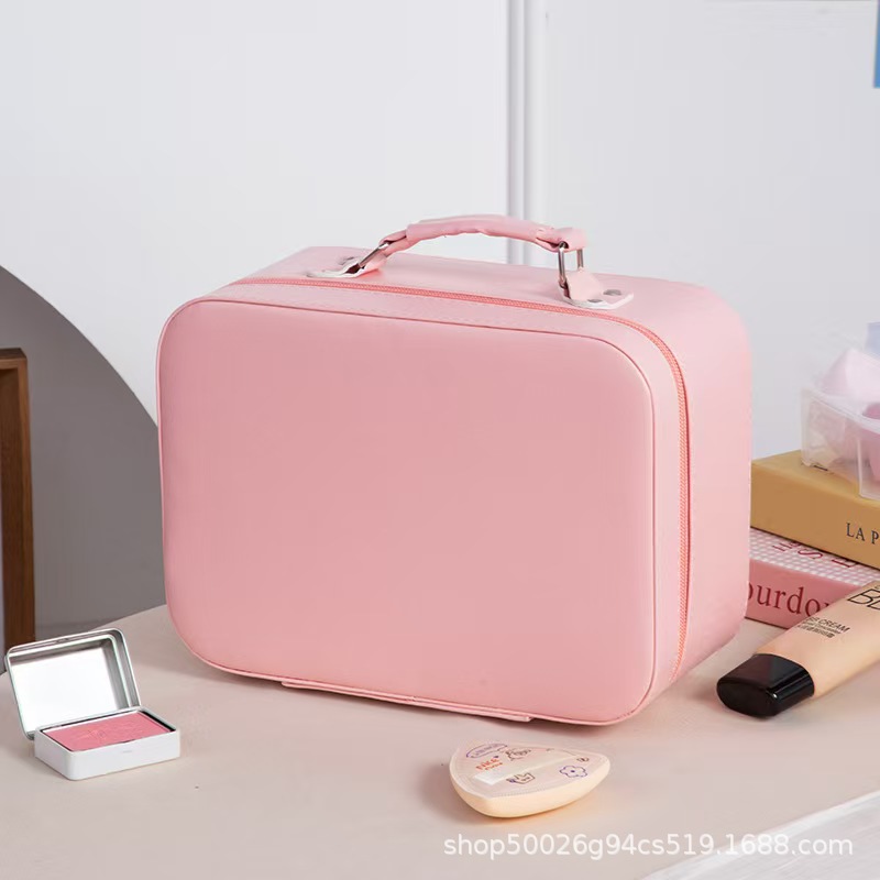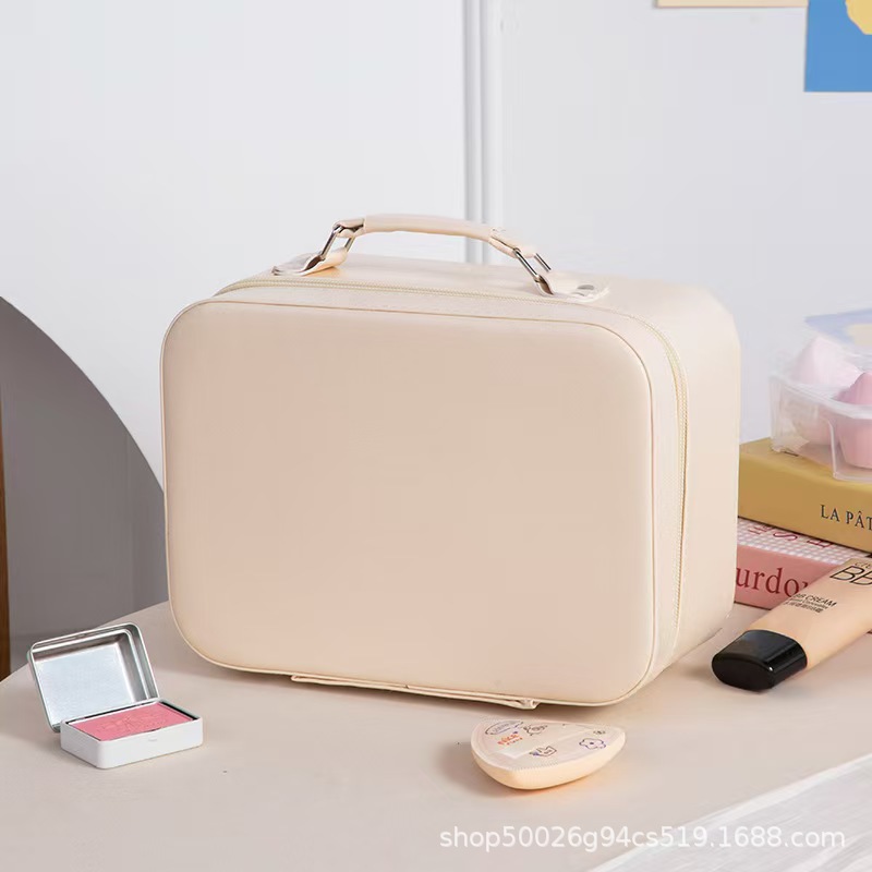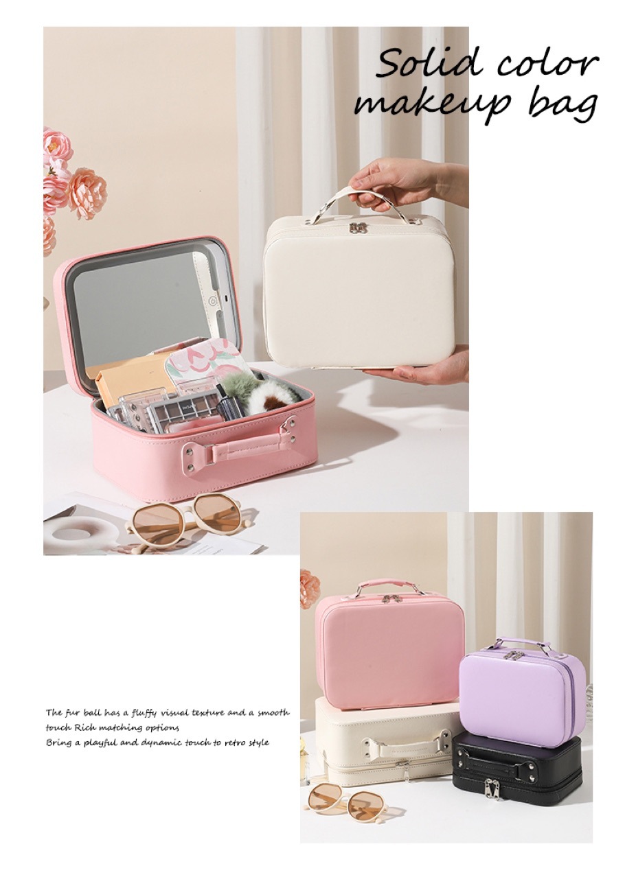 화장품 가방, 소형 조명 거울 포함, 화장품 전문 가방, 대용량 휴대용 다기능 수납함