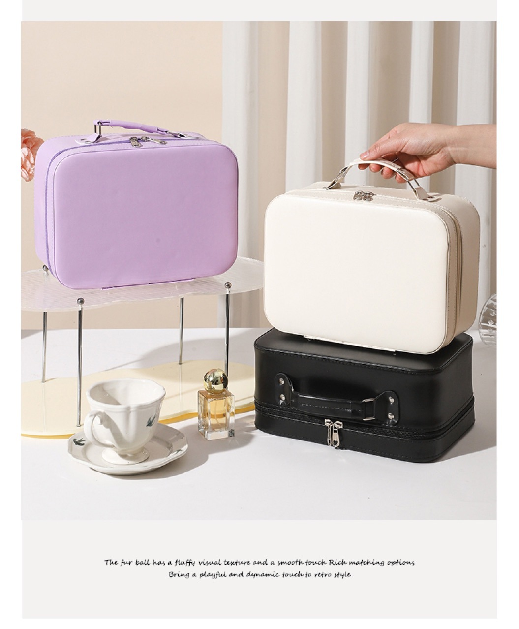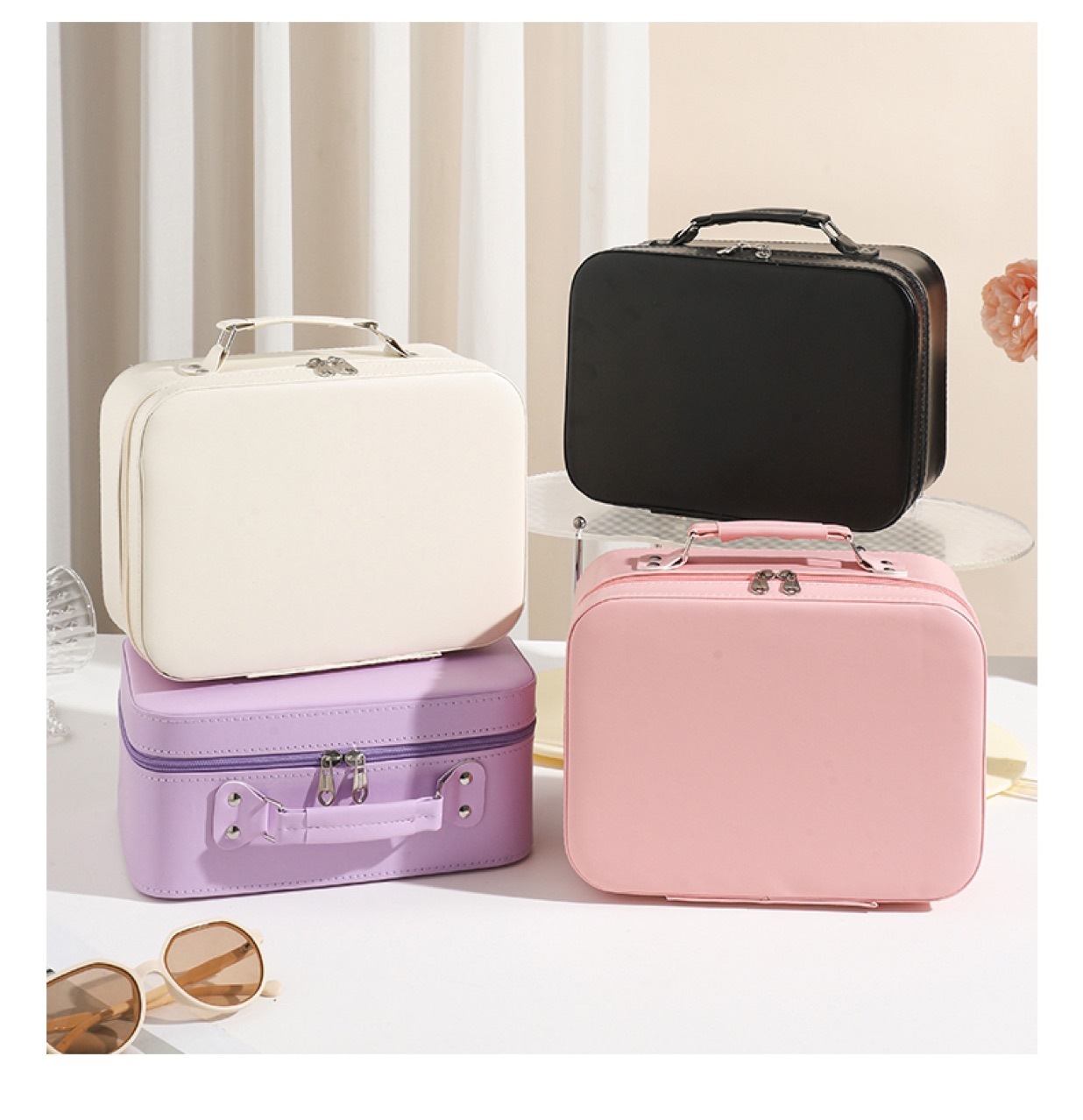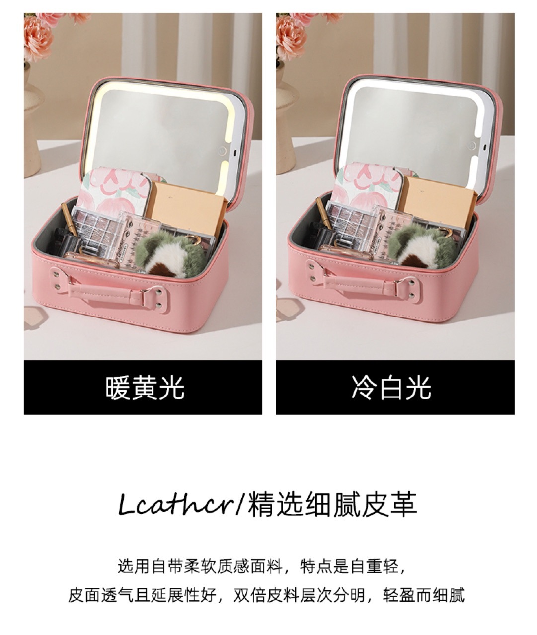 화장품 가방, 소형 조명 거울 포함, 화장품 전문 가방, 대용량 휴대용 다기능 수납함