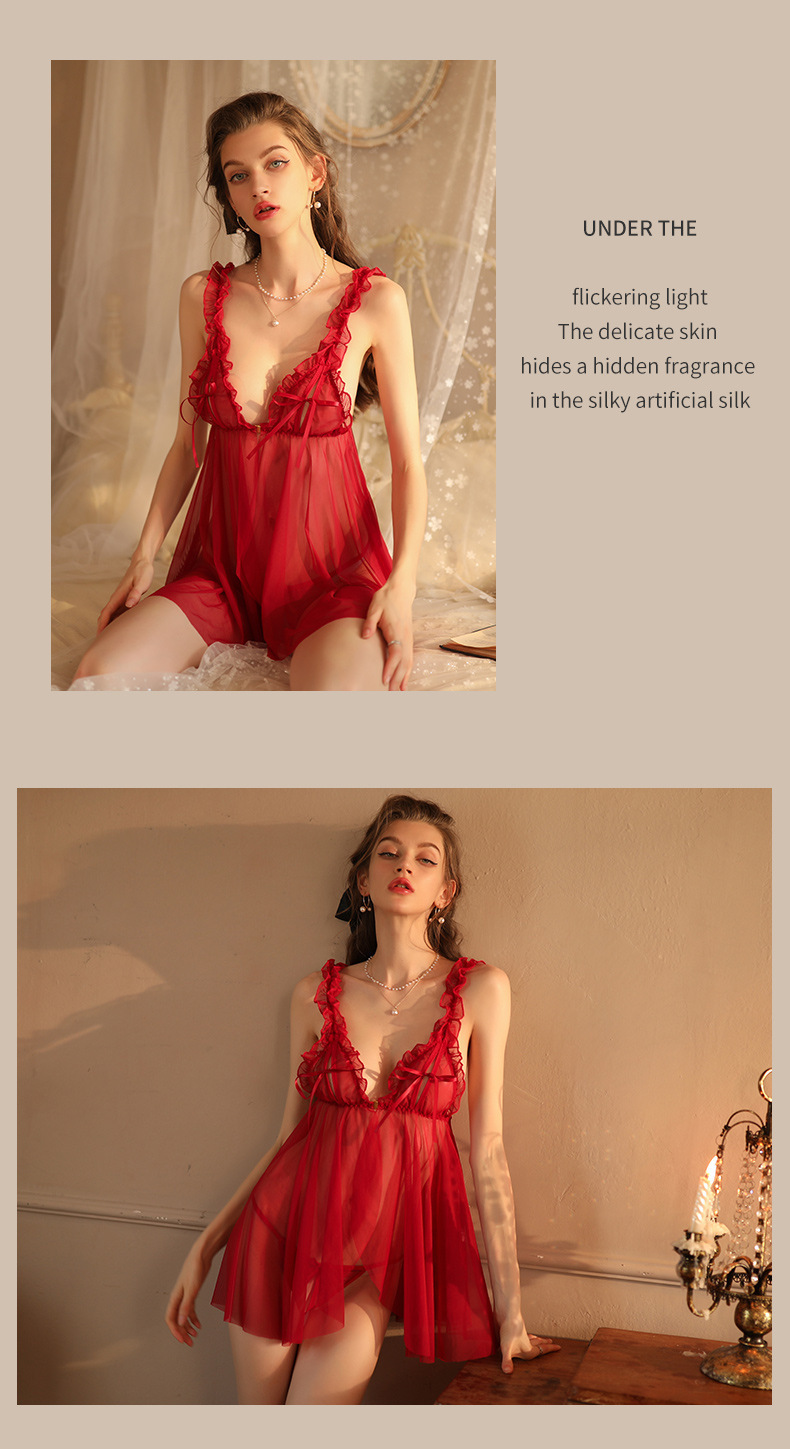 재미있는 잠옷 관점 레이스 성인 잠옷 여성의 로우 컷 프론트 버클 슬링 열정 잠옷 무료 투명 도매스토어 가기