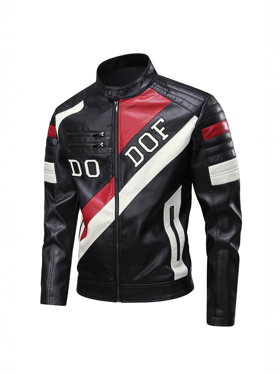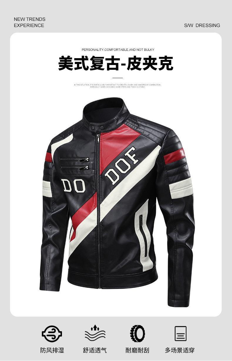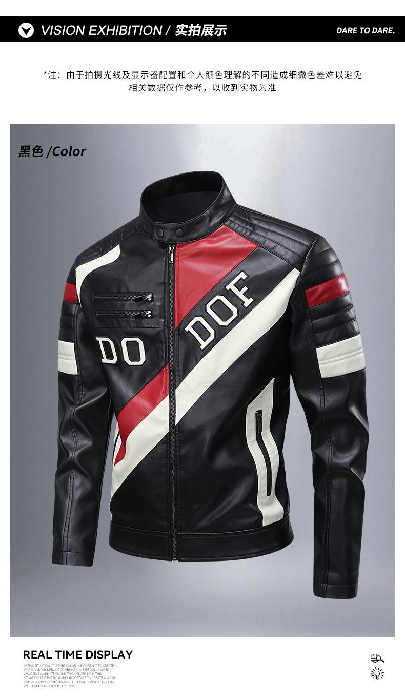 새로운 국경 유럽 사이즈 스탠드 칼라 남성 가죽 자켓 스티칭 자수 남성 가죽 재킷 오토바이 의류 레이싱 의류 오토바이스토어 가기