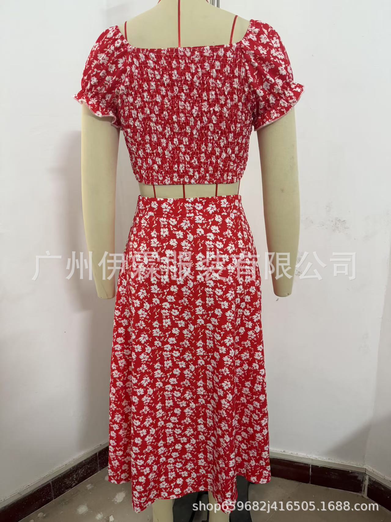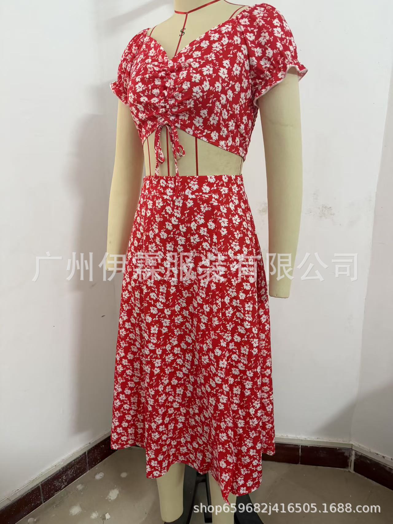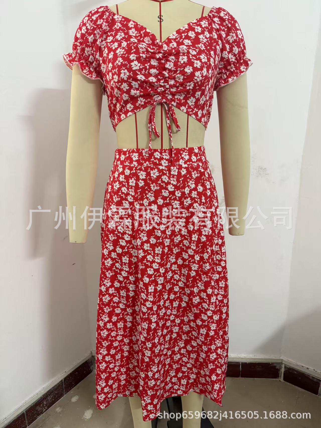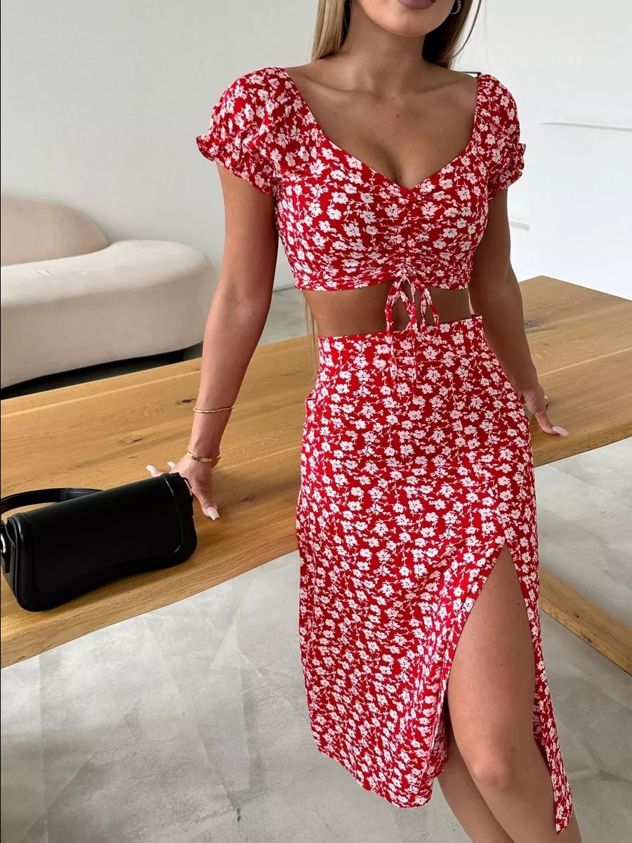 2025 국경 새로운 V 넥 우아한 꽃 프랑스 레트로 퍼프 슬리브 레이스 업 탑 스커트 세트 여성스토어 가기