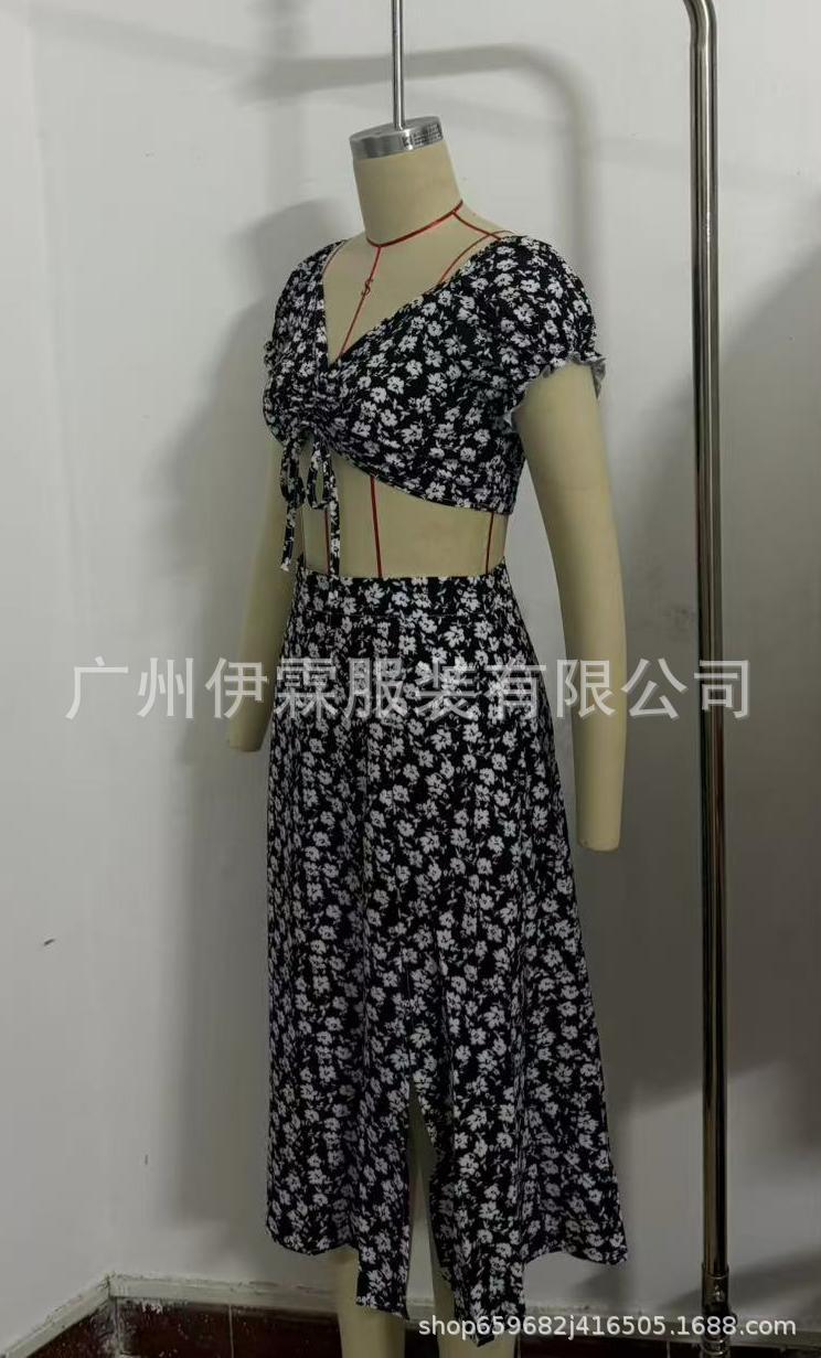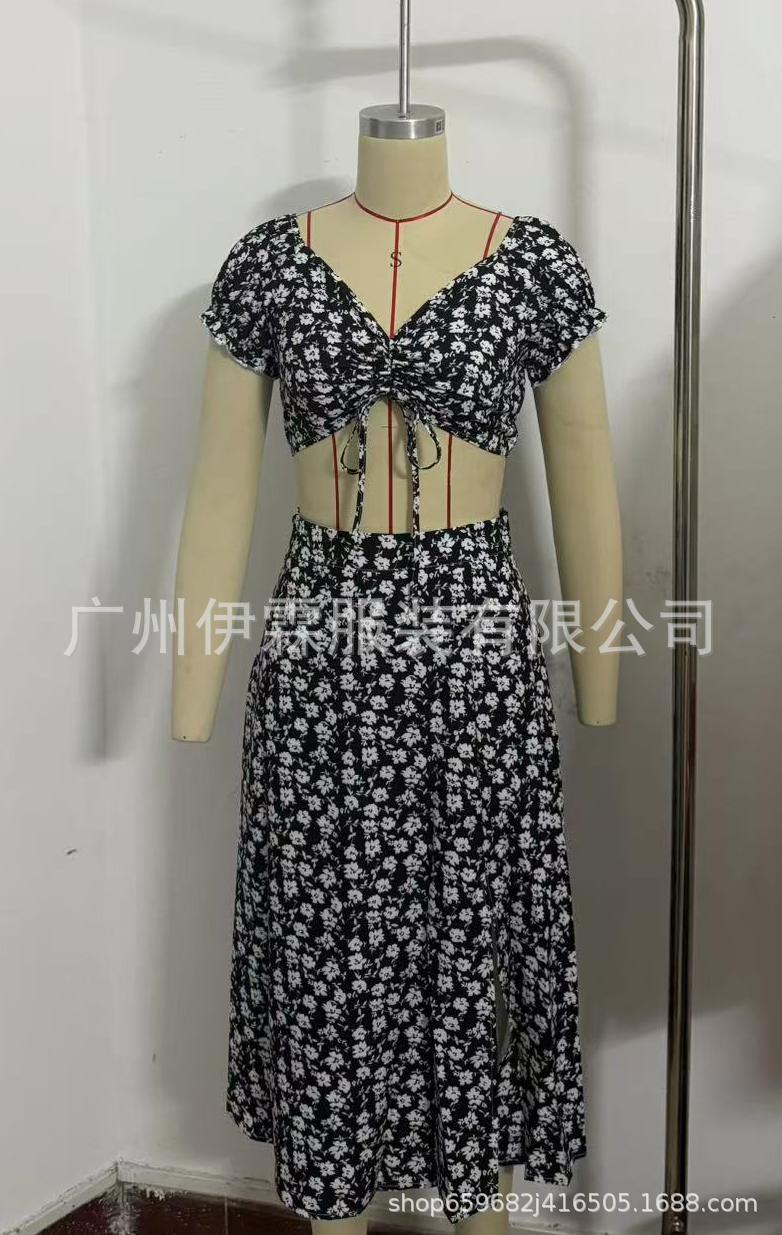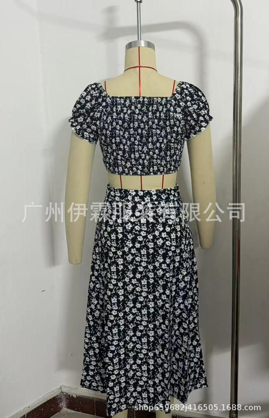 2025 국경 새로운 V 넥 우아한 꽃 프랑스 레트로 퍼프 슬리브 레이스 업 탑 스커트 세트 여성
