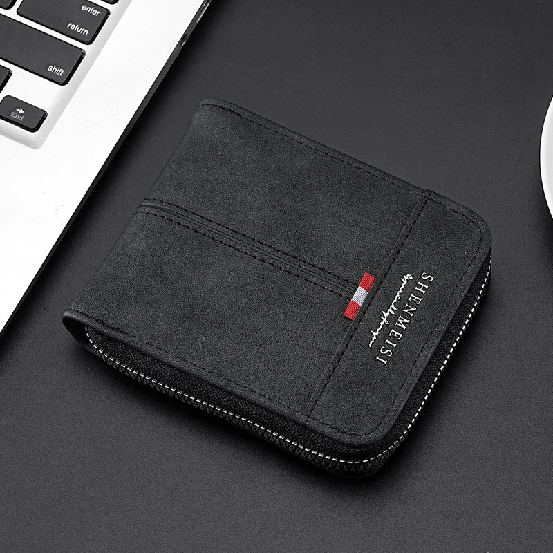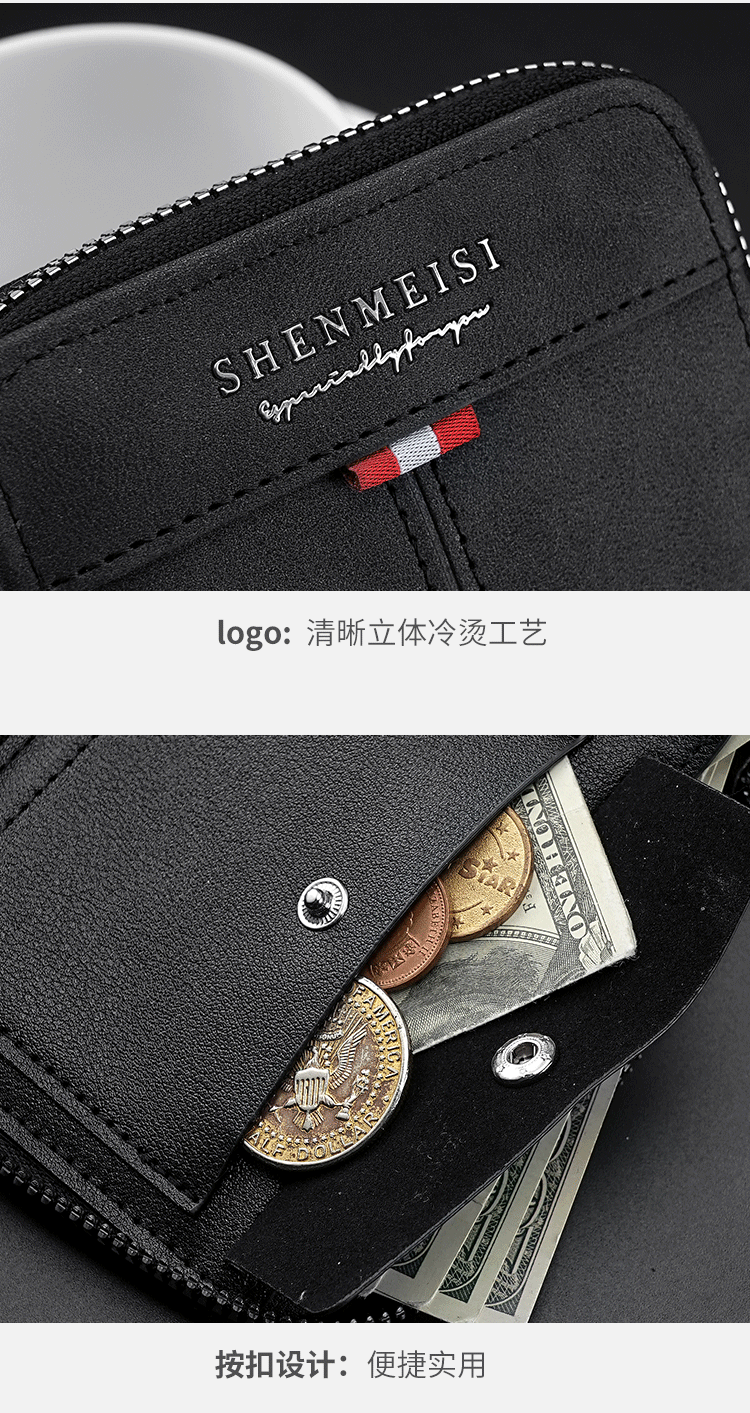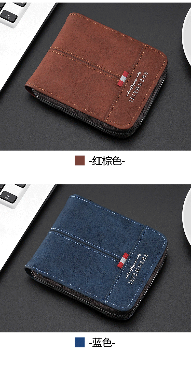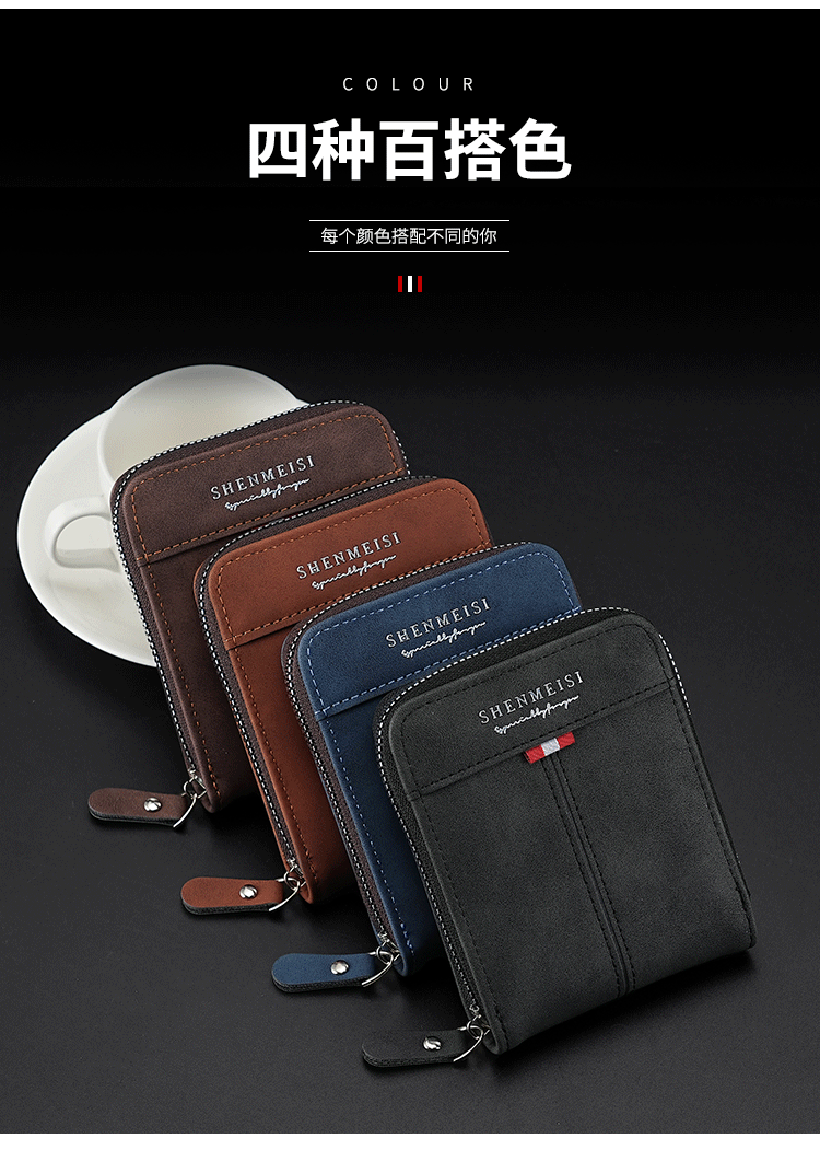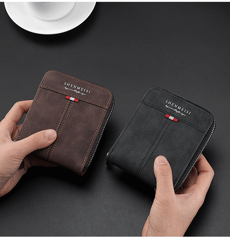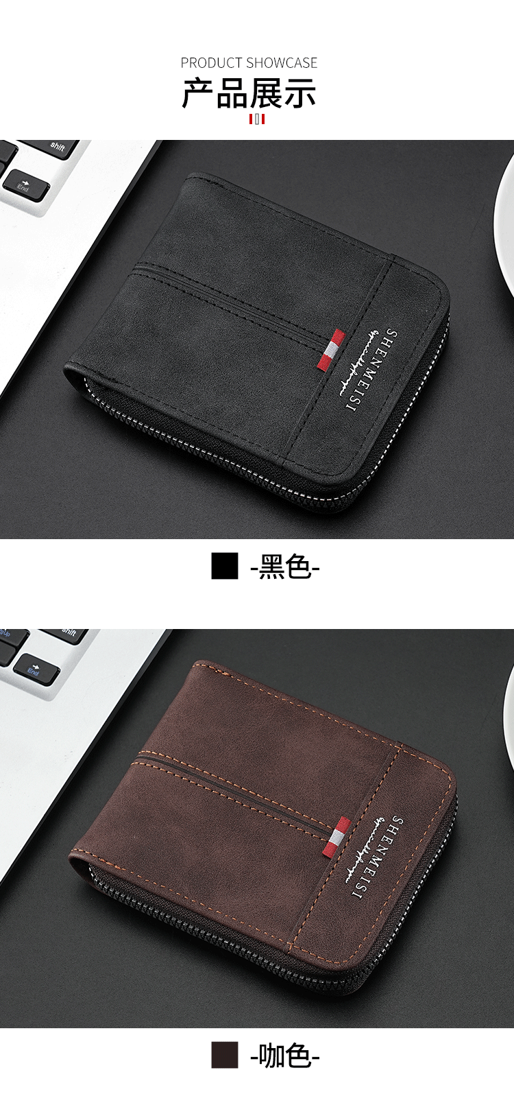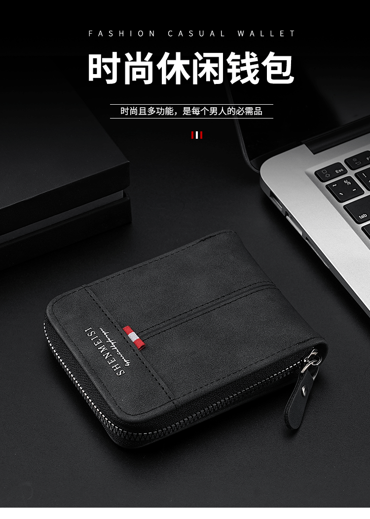 2025 새로운 국경 남성 지갑 짧은 수평 지퍼 지갑 동전 지갑 빈티지 캐주얼 버클 스퀘어 백스토어 가기