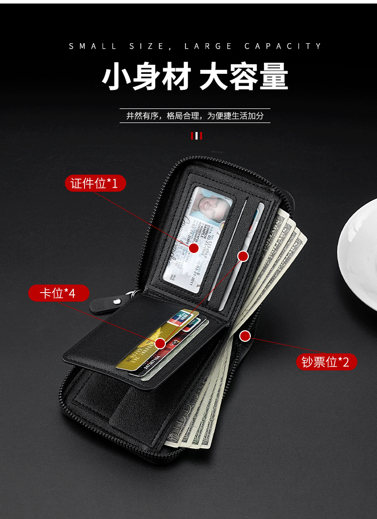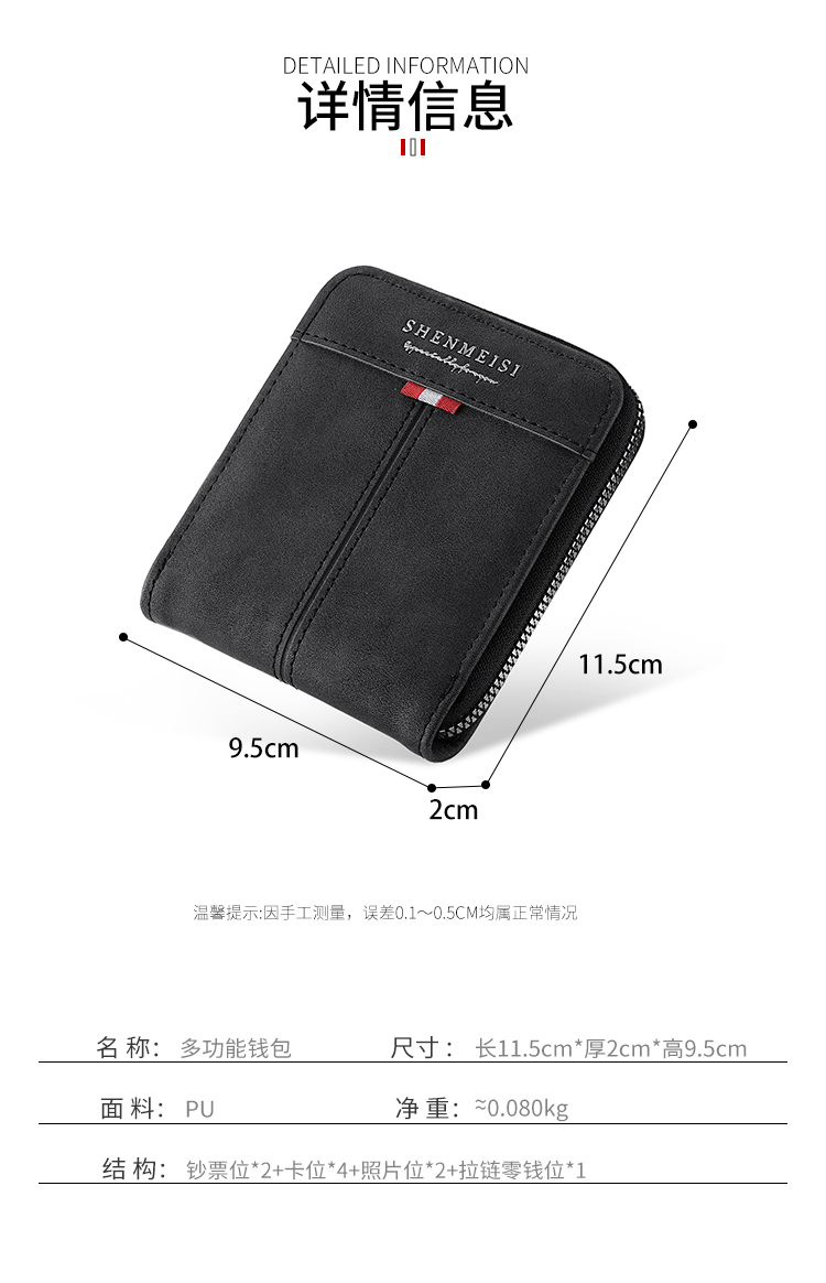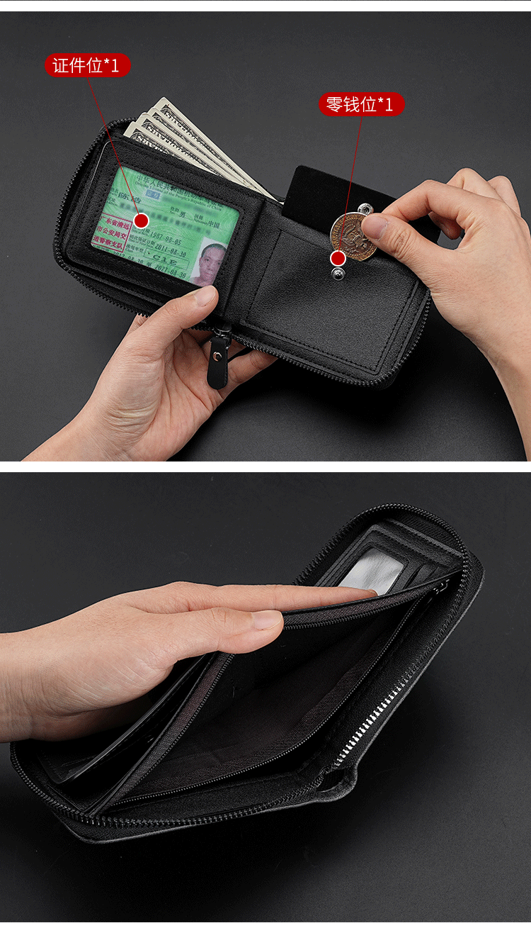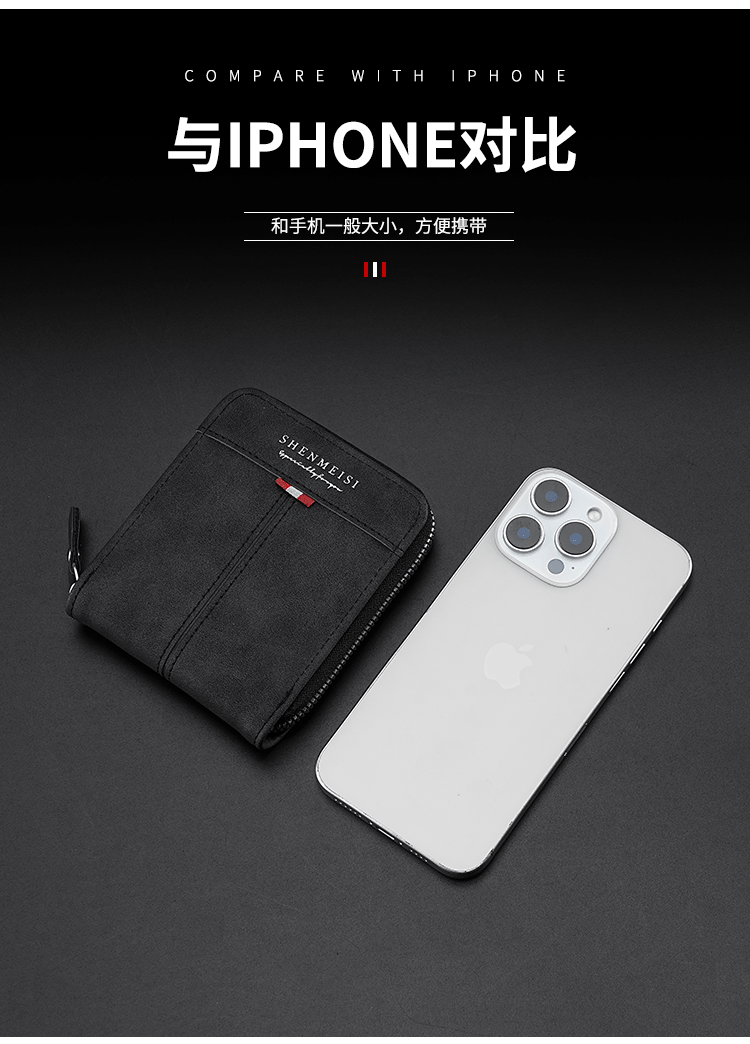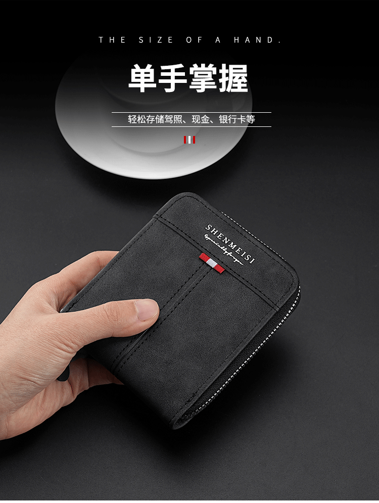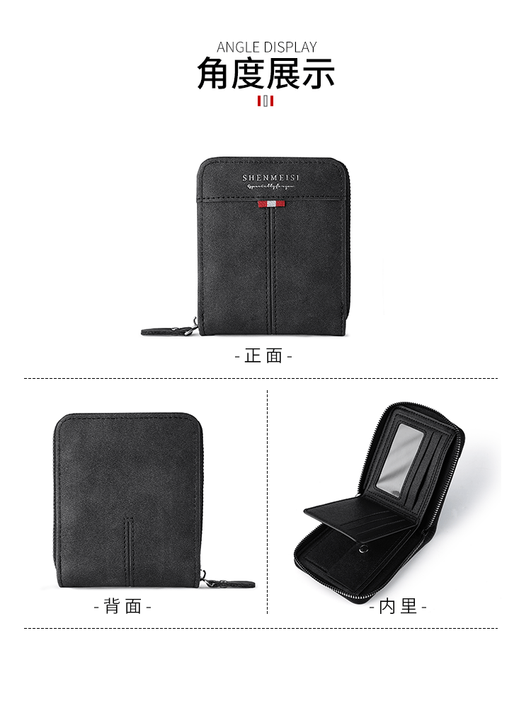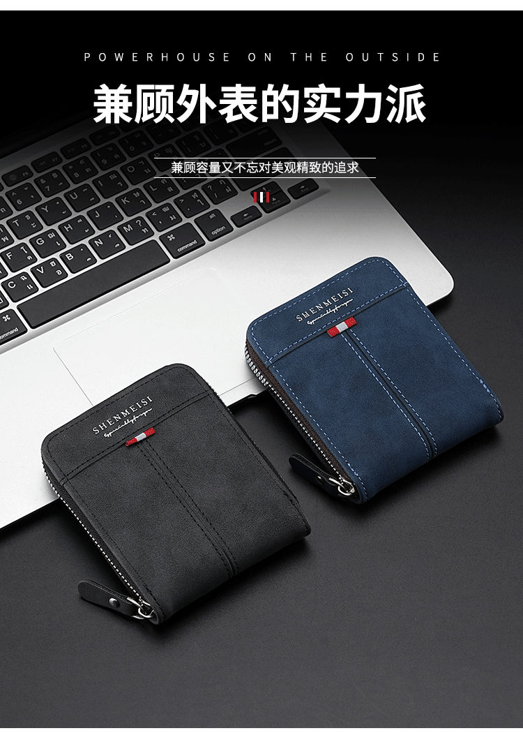 2025 새로운 국경 남성 지갑 짧은 수평 지퍼 지갑 동전 지갑 빈티지 캐주얼 버클 스퀘어 백스토어 가기