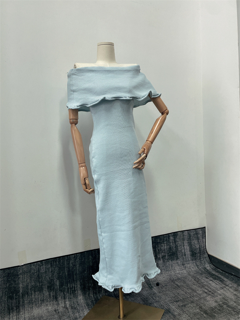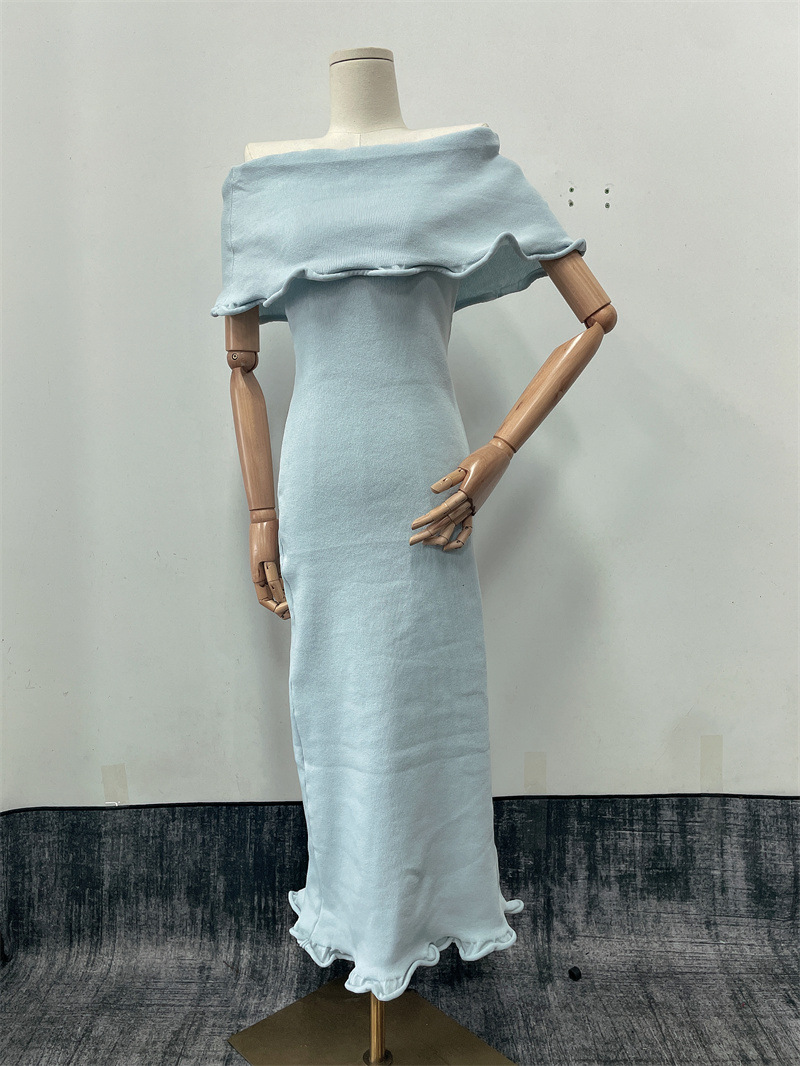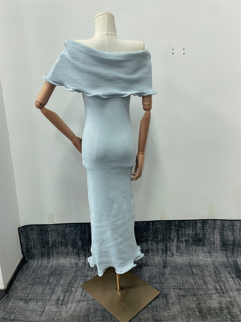 유럽과 미국의 새로운 국경 여성 패션 슬림 핏 섹시한 민소매 어깨 솔리드 컬러 니트 원피스
