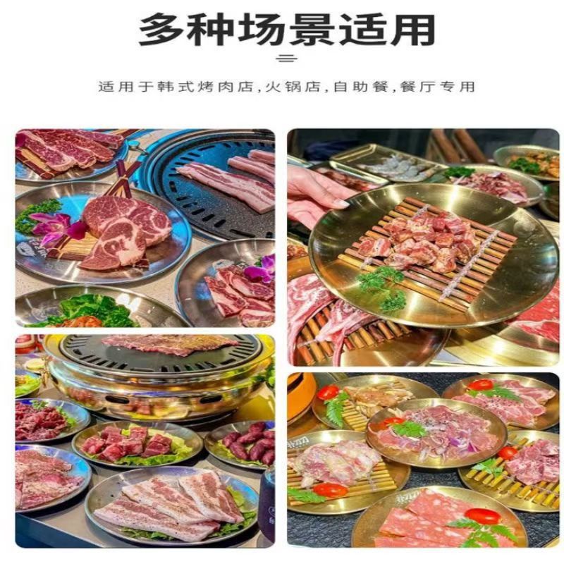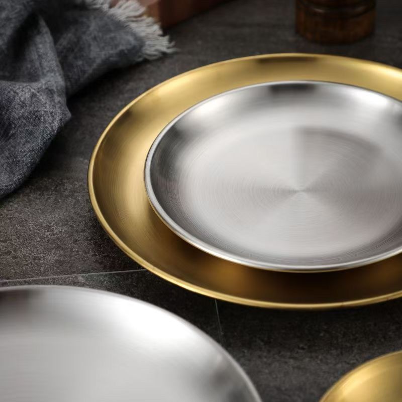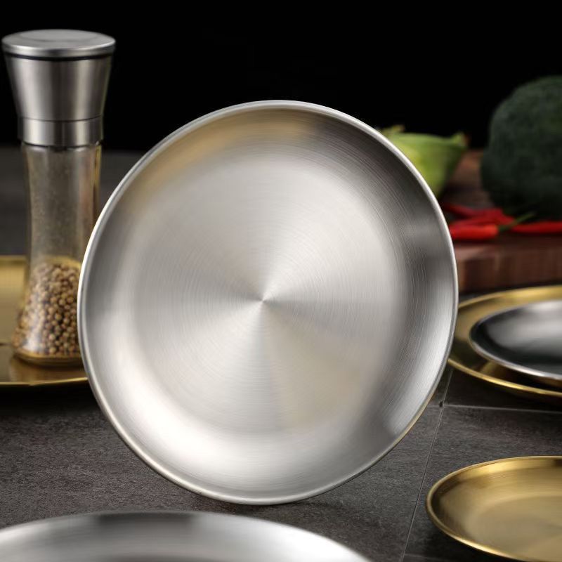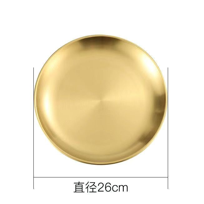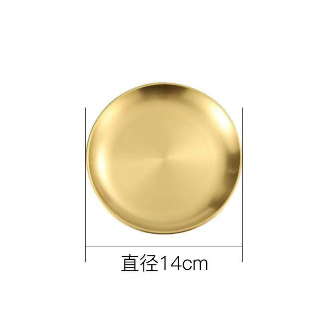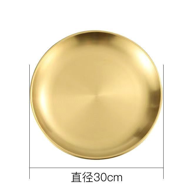 과일 접시 케이크 접시 한국 스테인레스 스틸 골드 원형 접시 상업용 뼈 접시 바베큐 접시 얕은 접시 두꺼운 트레이
