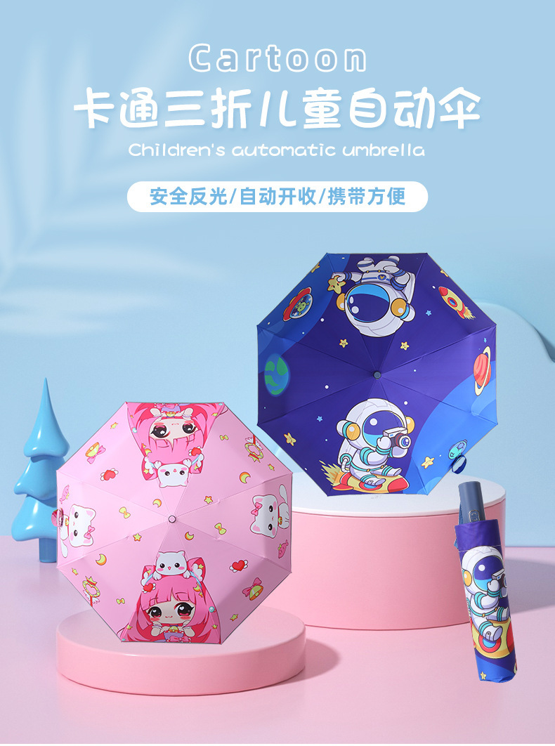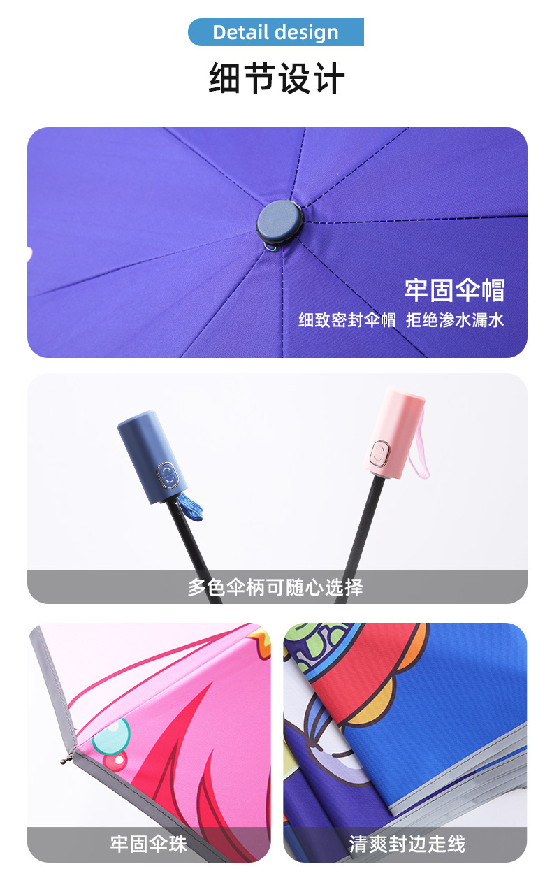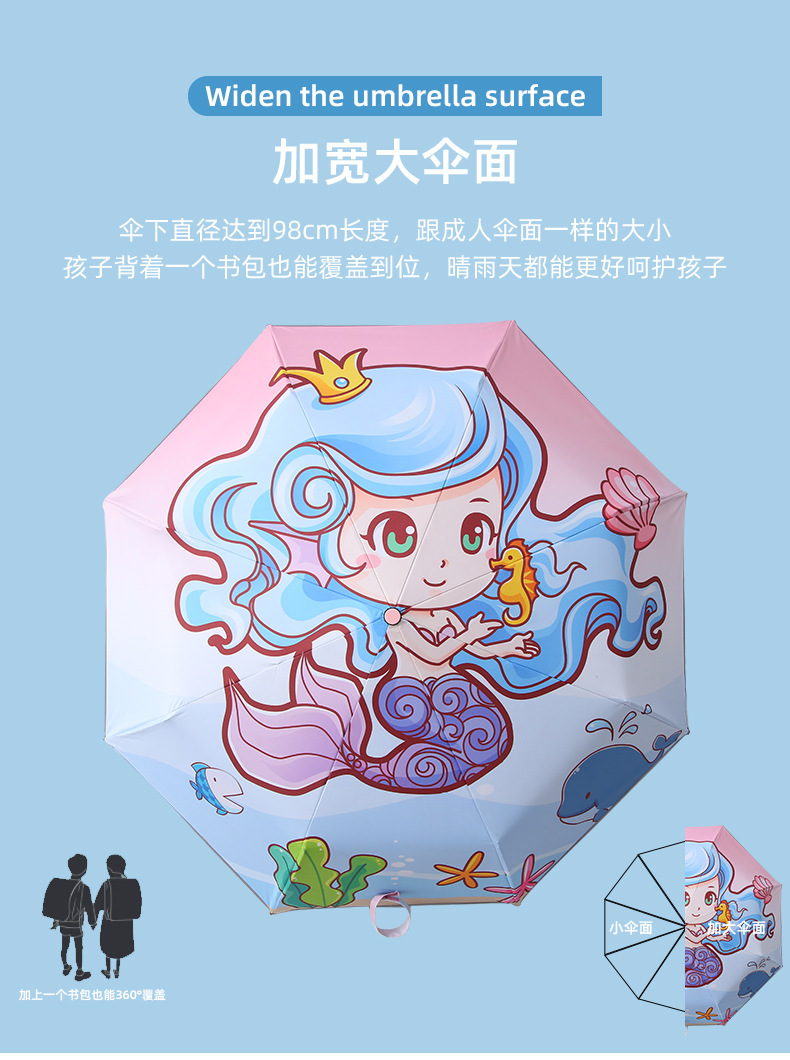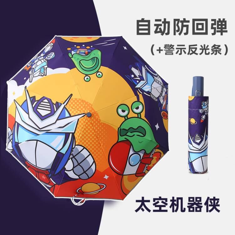 어린이용 우산, 반동 방지, 접이식, 블랙 글로시 반사 스트립, 초등학생 남녀공용, 70% off 우산, 만화 캐릭터, 차양스토어 가기