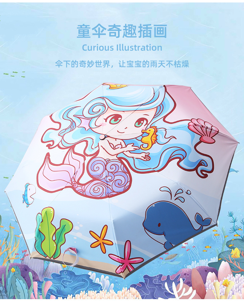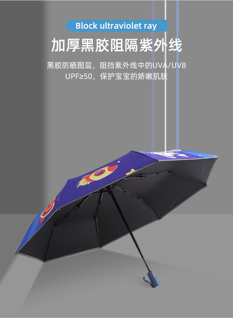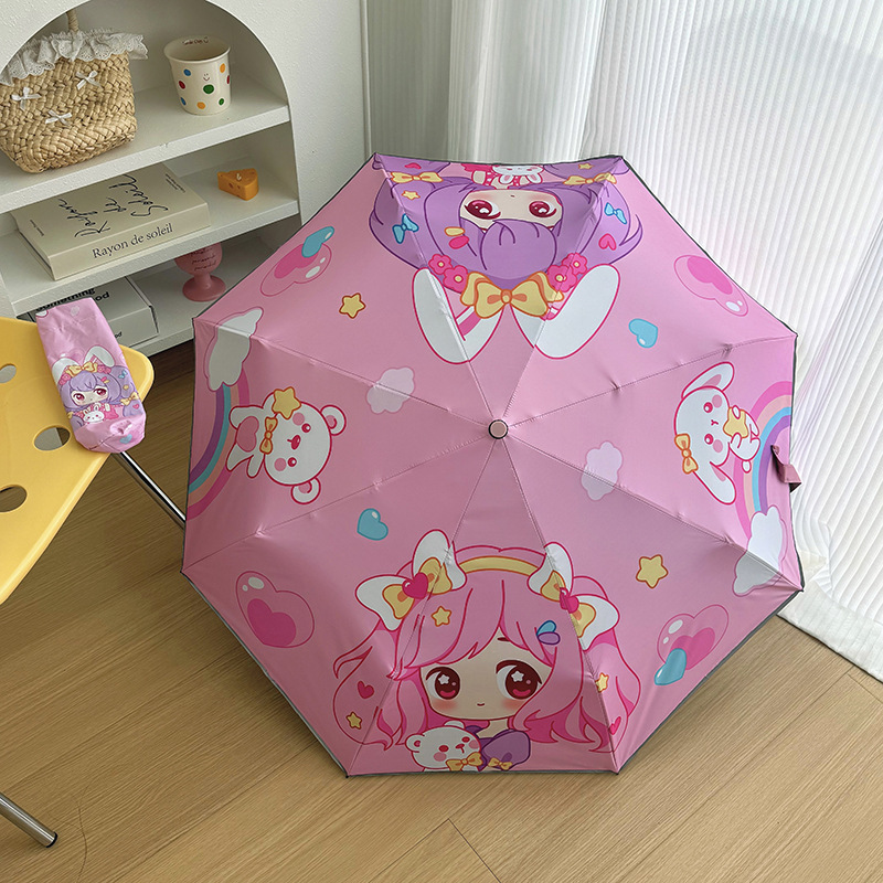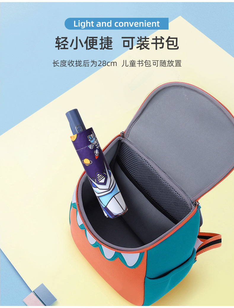 어린이용 우산, 반동 방지, 접이식, 블랙 글로시 반사 스트립, 초등학생 남녀공용, 70% off 우산, 만화 캐릭터, 차양스토어 가기