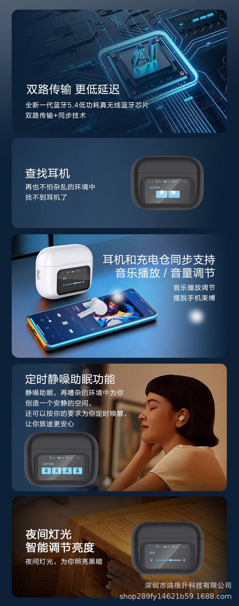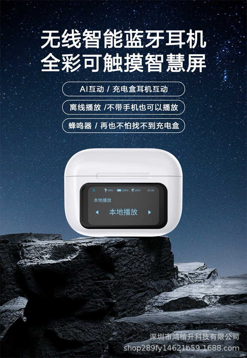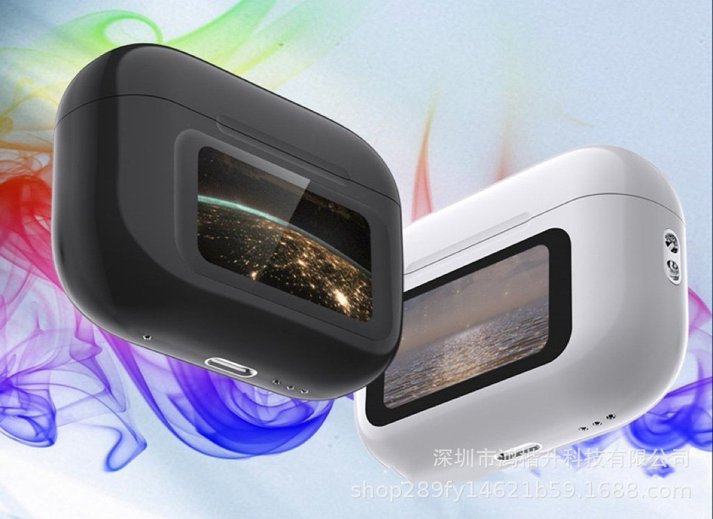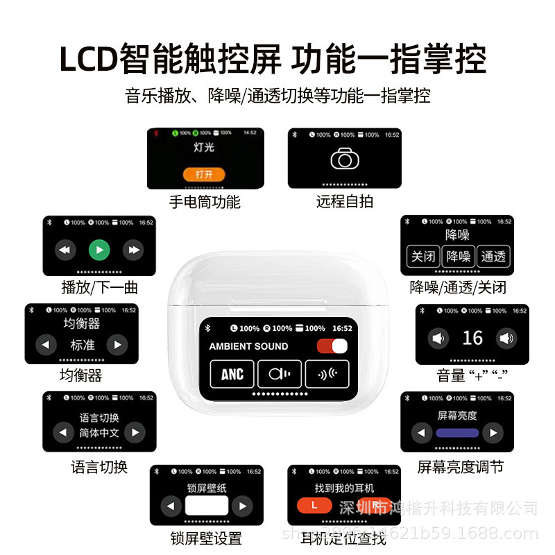 2024新款触屏降噪智能蓝牙耳机定制logo跨境外贸亚马逊热销爆款ENC/ANC降噪蓝牙耳机无线长续航入耳LCD彩屏商务运动耳机tws华强北耳机深圳数码