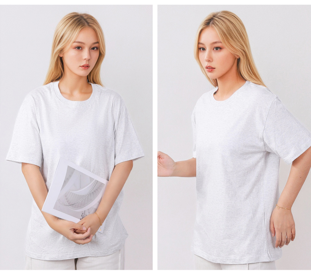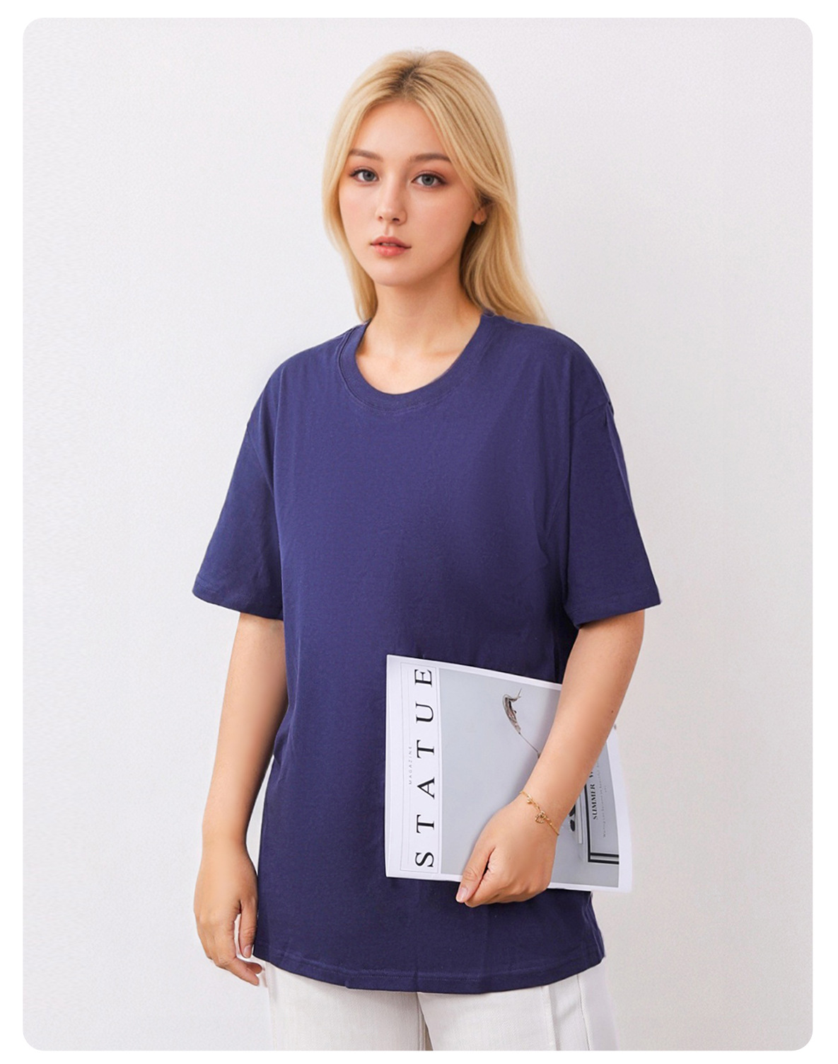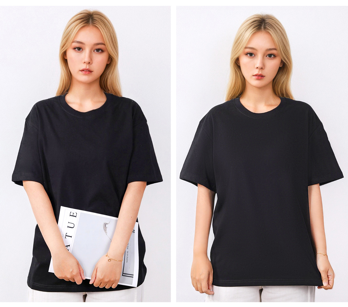 220G 순면 티셔츠 반팔 코마사 여성용 라운드넥 단색 티셔츠 스트레이트 캐주얼 티셔츠 패션 만능 아이템