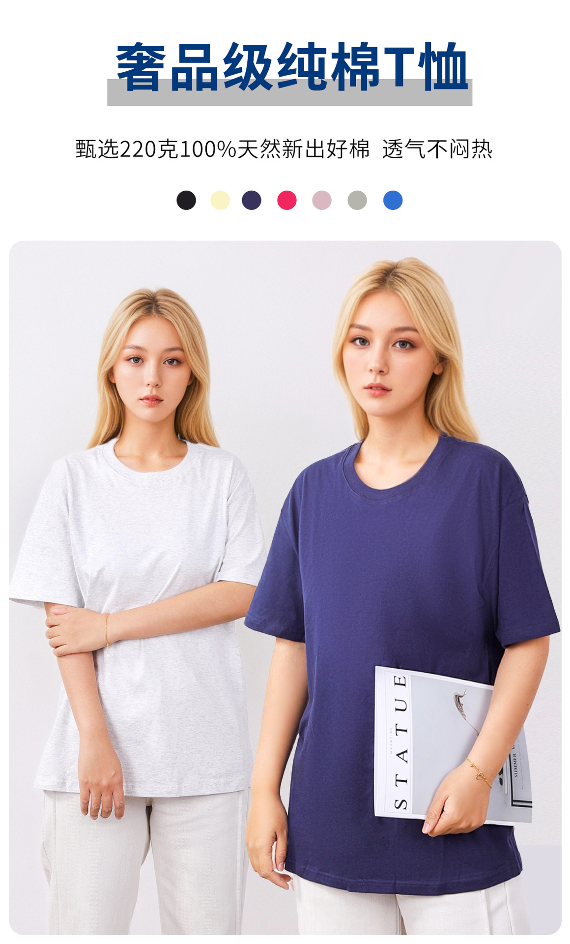 220G 순면 티셔츠 반팔 코마사 여성용 라운드넥 단색 티셔츠 스트레이트 캐주얼 티셔츠 패션 만능 아이템스토어 가기