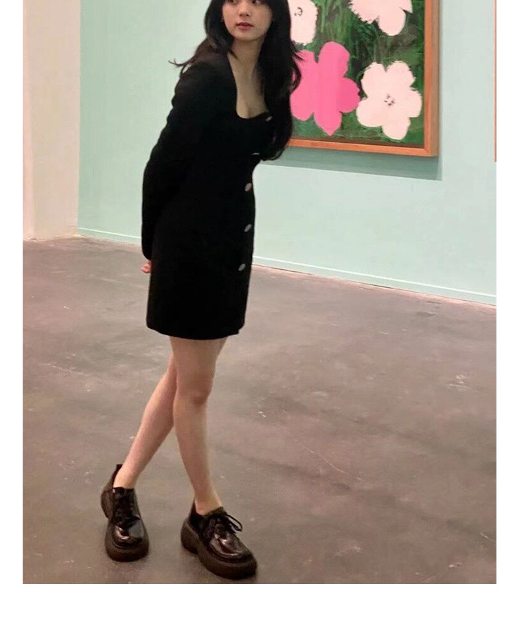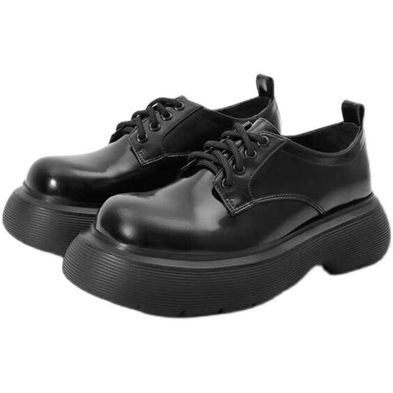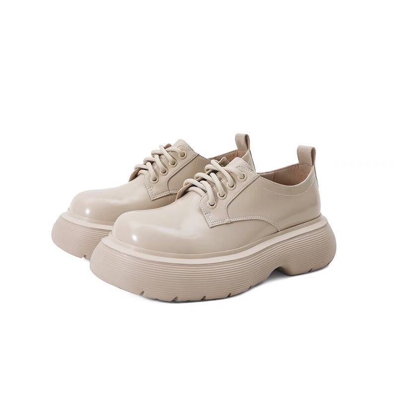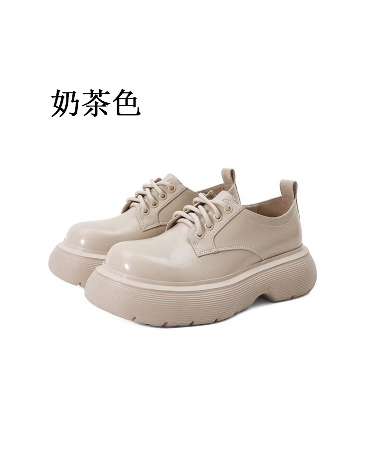 Zhao Ruth 같은 스타일의 큰 머리 Mary Jane 작은 가죽 신발 두꺼운 단독 23 봄과 가을 높이 증가 영국 스타일 레이스 업 라운드 토 여성용 신발