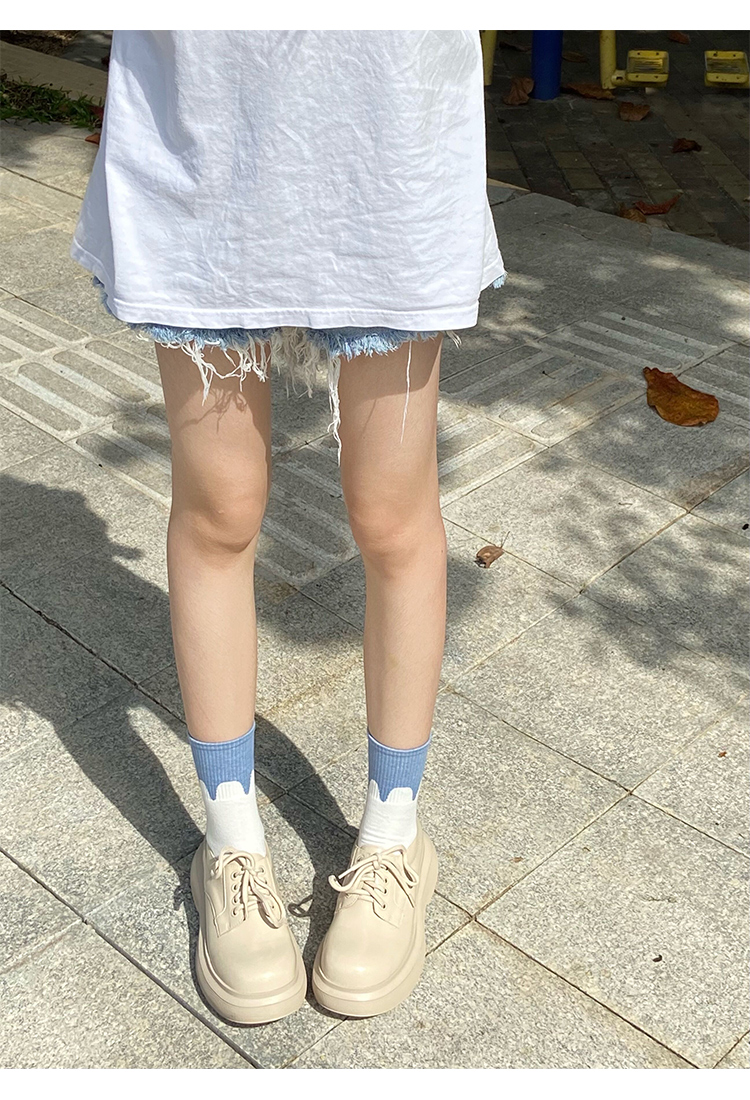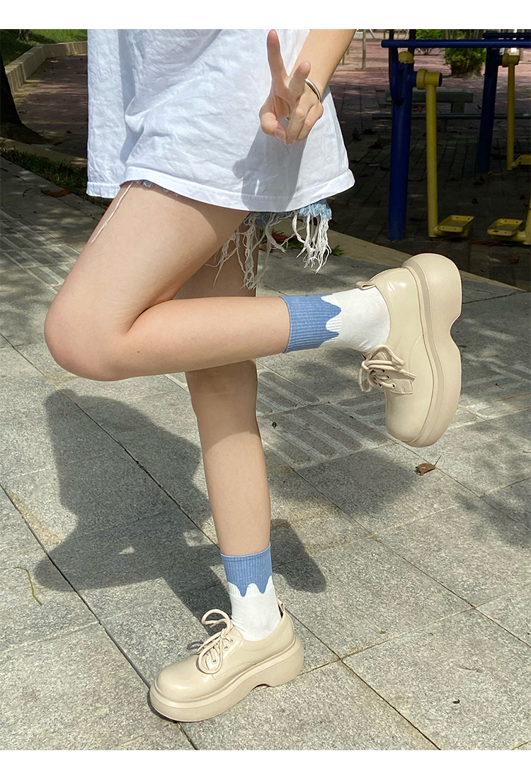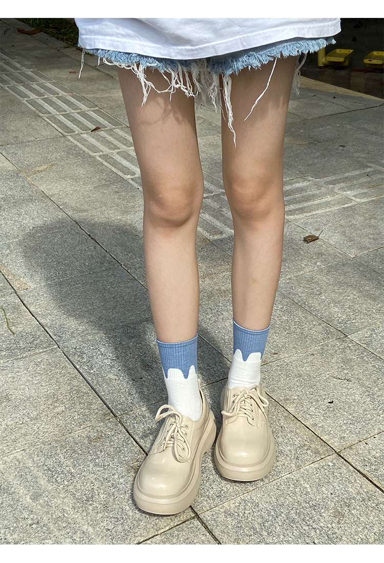 Zhao Ruth 같은 스타일의 큰 머리 Mary Jane 작은 가죽 신발 두꺼운 단독 23 봄과 가을 높이 증가 영국 스타일 레이스 업 라운드 토 여성용 신발스토어 가기
