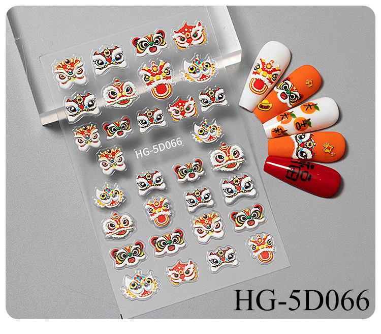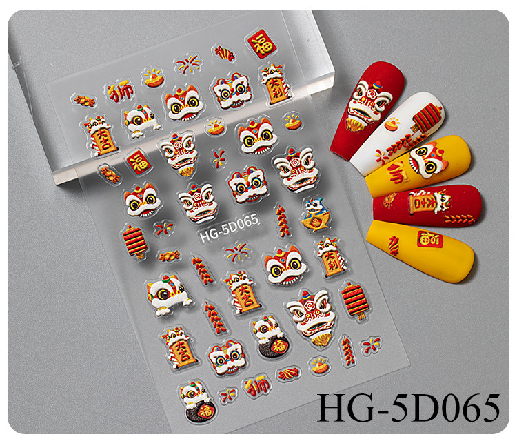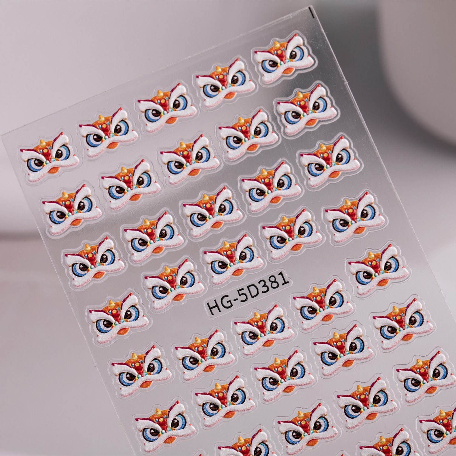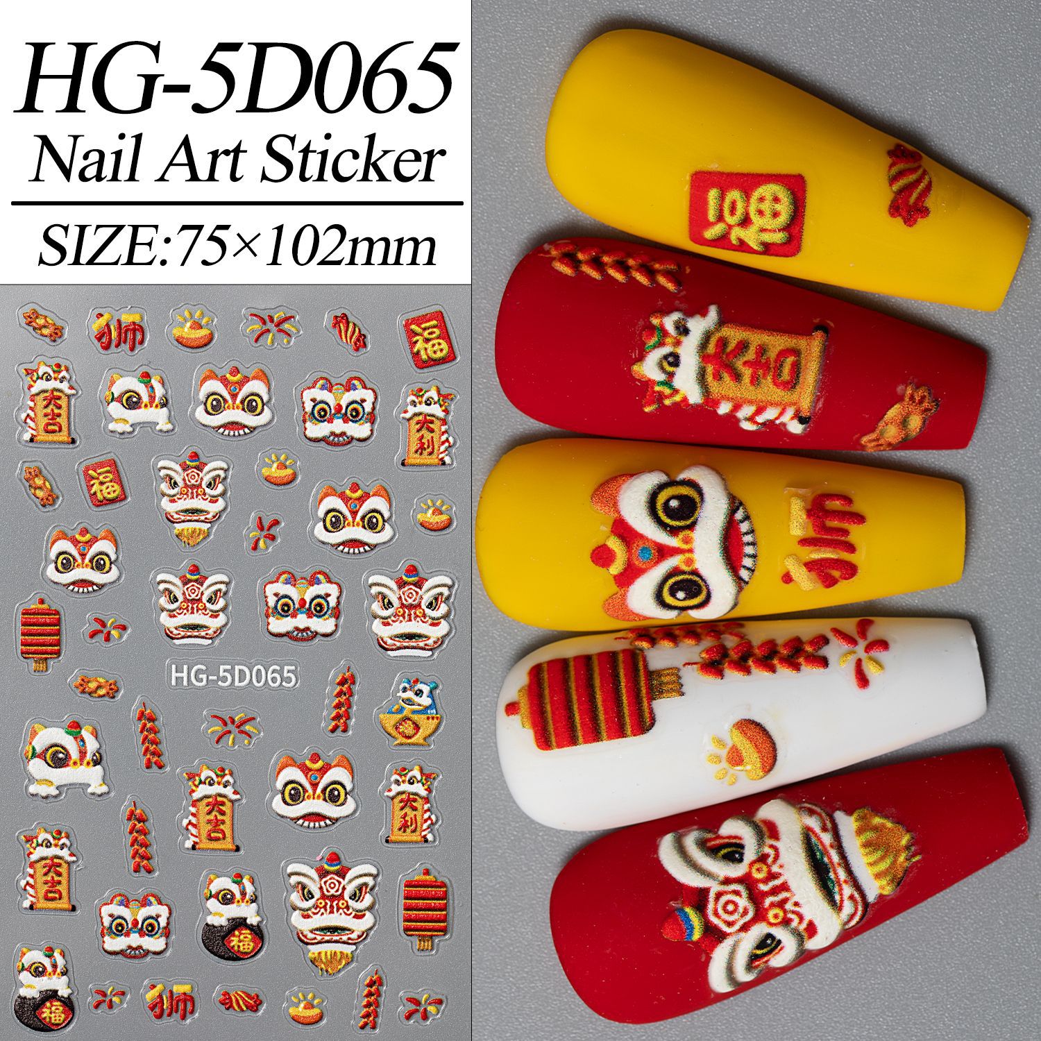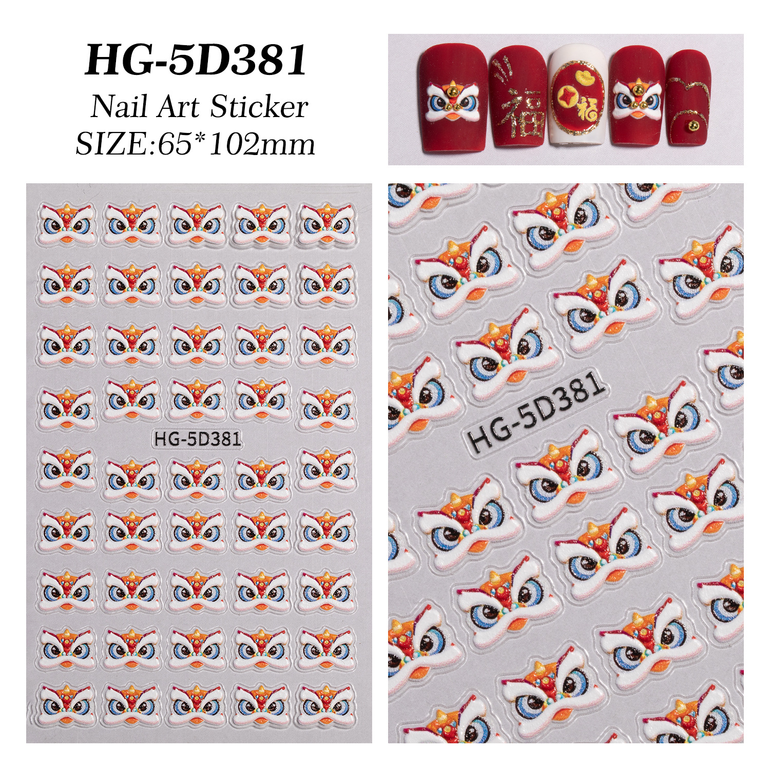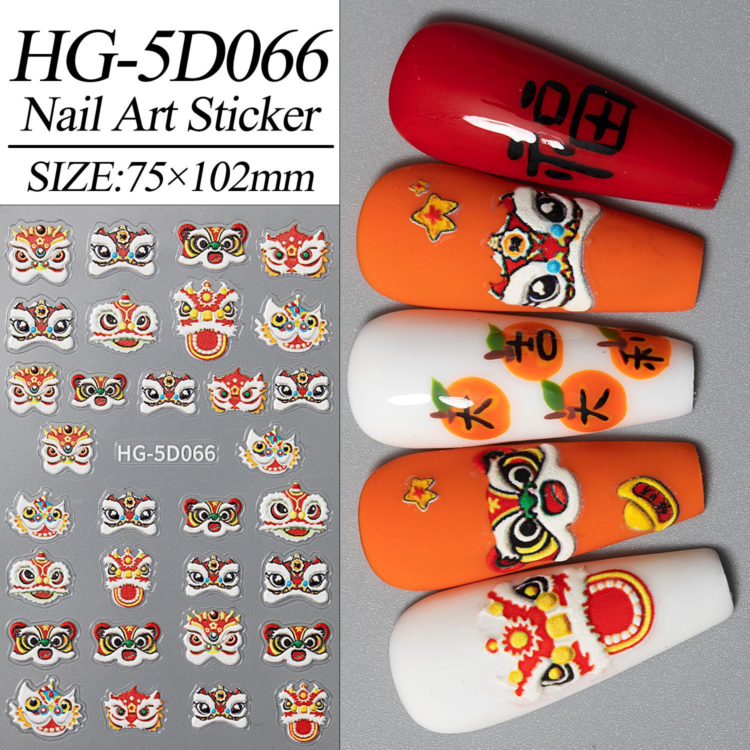 춘절 중국풍 사자춤 네일아트 스티커 5D 입체 중국풍 사자춤 DIY 네일 스티커 장식품 HG 모델