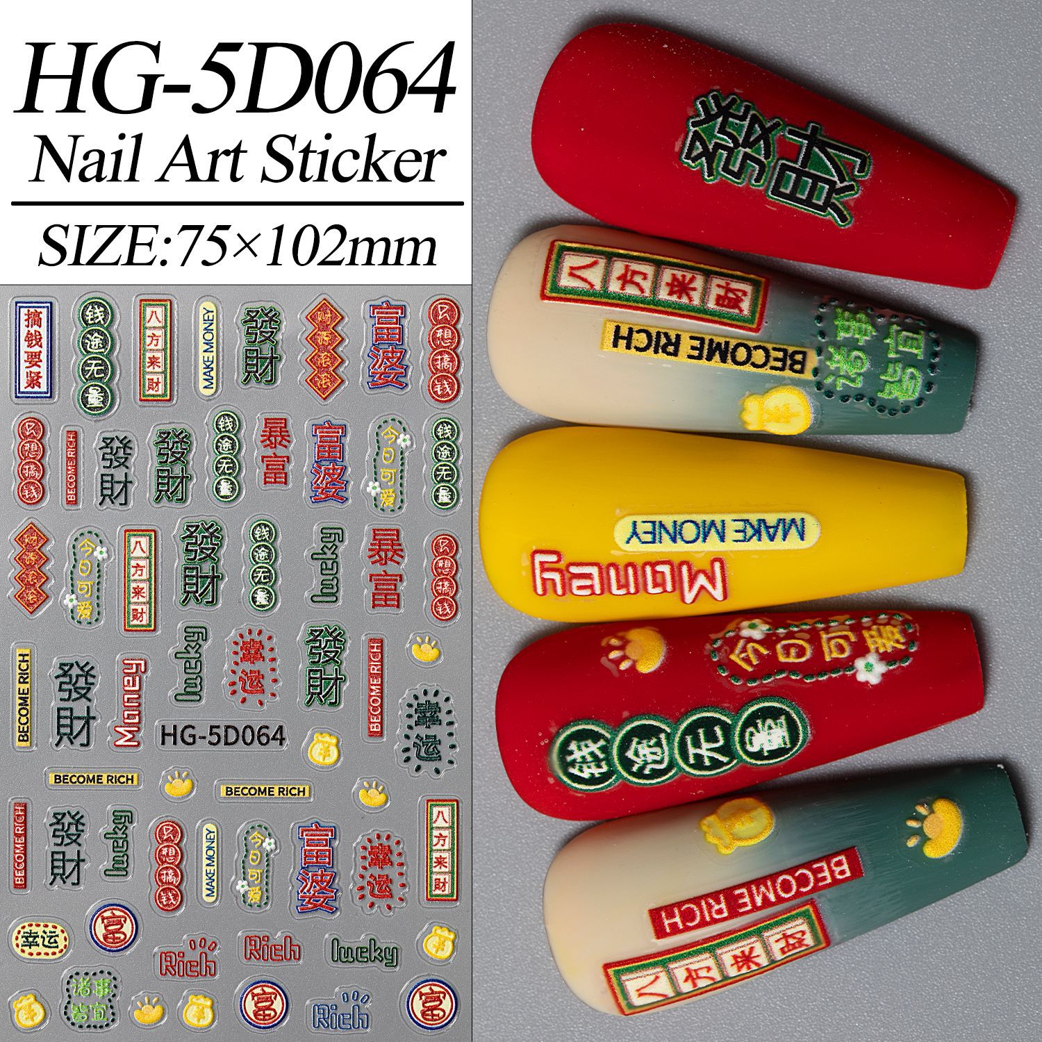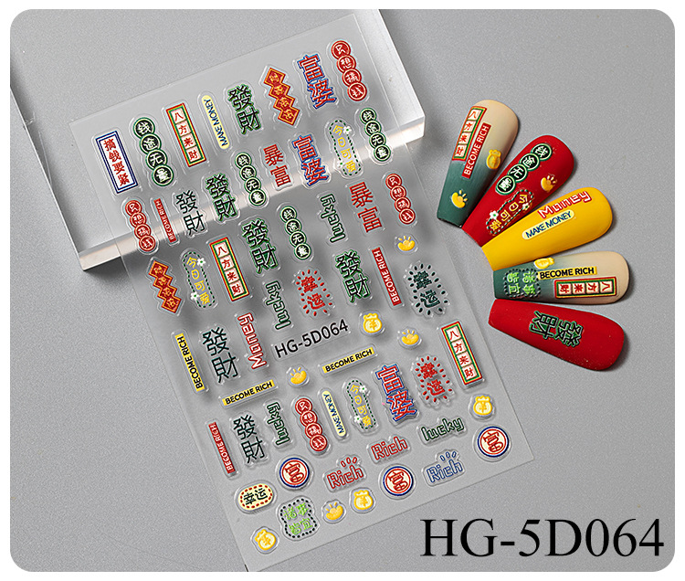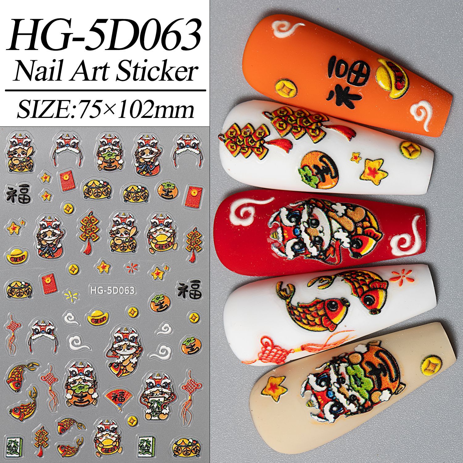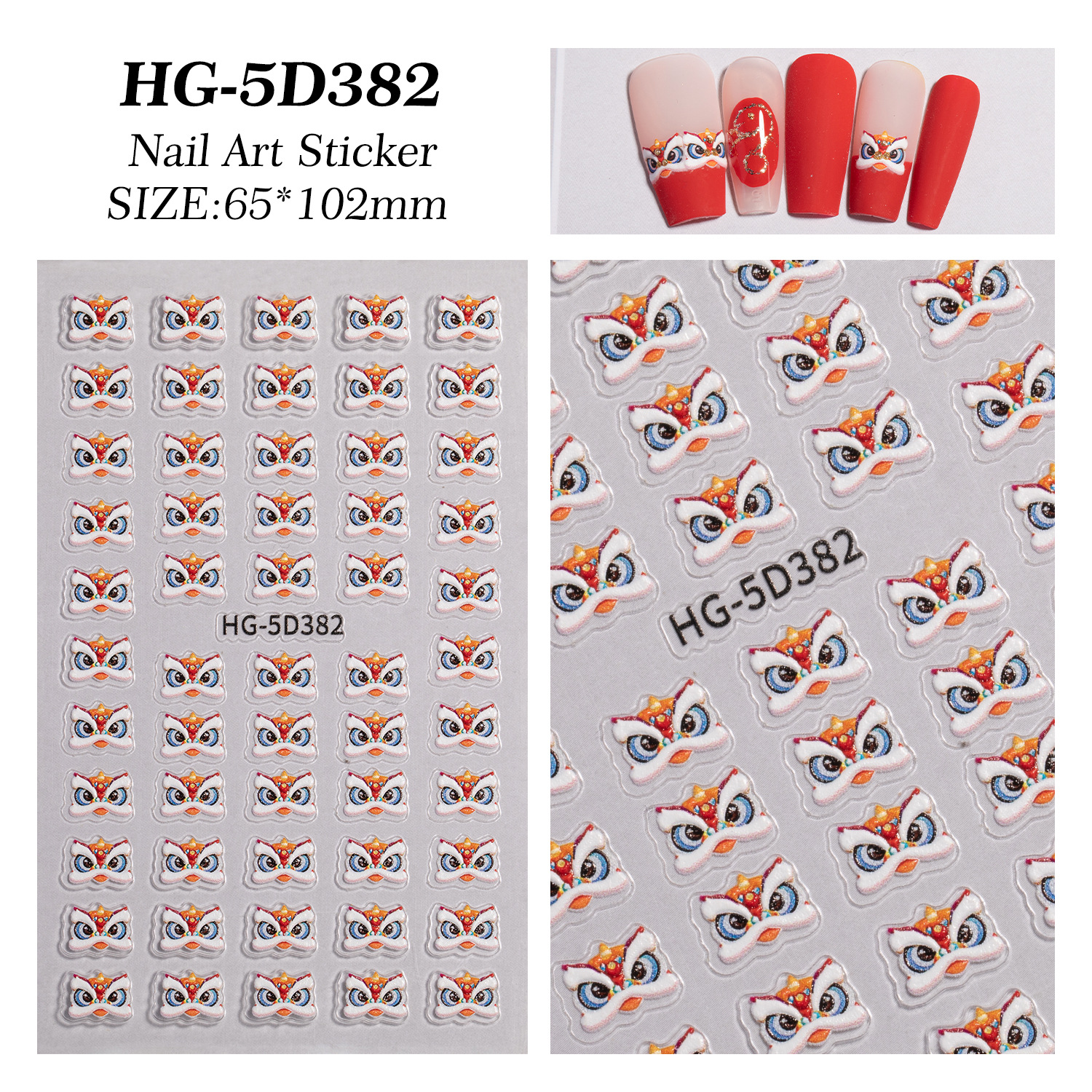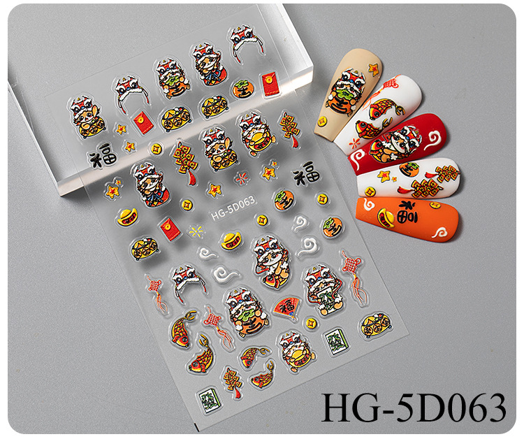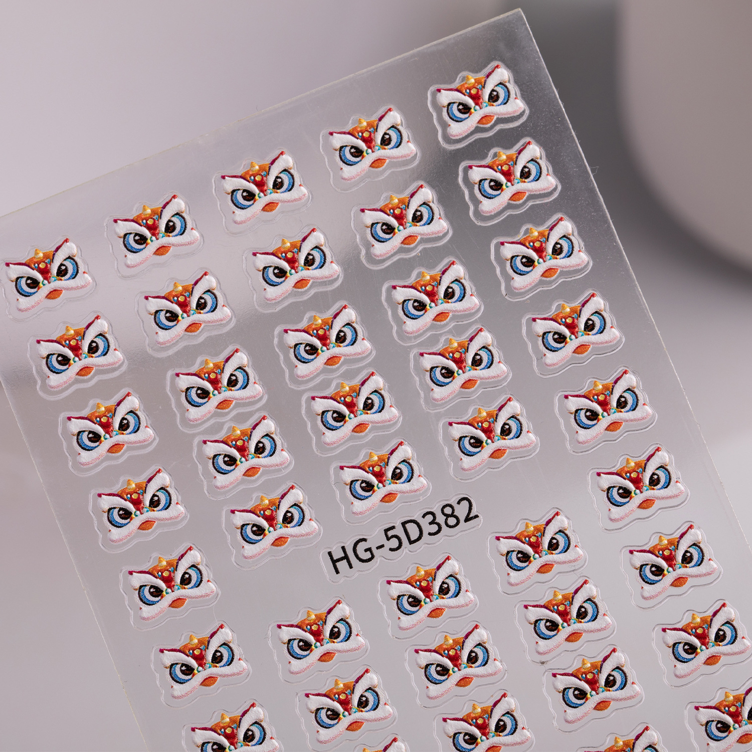 춘절 중국풍 사자춤 네일아트 스티커 5D 입체 중국풍 사자춤 DIY 네일 스티커 장식품 HG 모델