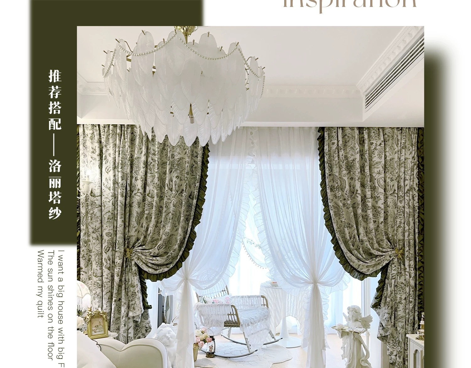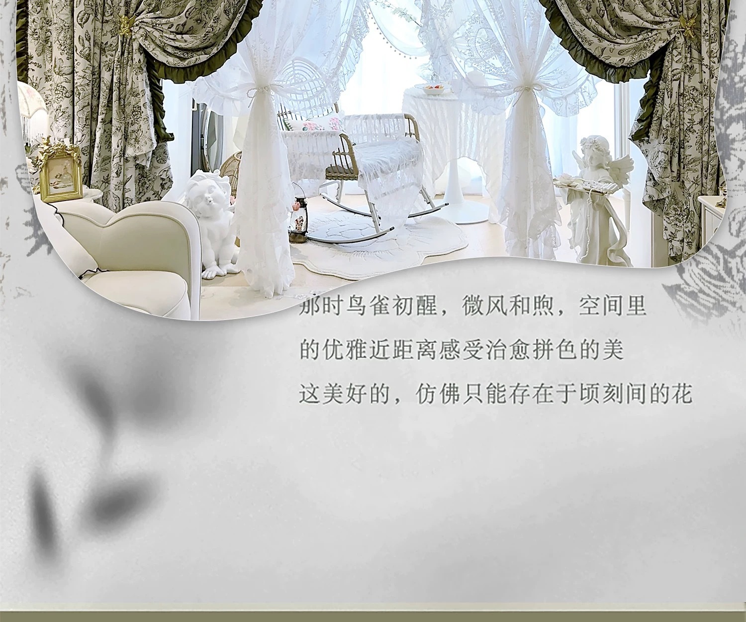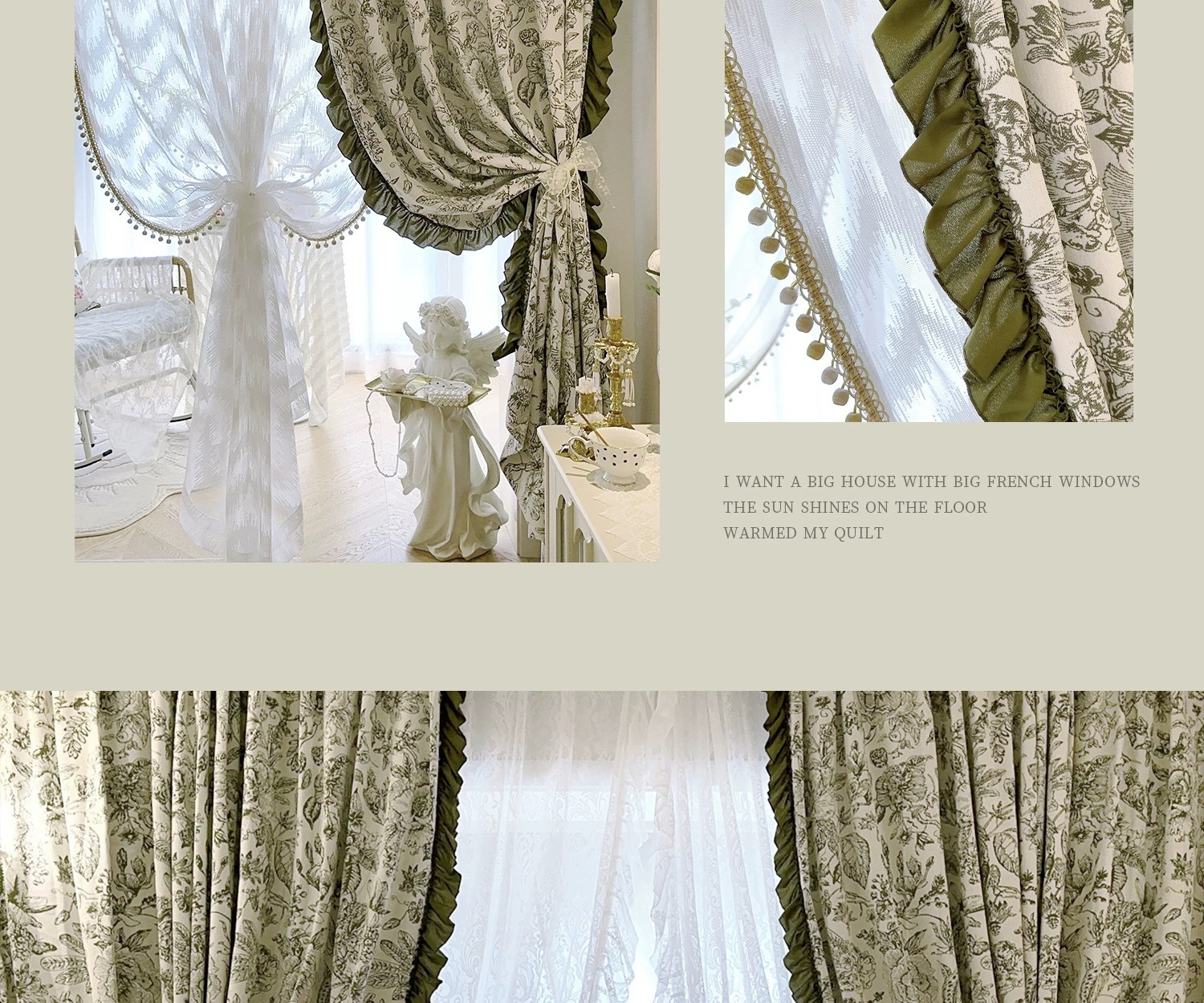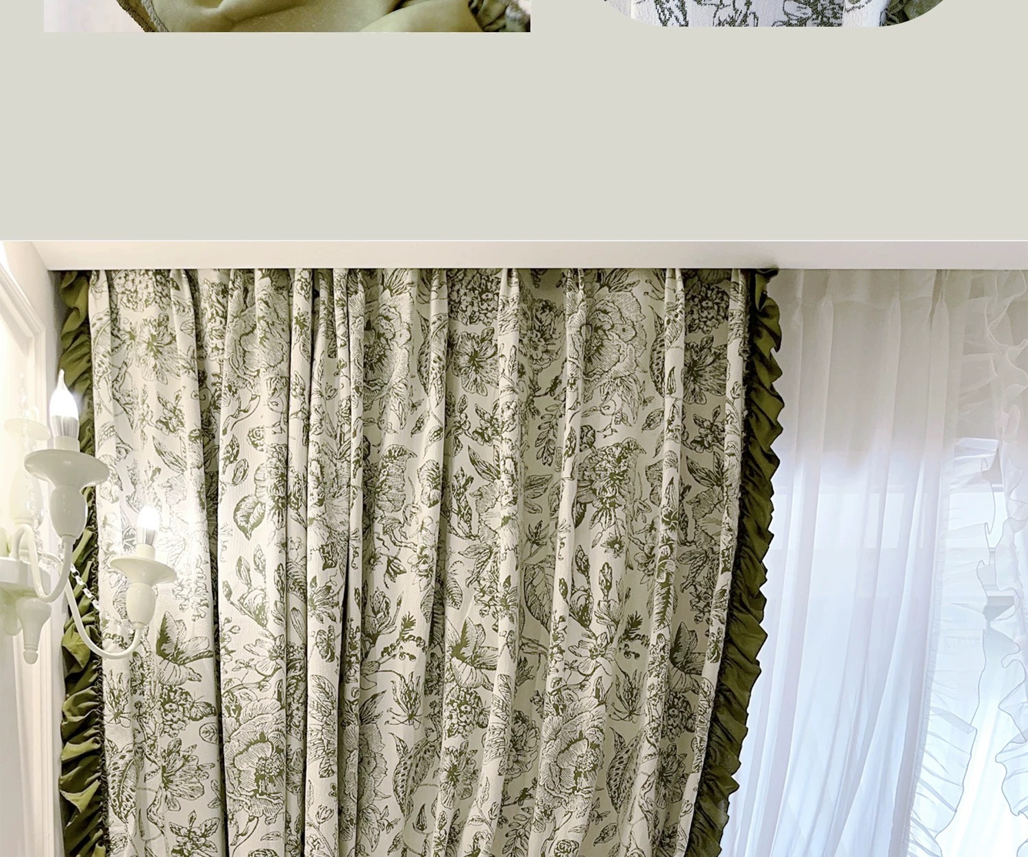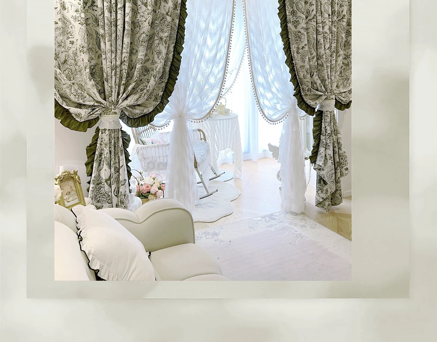 셔닐 올리브 그린 플라워 바다 자카드 커튼 프랑스 복고풍 스타일의 암막 커튼 거실 침실 고급 베이 창스토어 가기