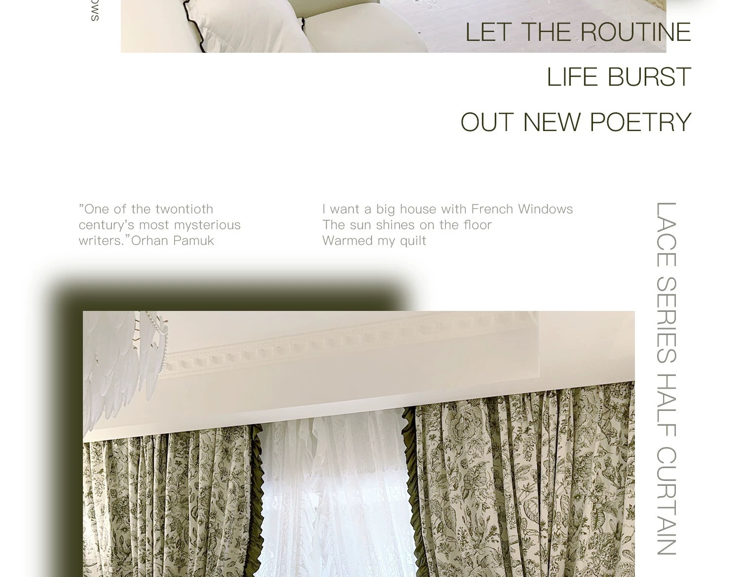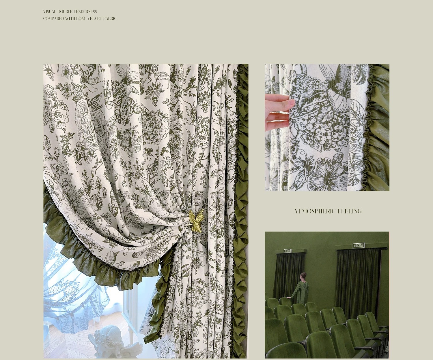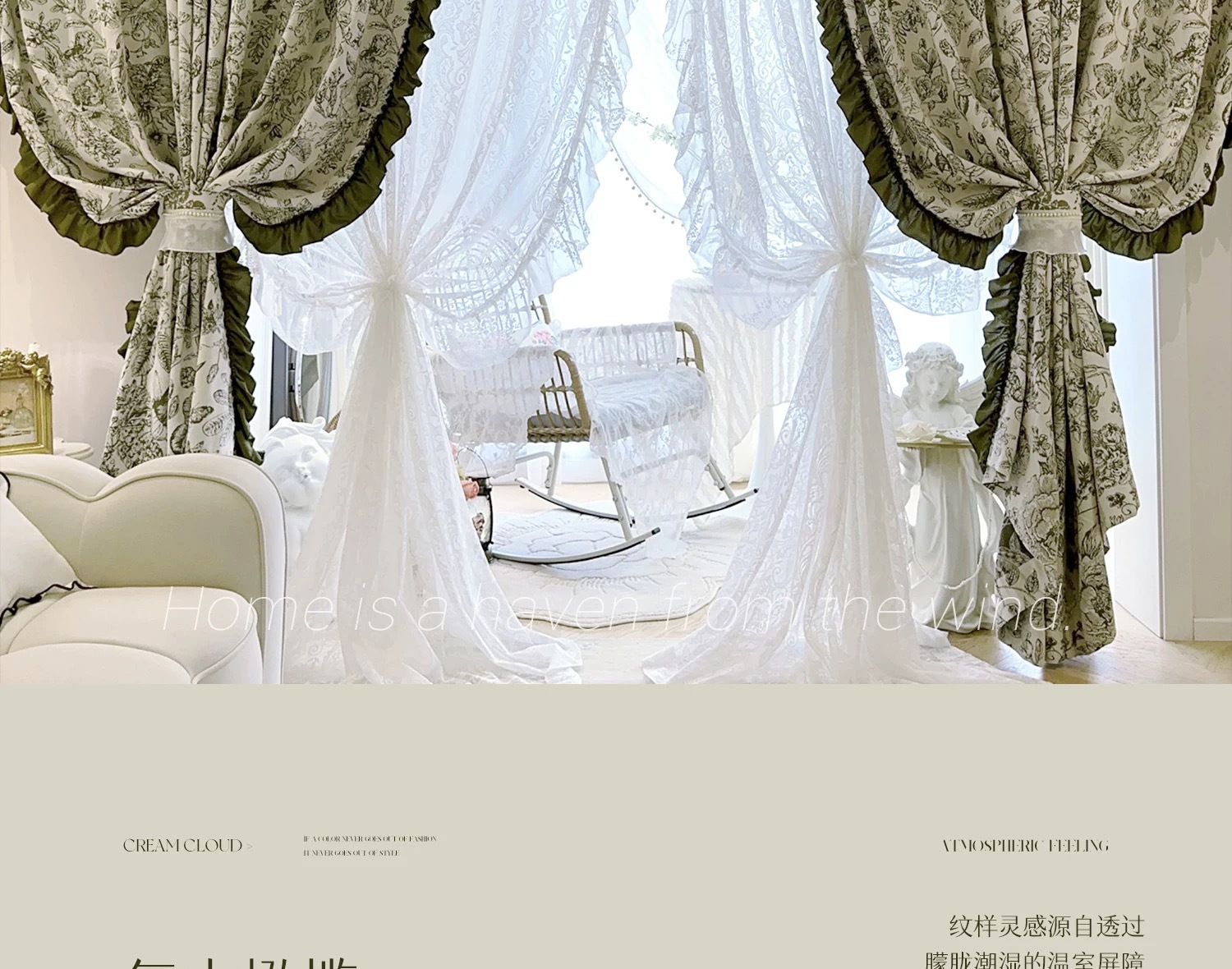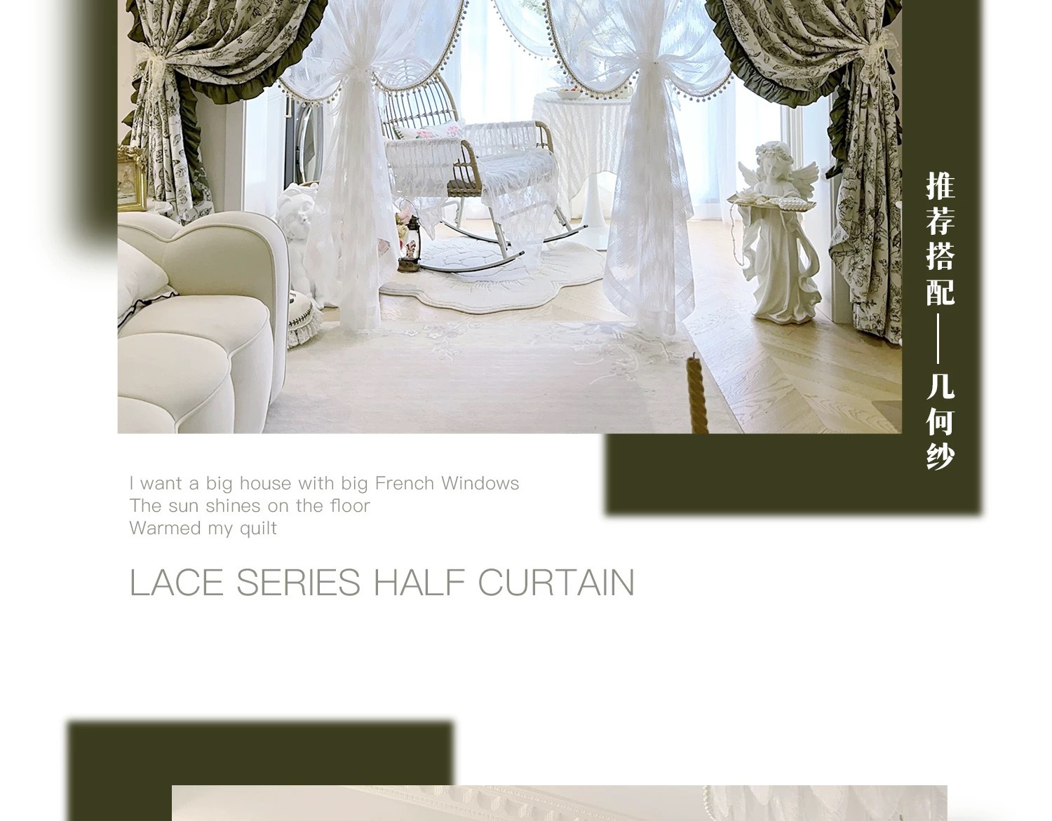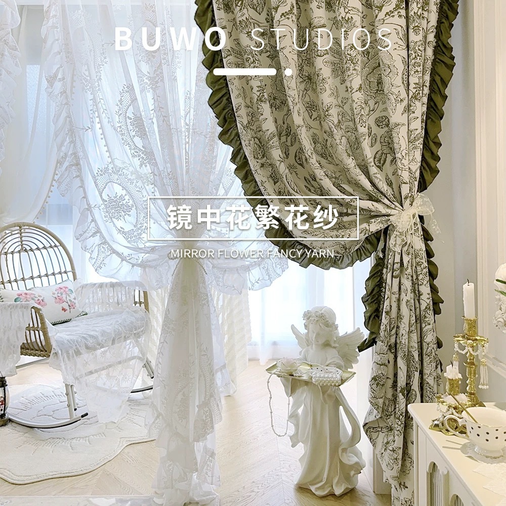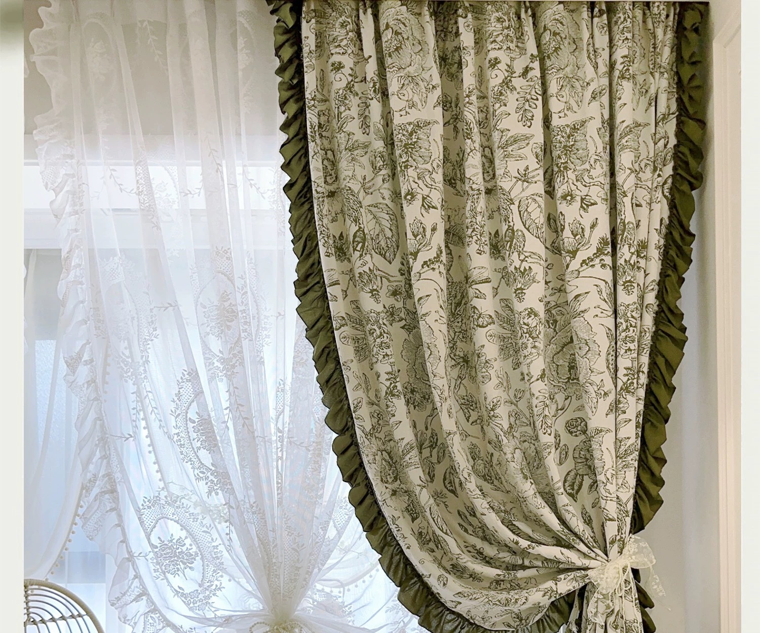 셔닐 올리브 그린 플라워 바다 자카드 커튼 프랑스 복고풍 스타일의 암막 커튼 거실 침실 고급 베이 창스토어 가기