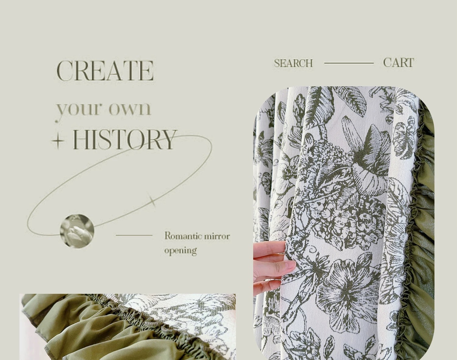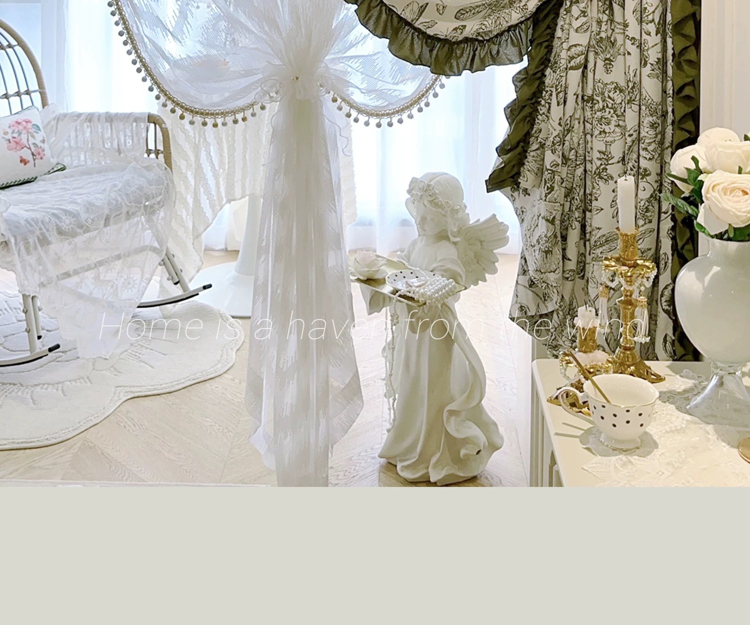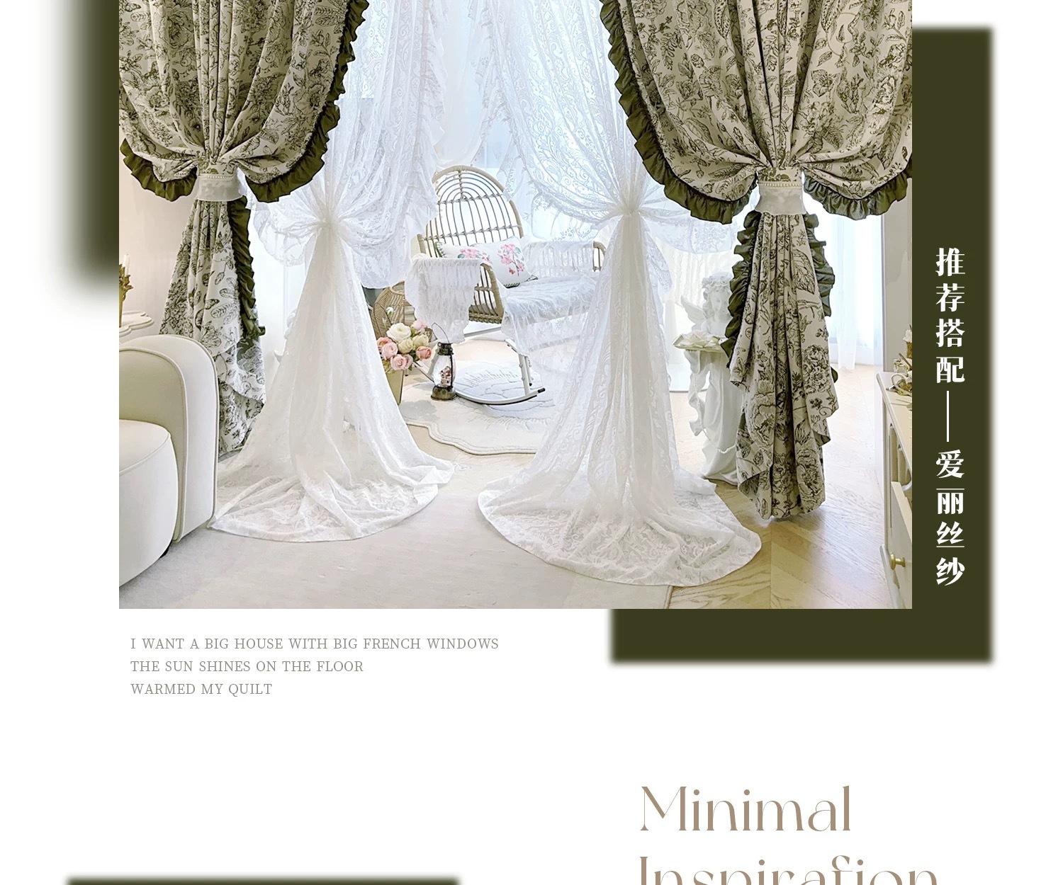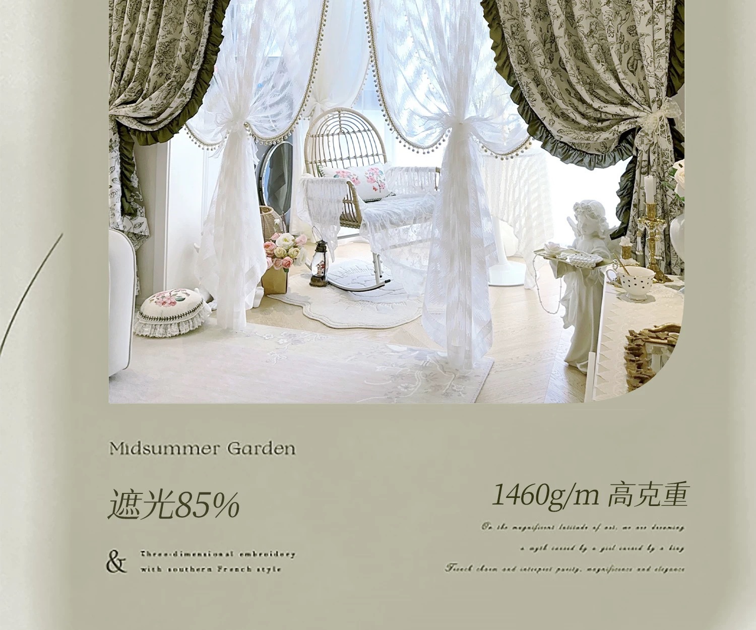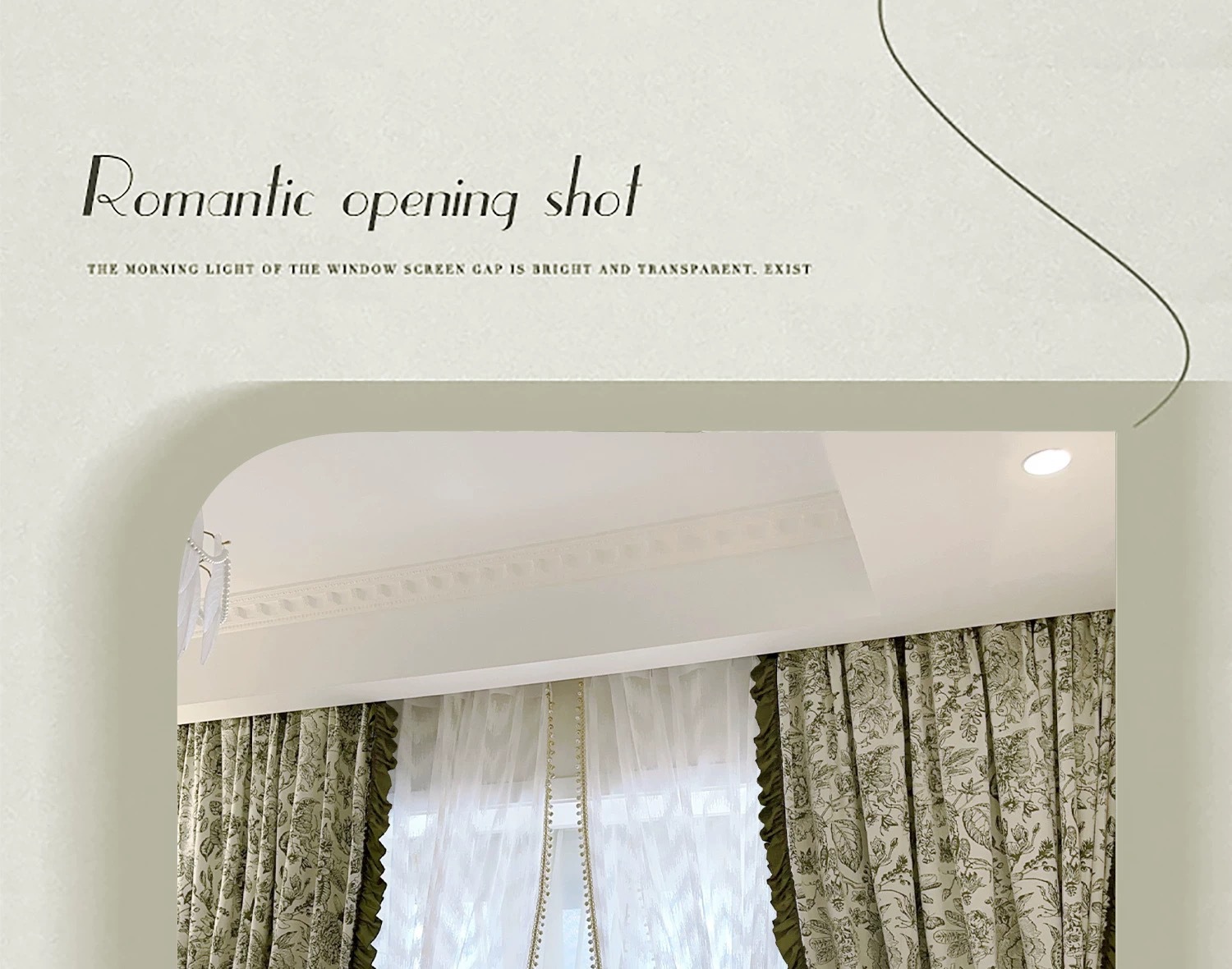 셔닐 올리브 그린 플라워 바다 자카드 커튼 프랑스 복고풍 스타일의 암막 커튼 거실 침실 고급 베이 창스토어 가기