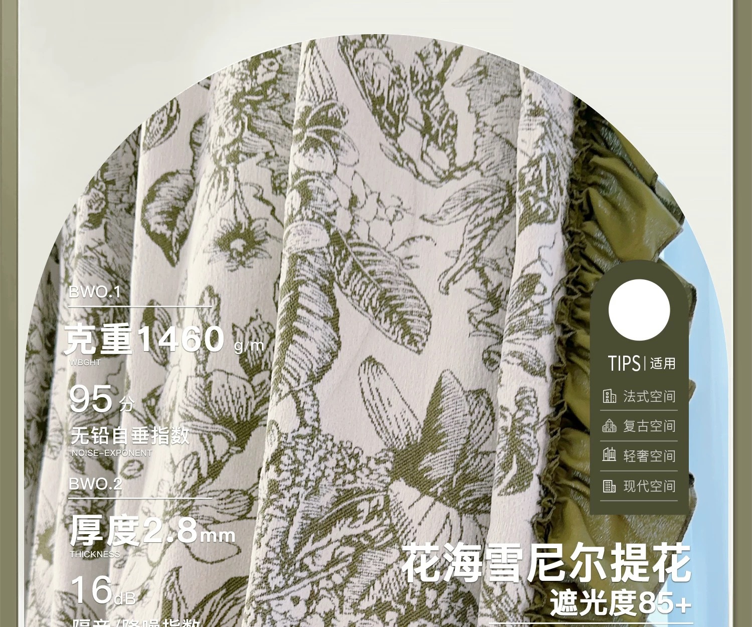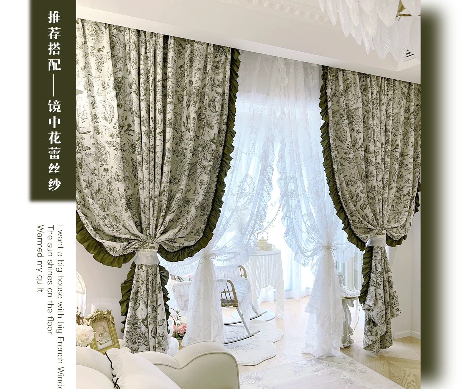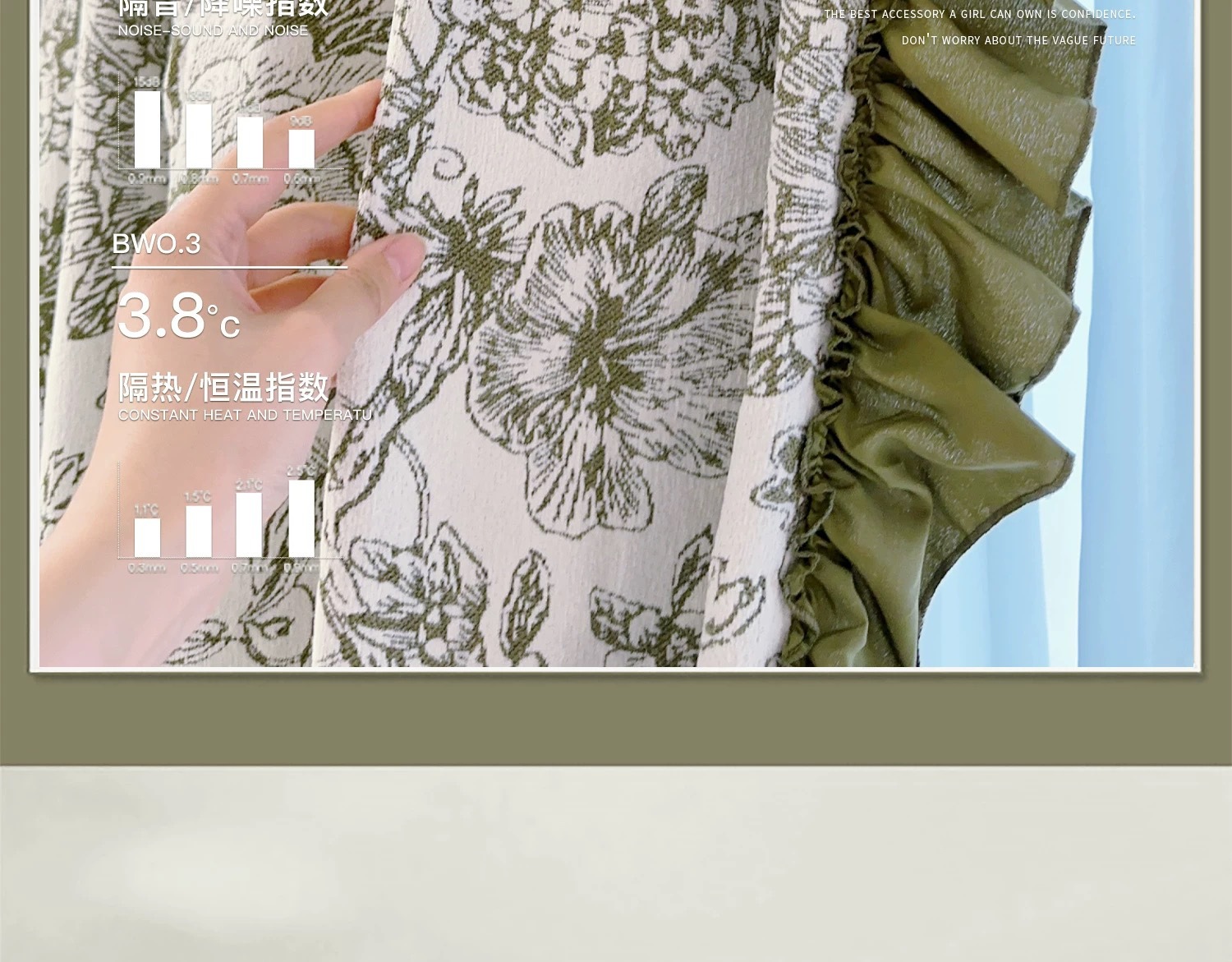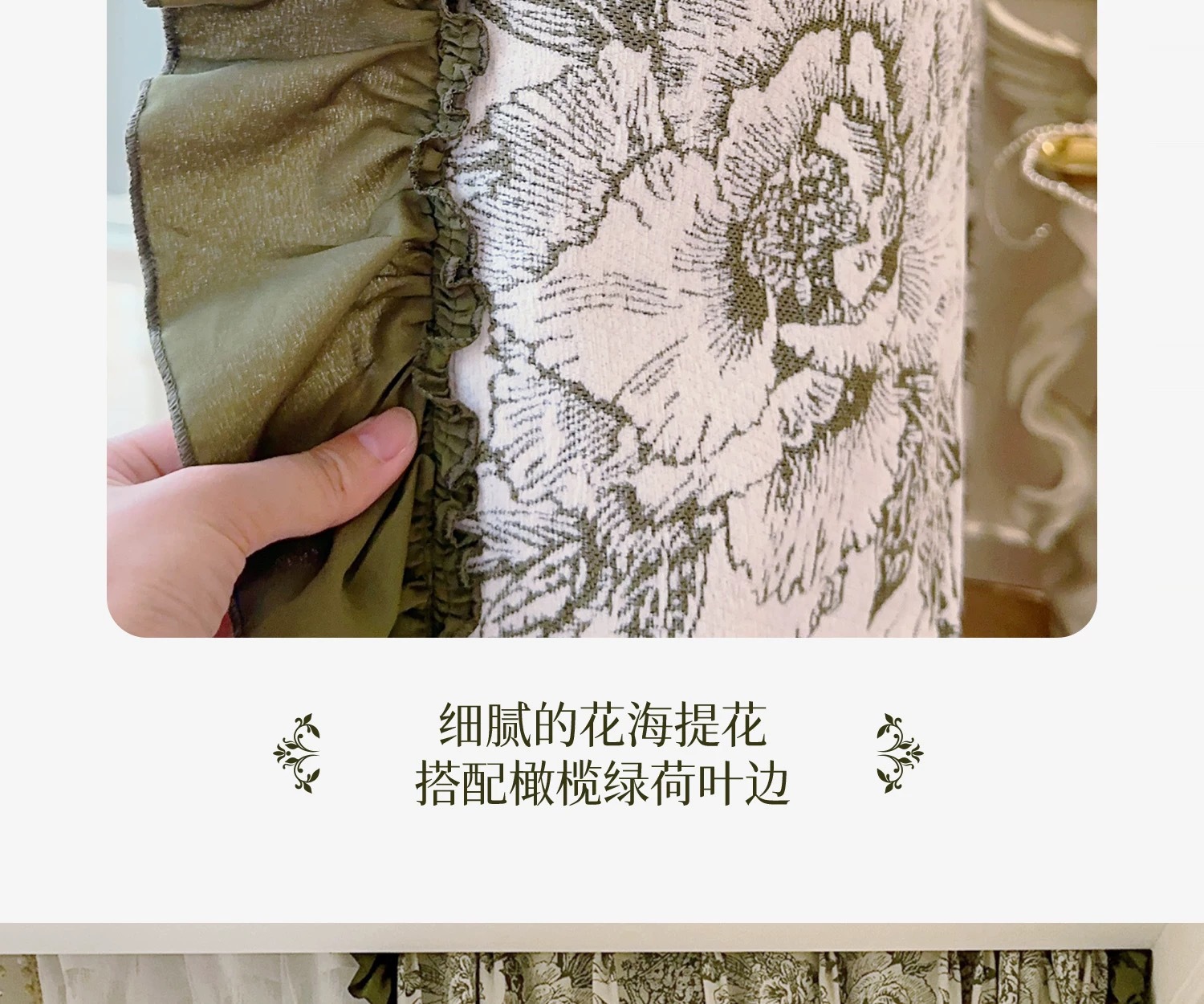 셔닐 올리브 그린 플라워 바다 자카드 커튼 프랑스 복고풍 스타일의 암막 커튼 거실 침실 고급 베이 창