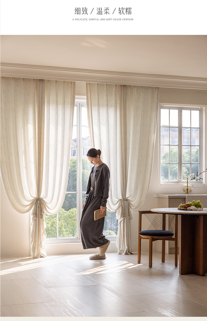 (Sembena) 리넨 코튼 리넨 스크린 팜 리프 프랑스 일본 반음영 커튼 투과성 창 화면