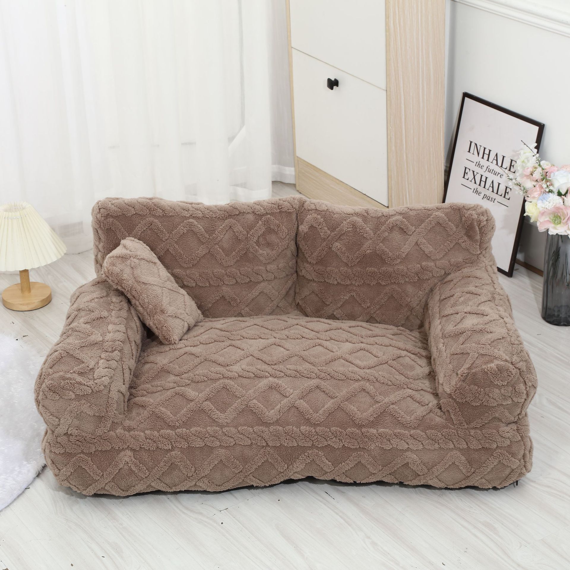 겨울에 따뜻하게 사용할 수 있는 크로스보더 두꺼운 애완동물 플러시 소파 둥지, 탈부착 및 세척 가능한 대형 소파 둥지, 범용 애완동물 용품스토어 가기
