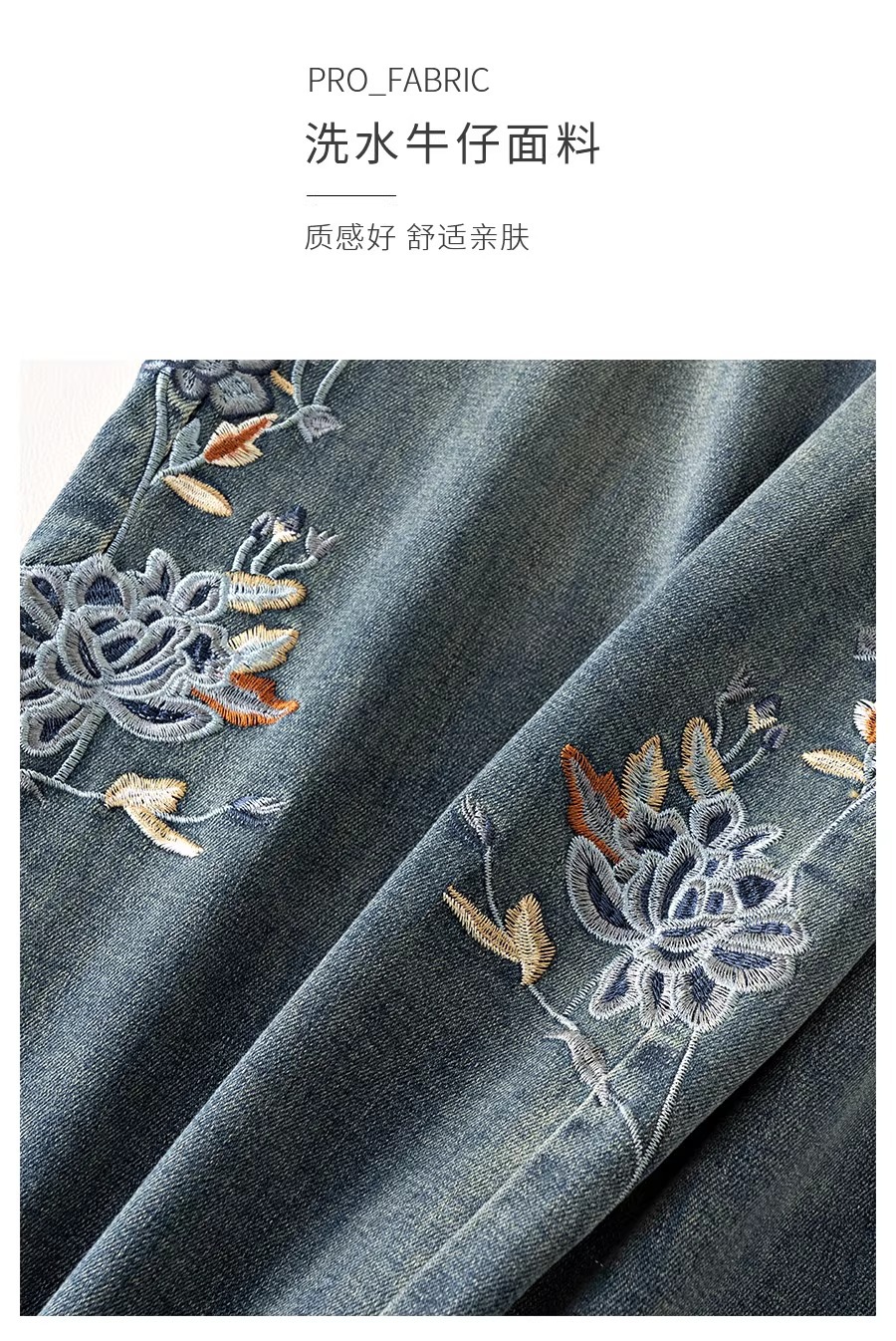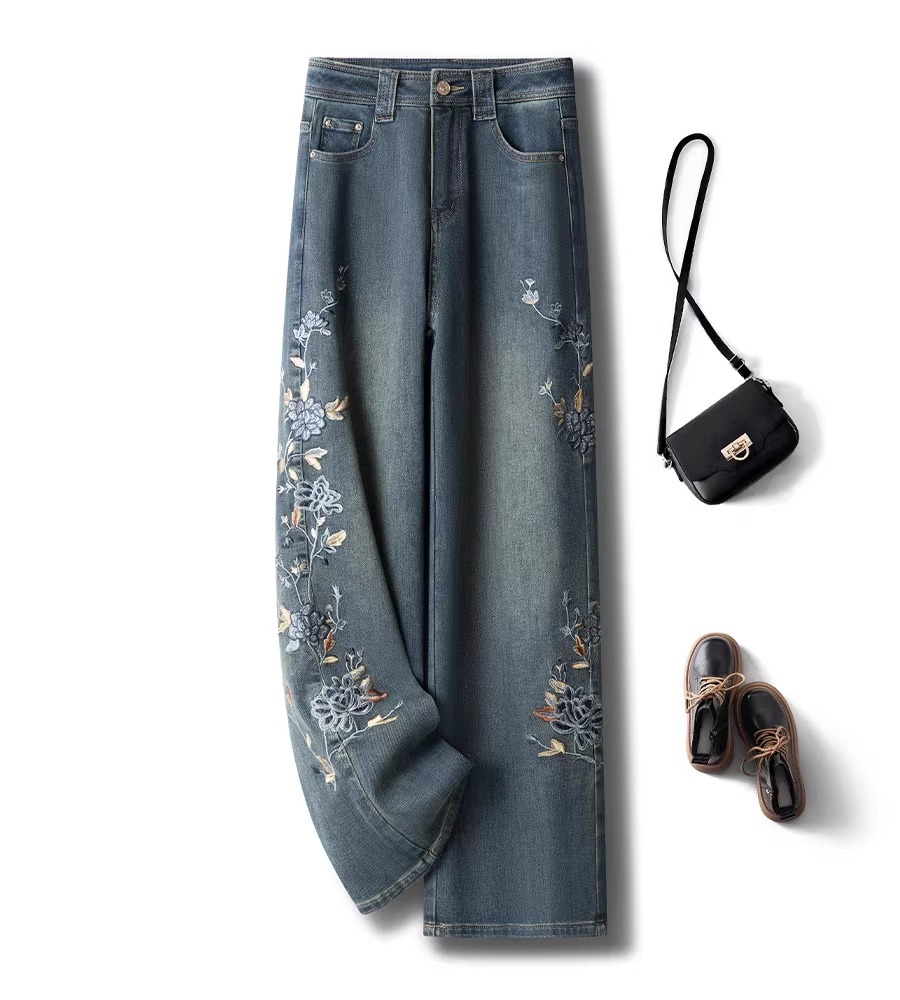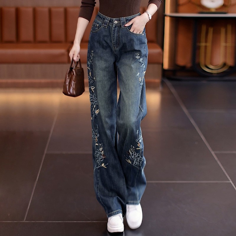 중국풍 자수 데님 슬림핏 와이드 팬츠 여성용 봄 가을 2026년 신상 디자인 감각적인 패셔너블 하이웨이스트 스트레이트 팬츠