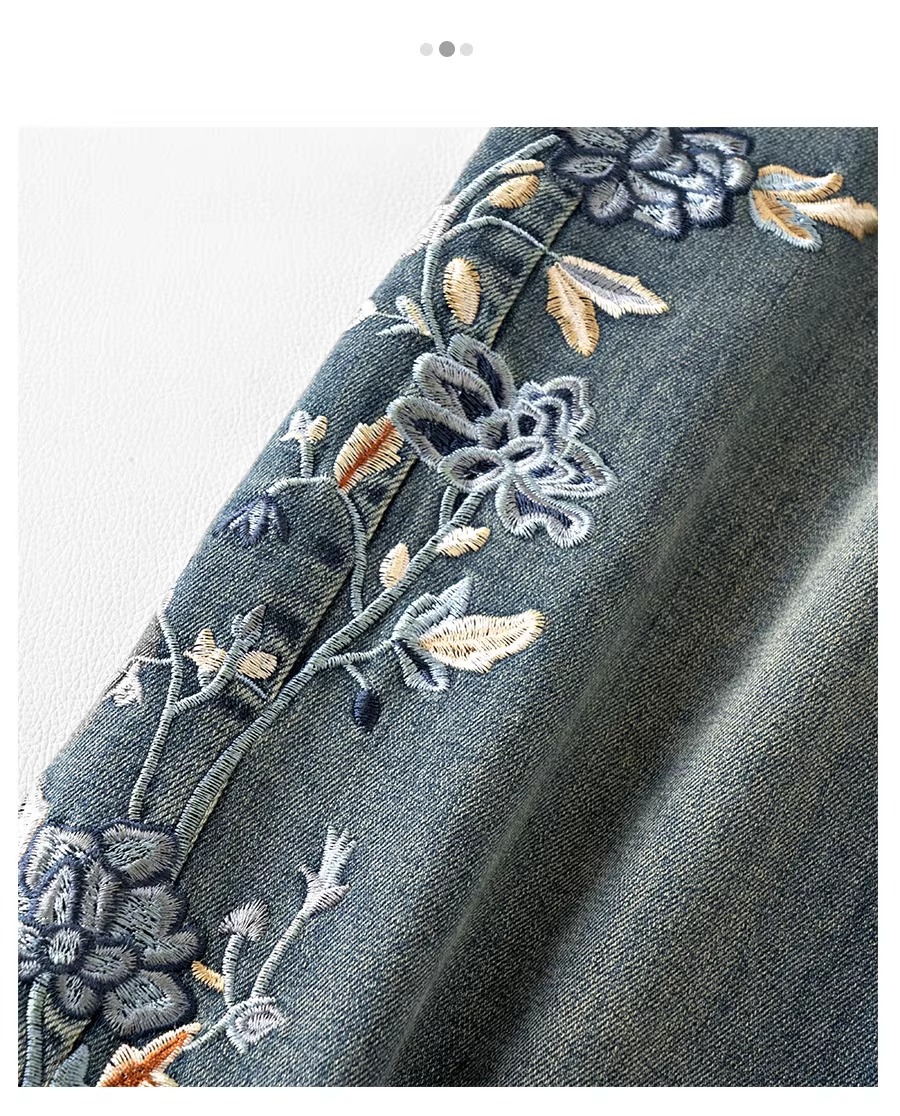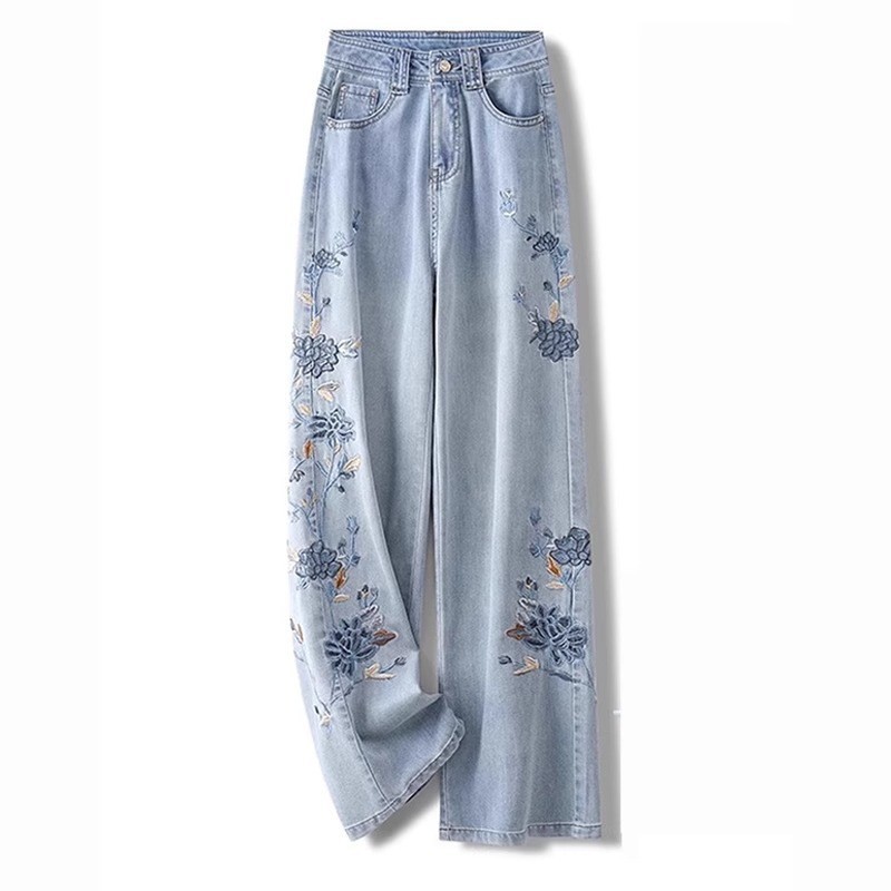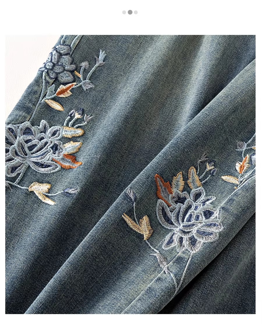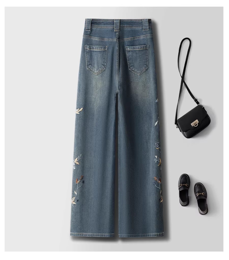 중국풍 자수 데님 슬림핏 와이드 팬츠 여성용 봄 가을 2026년 신상 디자인 감각적인 패셔너블 하이웨이스트 스트레이트 팬츠